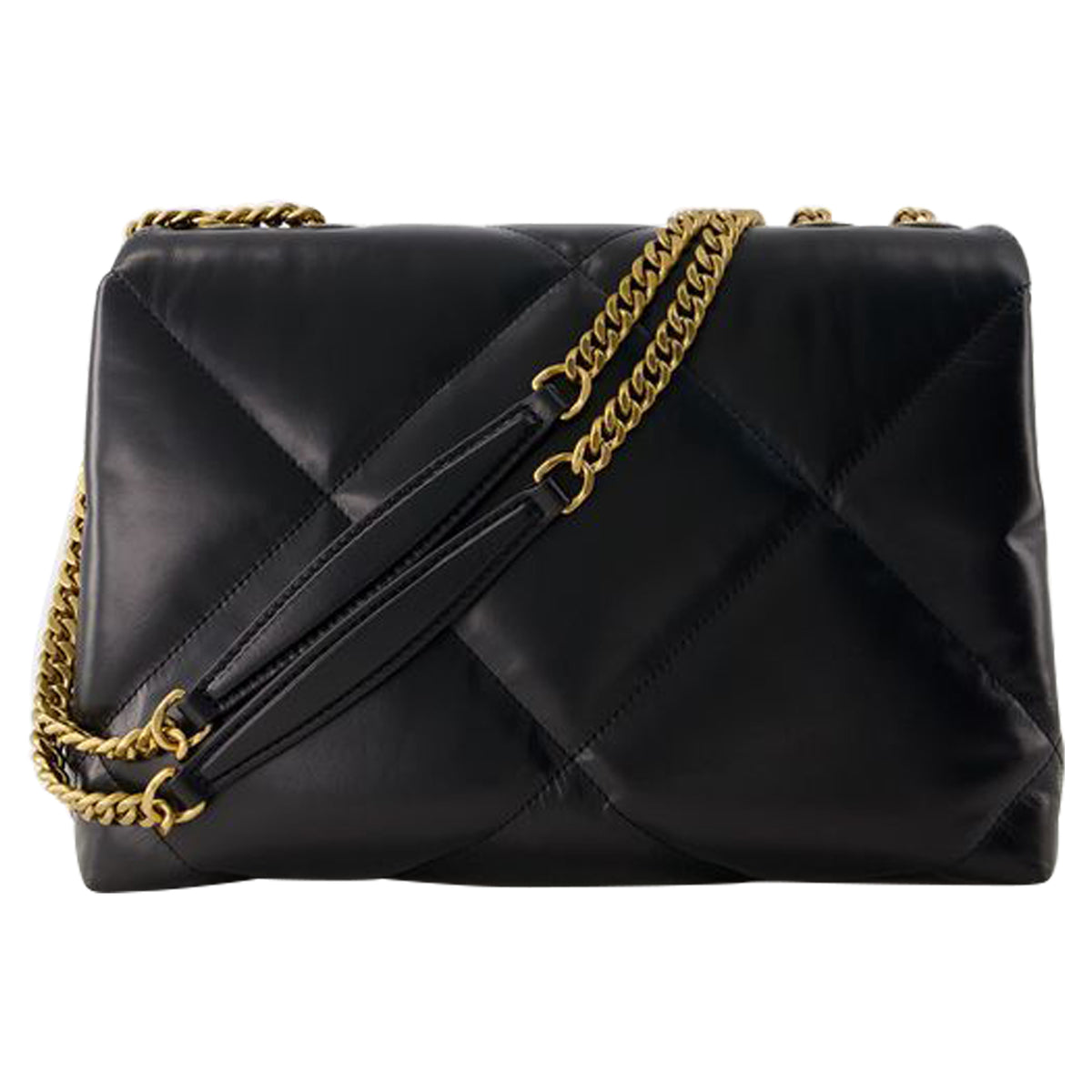 Bandoulière : 126 cm. Deux façons de la porter : bandoulière chaîne. Matière : cuir de vachette. Doublure : coton. Couleur : Noir.