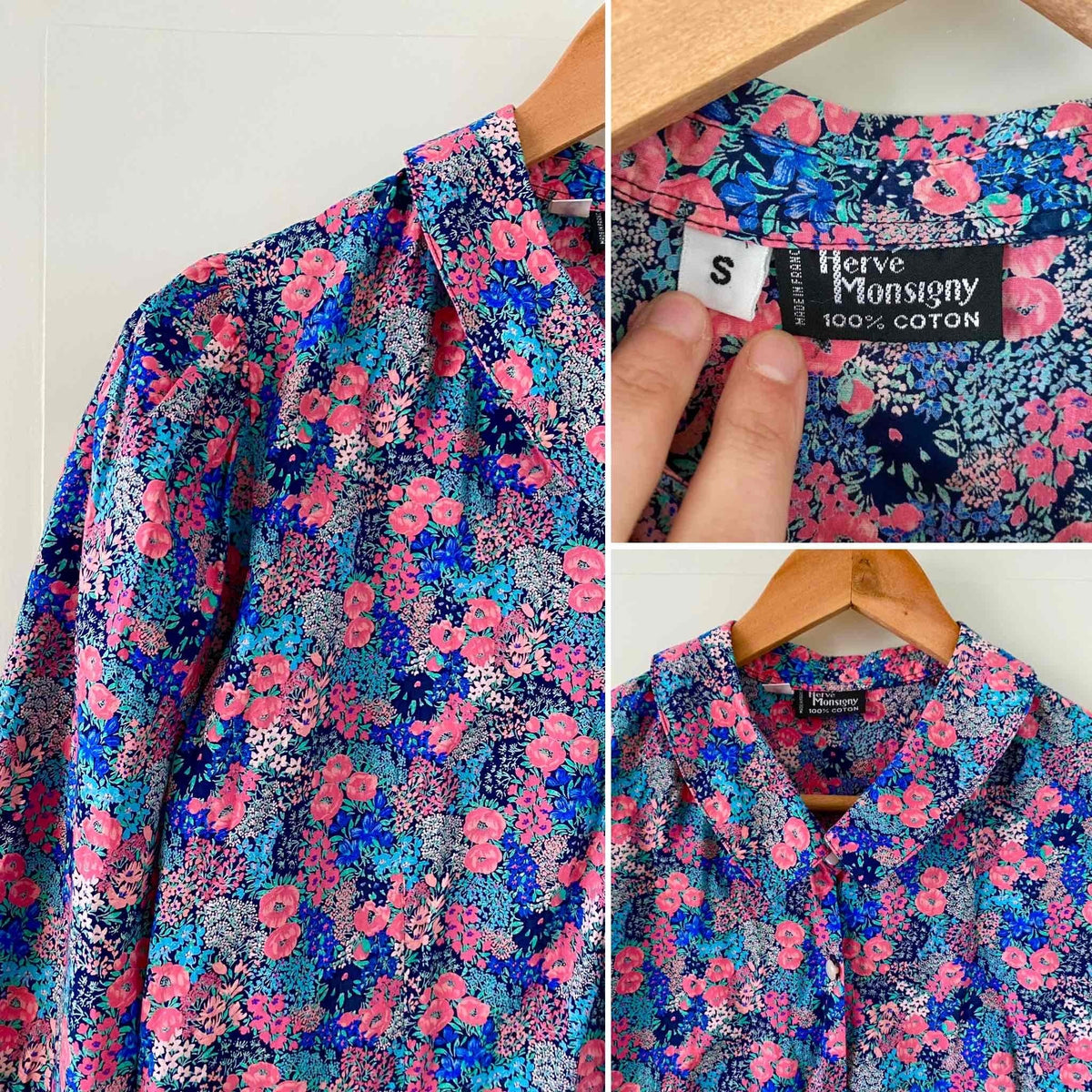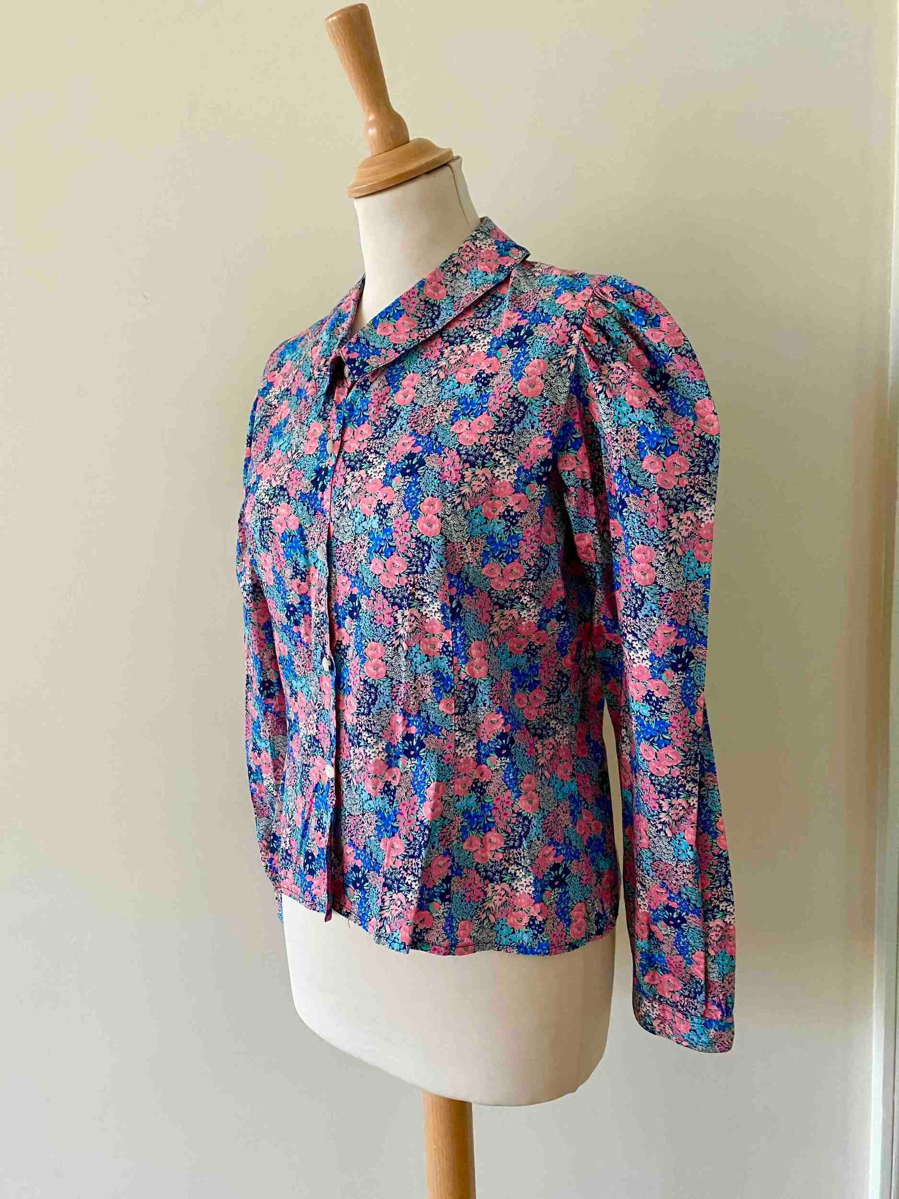 Prix unitaire parBlouse à fleurs en coton liberty, col claudine, manches ballon froncées, fabriqué en France