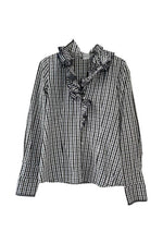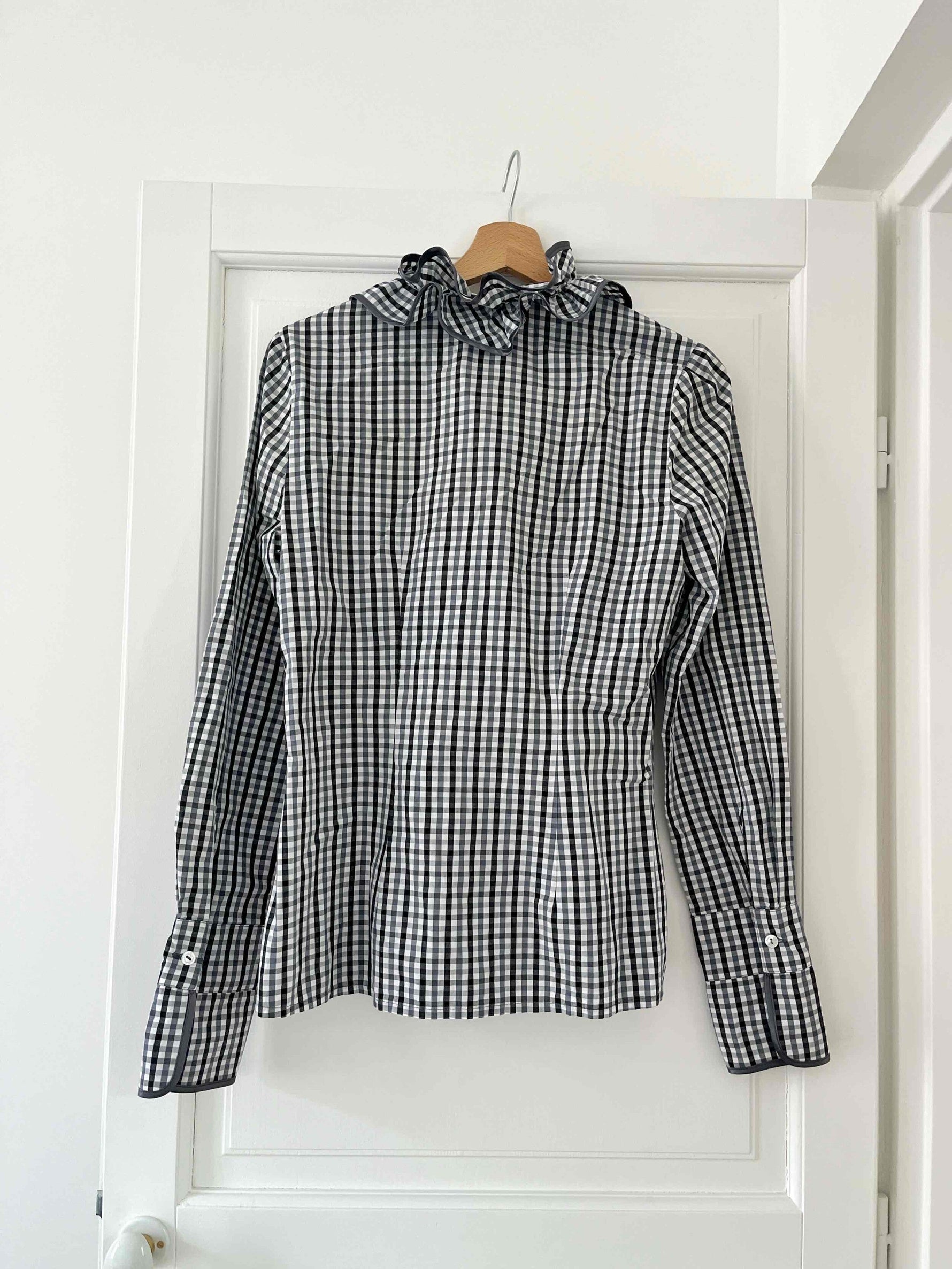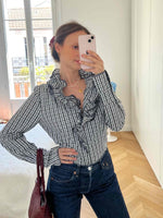 Prix unitaire parChemise autrichienne vichy à carreaux, décolleté à volants, boutonnée sur le devant, portée ici de façon oversize par une T36 pour 1m64