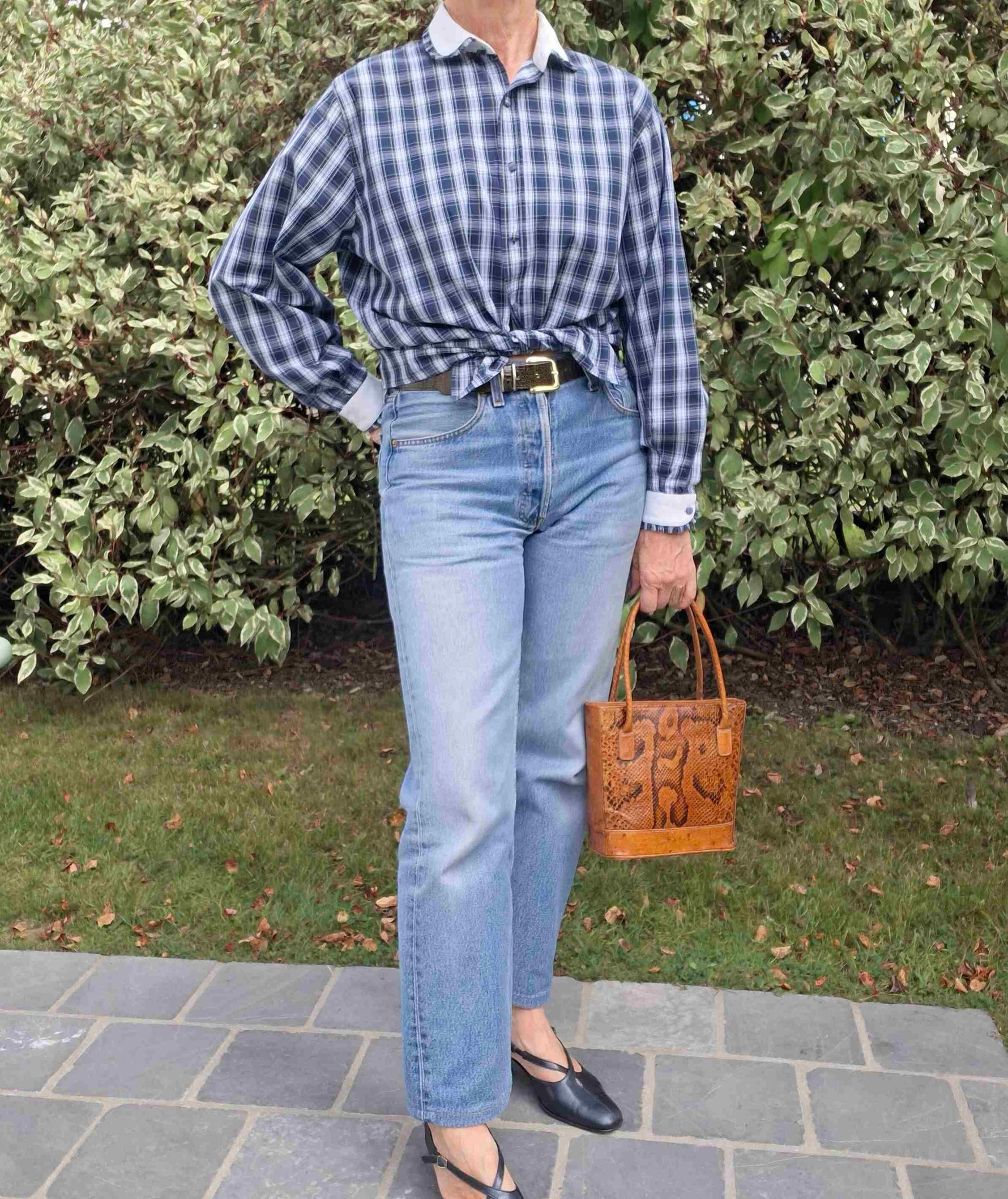 Prix unitaire parChemise tartan en coton bleu,blanc, vert vintage 90's