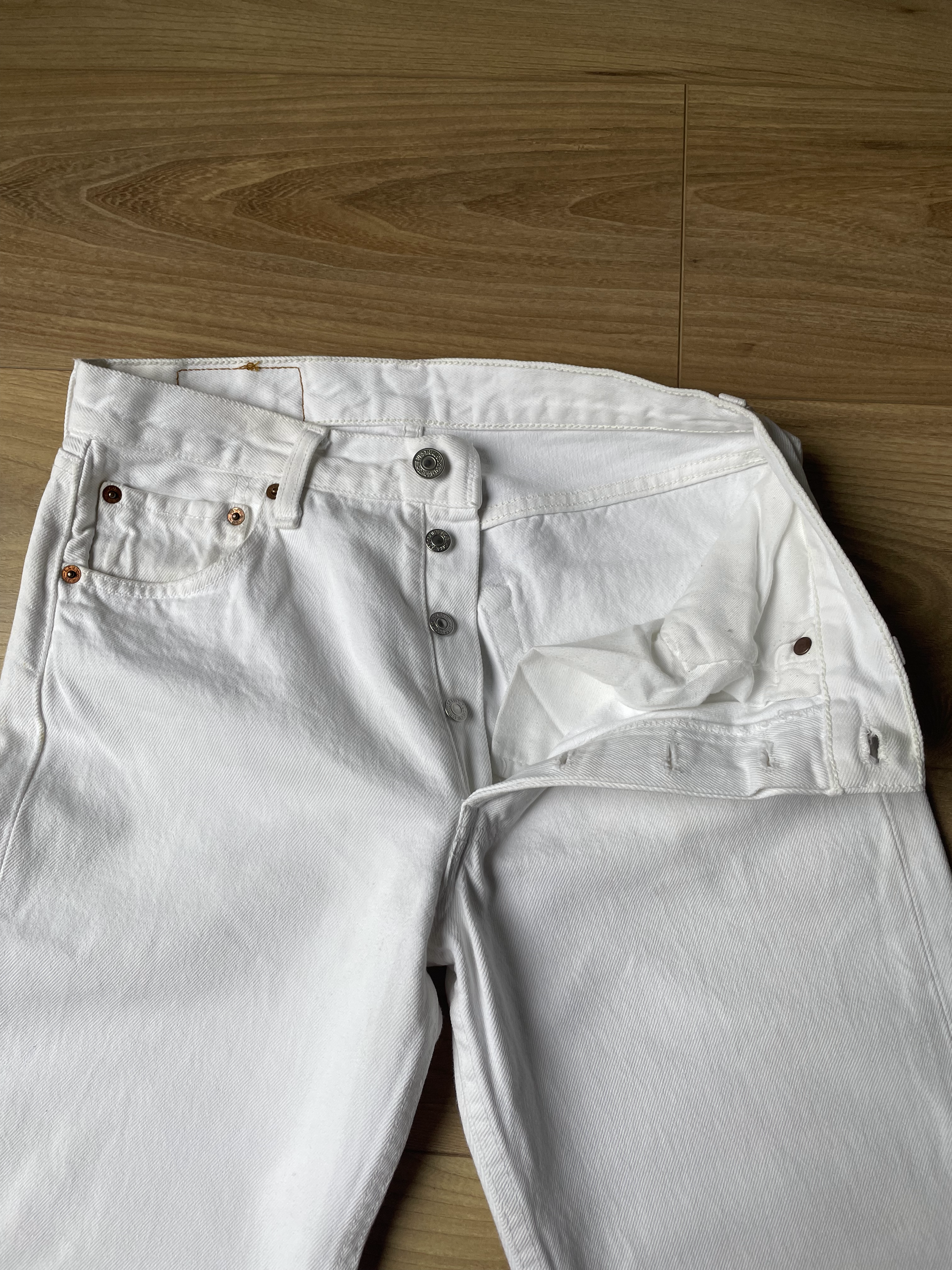 Prix unitaire parJean Levi's 501 vintage 29W 34L d'une qualité premium. Les ourlets sont d’origine. Largeur des hanches : 45cm ; Longueur : 104cm ; Longueur entrejambe : 80cm ; Taille : 36cm Etat : très bon état Couleur : blanc Matière : 100% coton Le colis est emballé et envoyé avec soin (72)