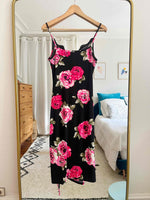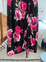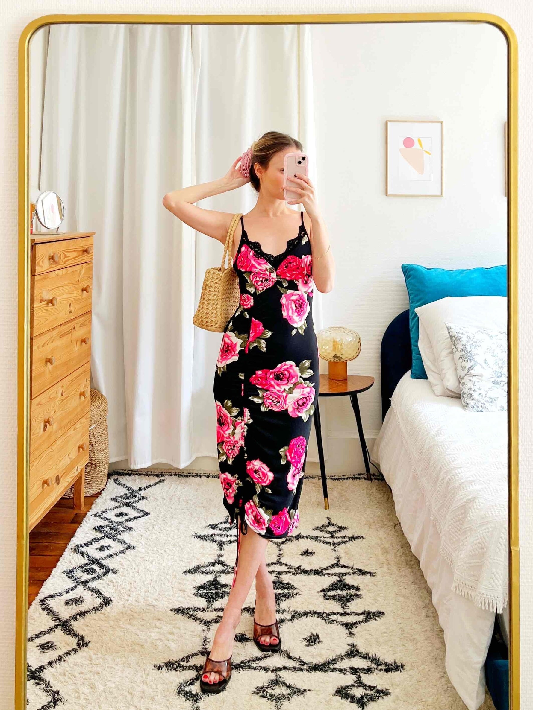 Prix unitaire parRobe à fleurs, décolleté en dentelle, longueur ajustable, tissu stretch, portée ici sur une T36 pour 1,64 m