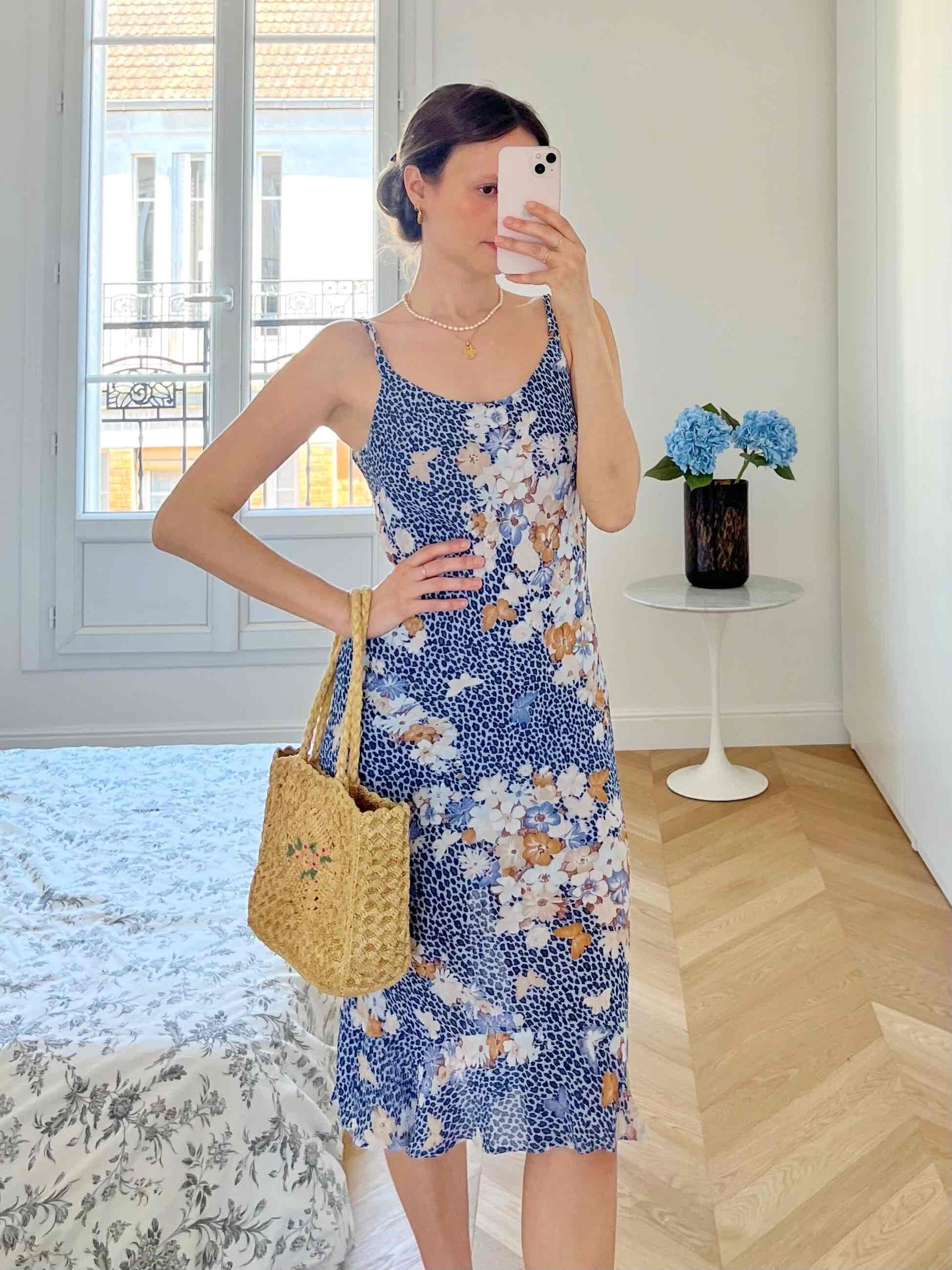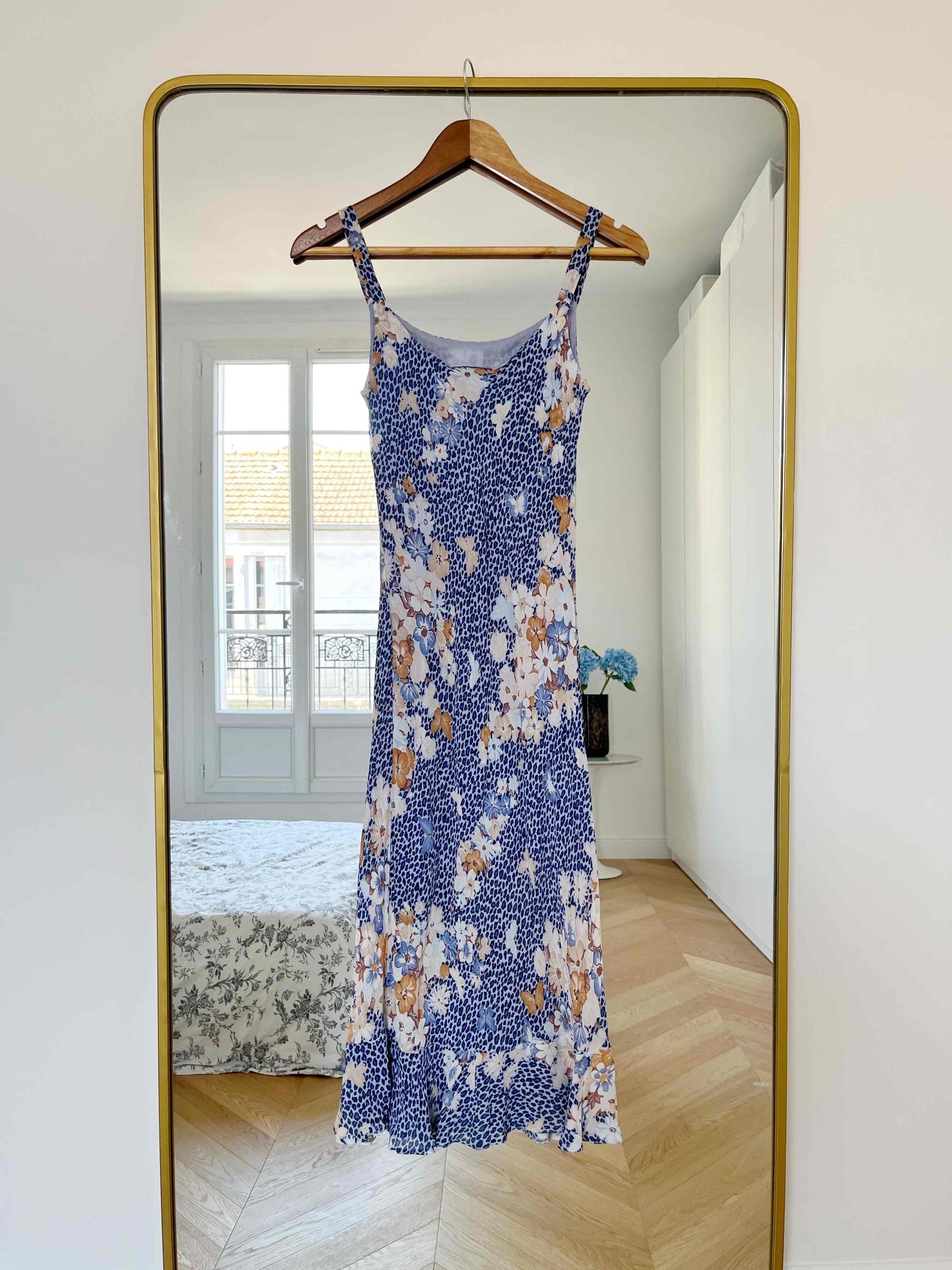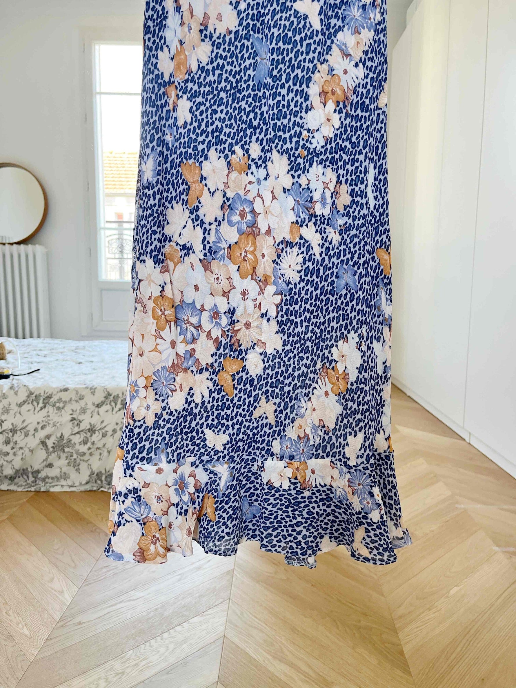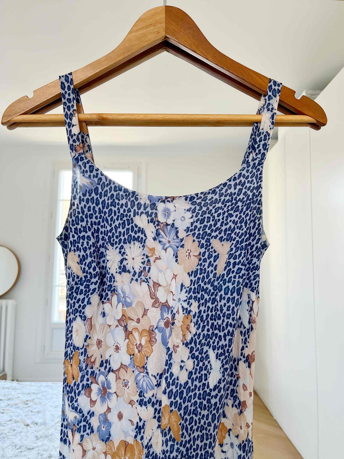 Prix unitaire parRobe léopard à fleurs, longueur midi, tissu doublé, bretelles non ajustables, portée ici sur une T36 pour 1m64