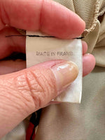 Bretelles spaghettis, poitrine froncée à nouer, taillée en biais, fabriquée en France, taille 36 portée ici sur un mannquin T36, aisselles 43cm.