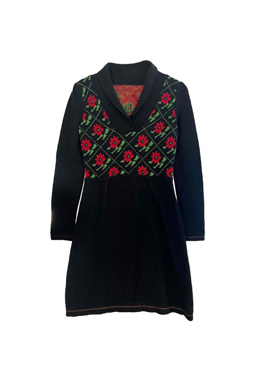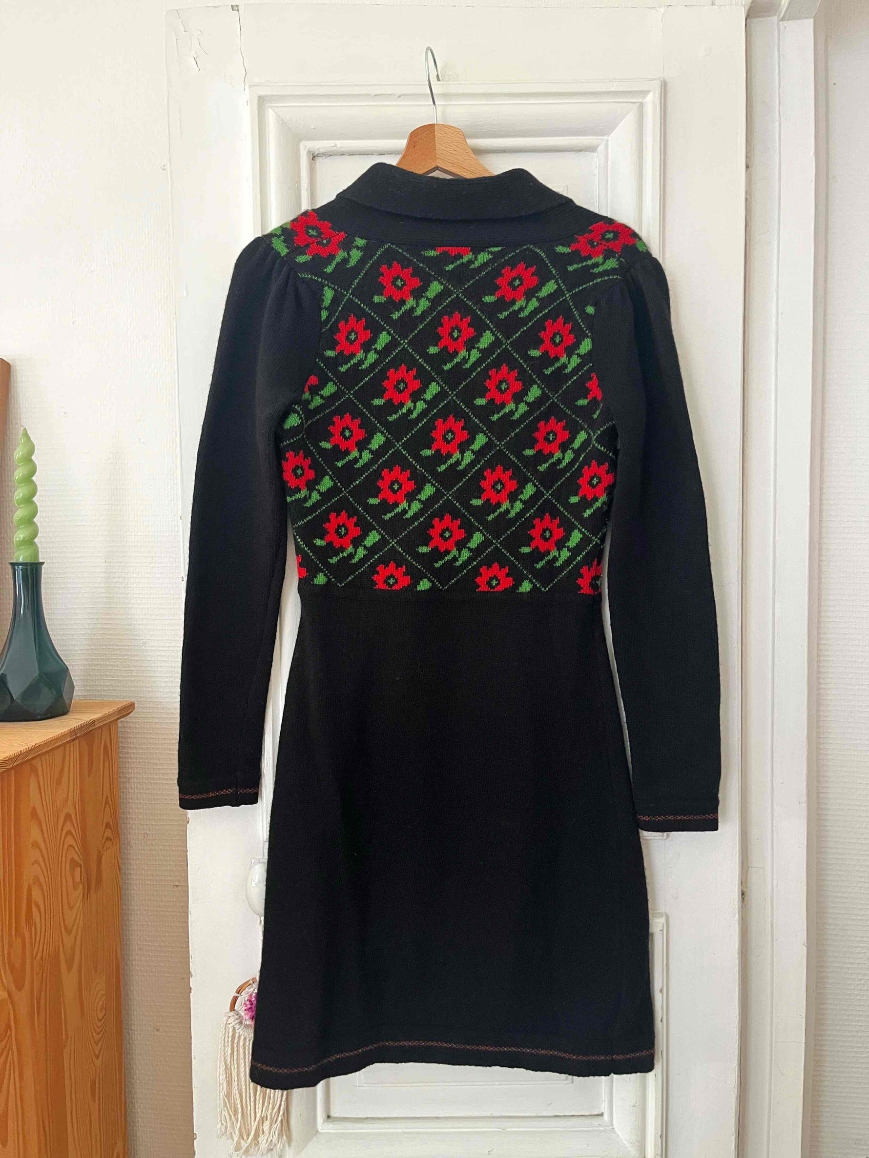 Prix unitaire parRobe en maille, imprimée de fleurs rouges, col en V, manches longues, cintrée à la taille, portée ici sur une T36 pour 1m64