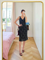 Prix unitaire parRobe à pois, longueur midi, tissu doublé non stretch, décolleté en V, portée ici sur une T36 pour 1m64