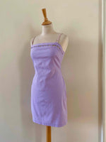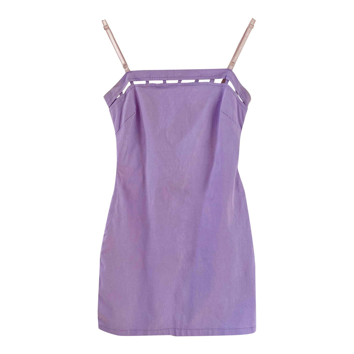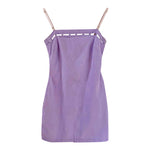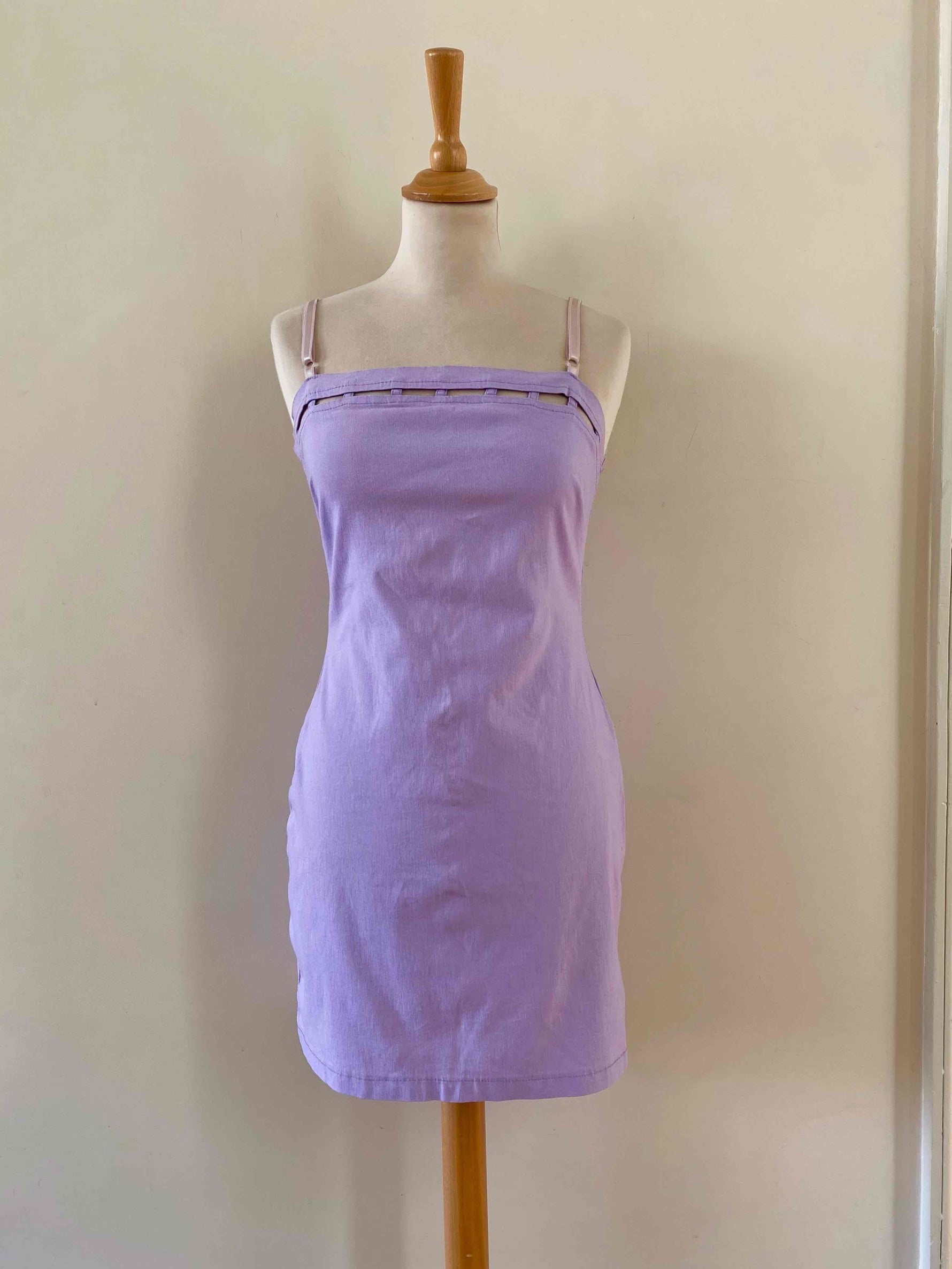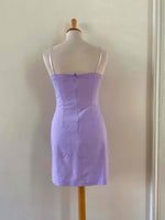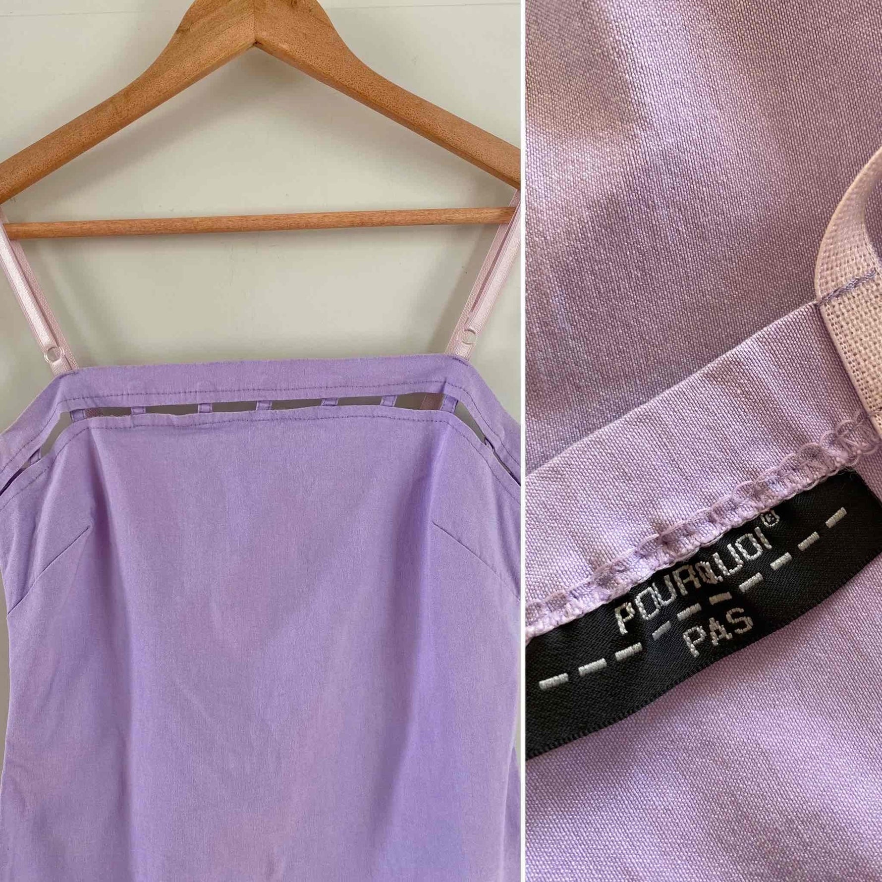 Prix unitaire parRobe ajourée, en viscose élasthanne matière gainante lilas, encolure corsage bustier ajourée, bretelles élastique satinées réglables, fabriquée en France, taille 36 portée ici sur un mannequin T36, aisselles 42cm.