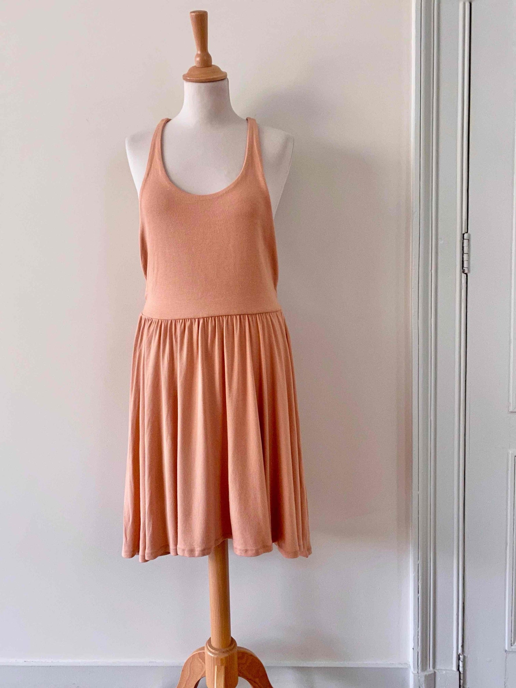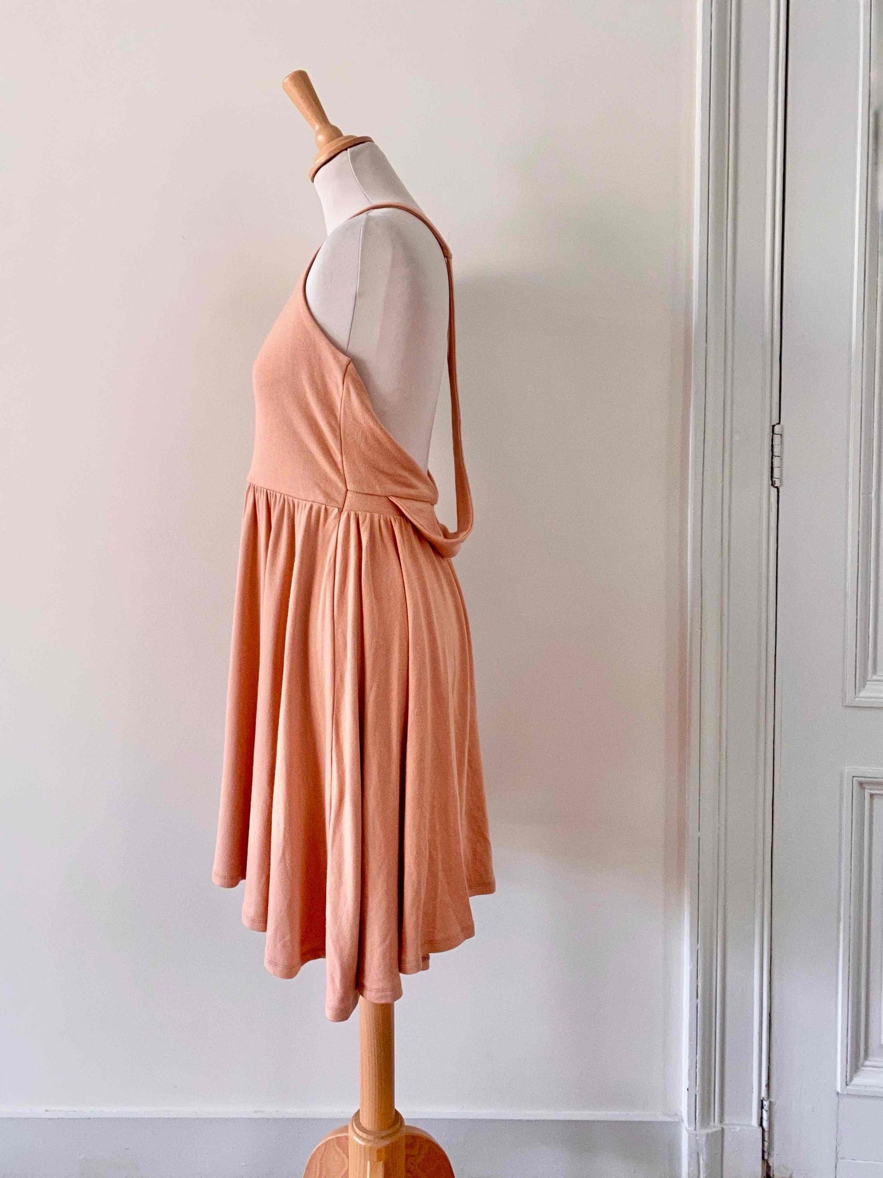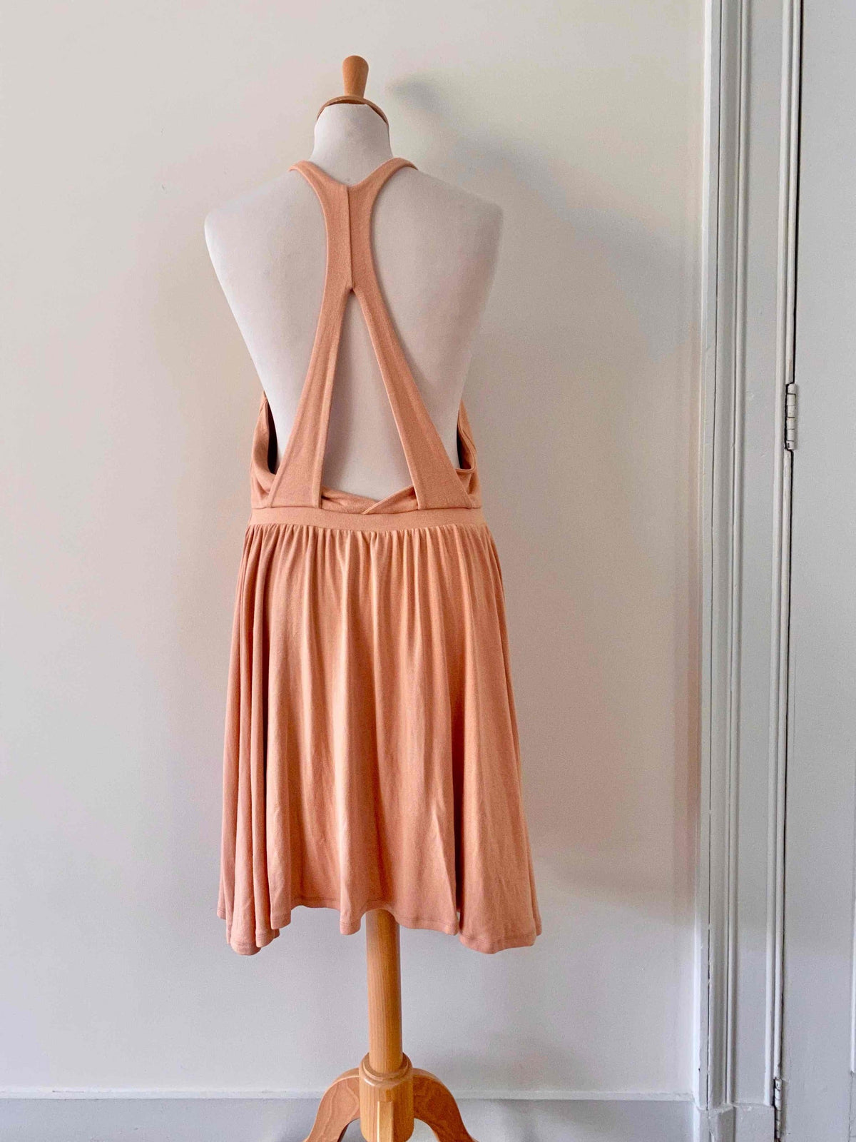 Prix unitaire parRobe Salopette Dos Nu en jersey de coton doux, rose poudré, dos nu nageur, années 80’s. Aisselles 42cm