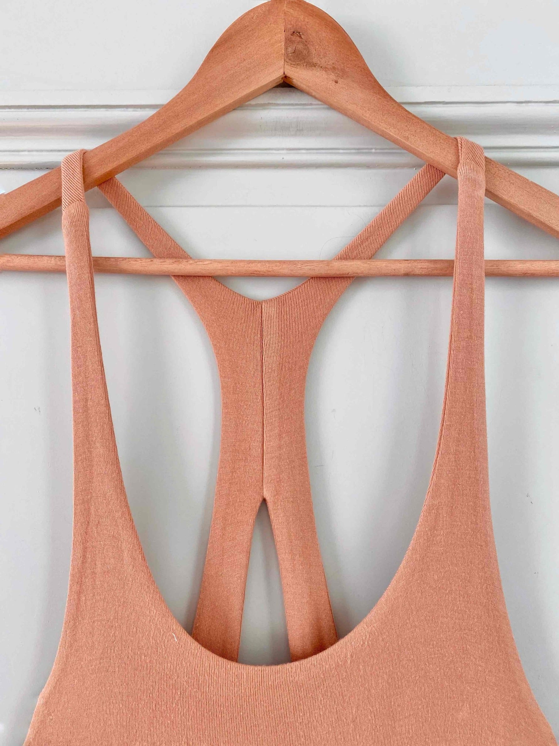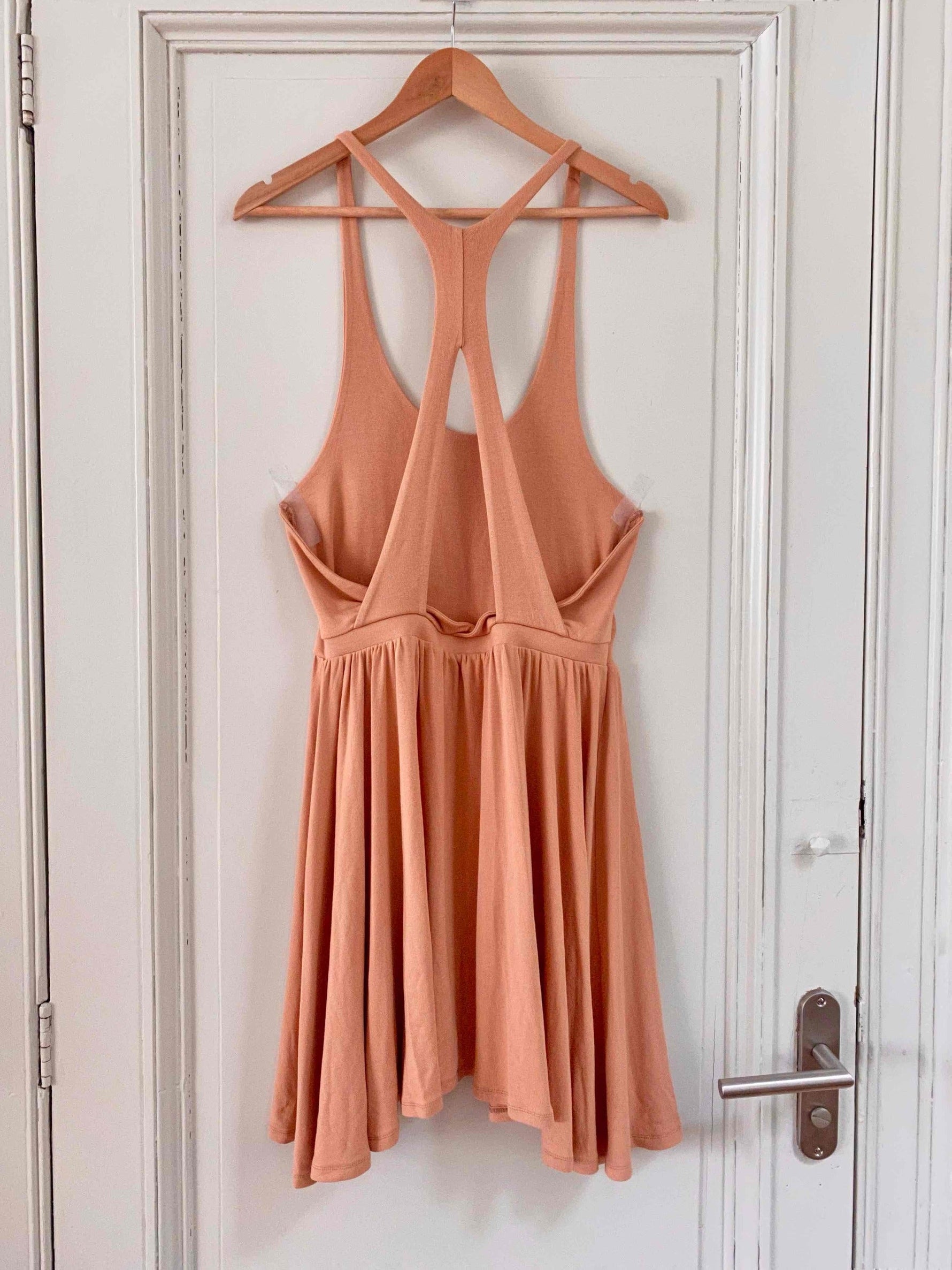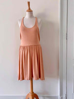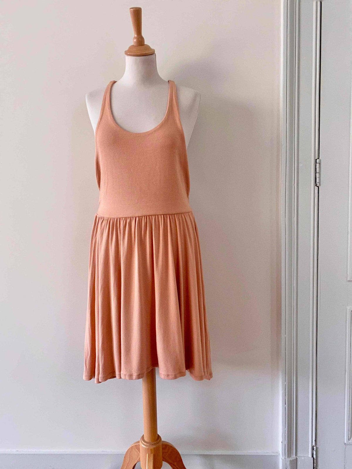 Prix unitaire parRobe Salopette Dos Nu en jersey de coton doux, rose poudré, dos nu nageur, années 80’s. Aisselles 42cm