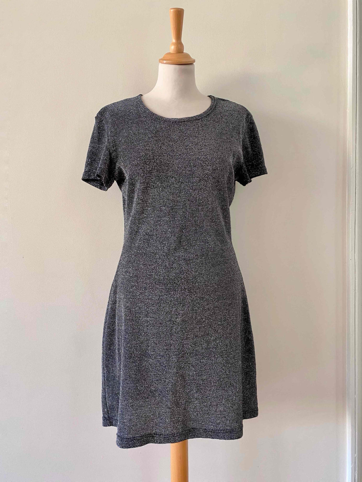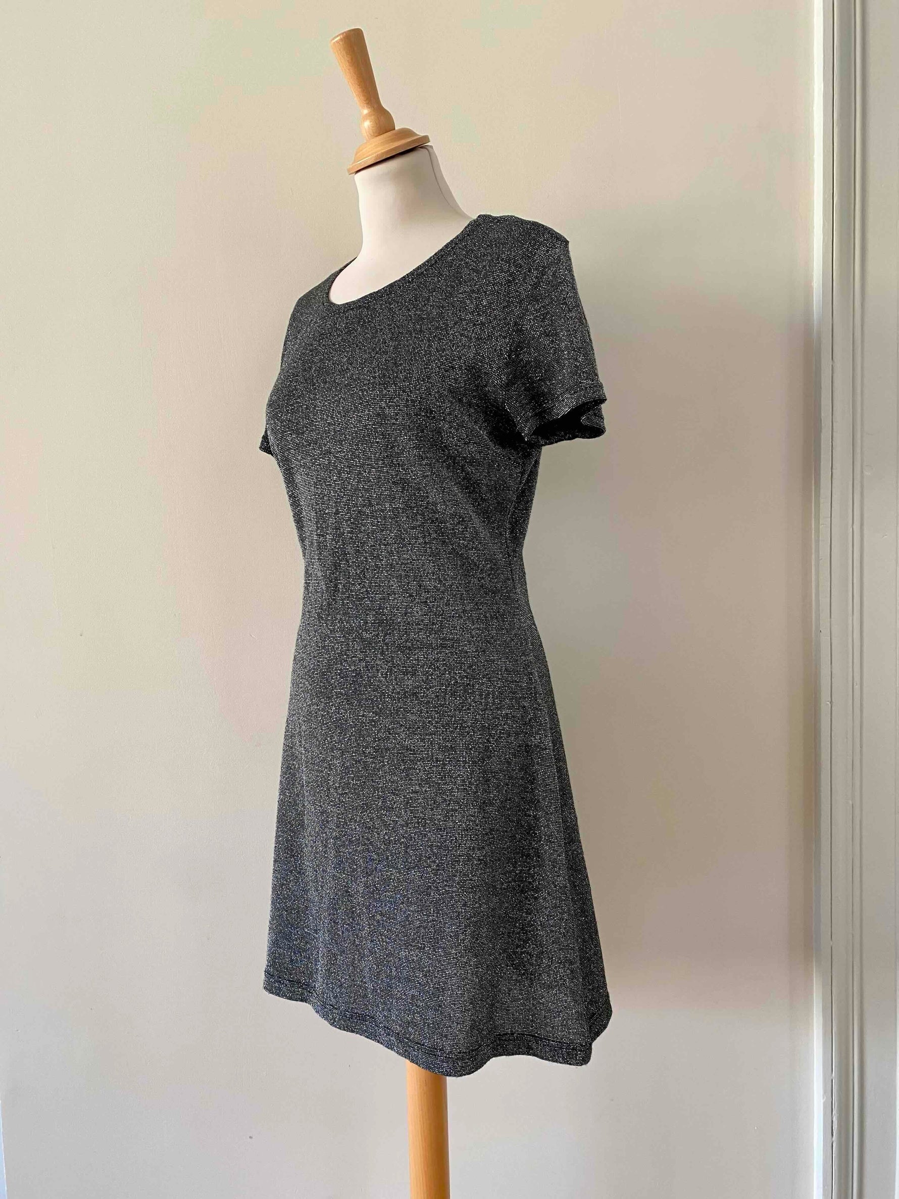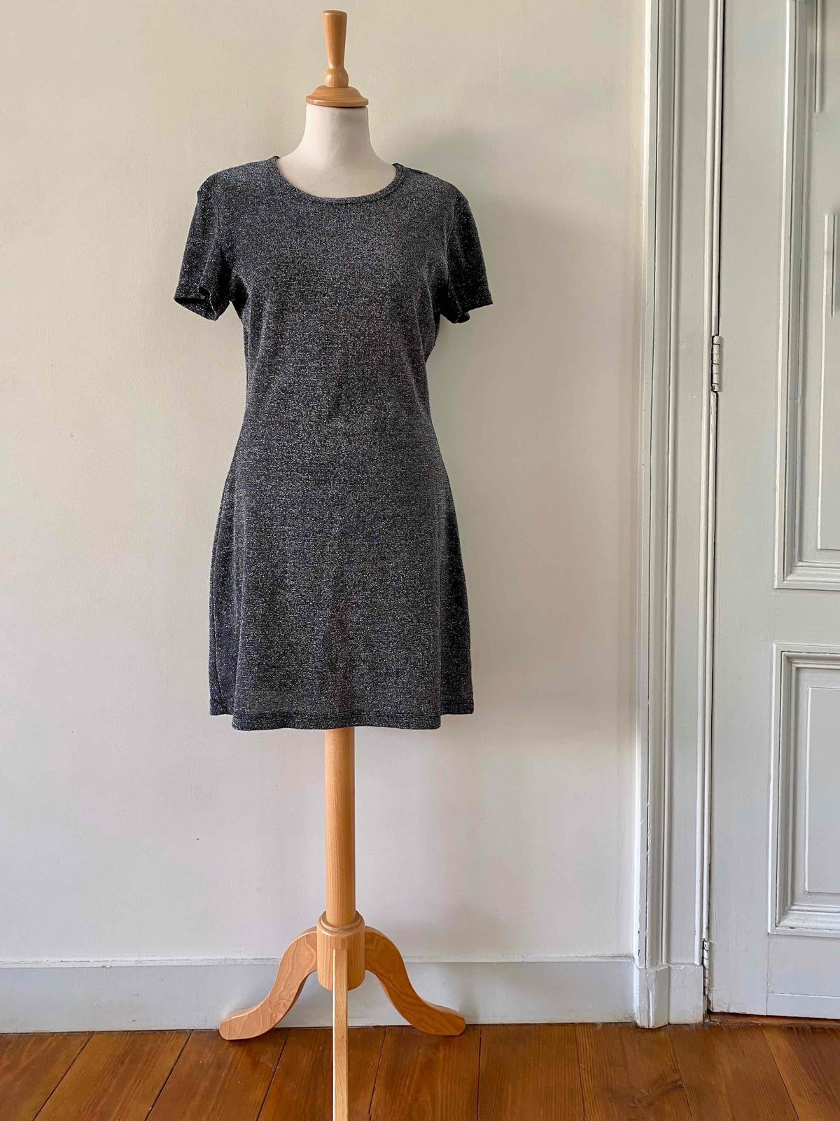 Prix unitaire parRobe en lurex, mini, noire et argentée.