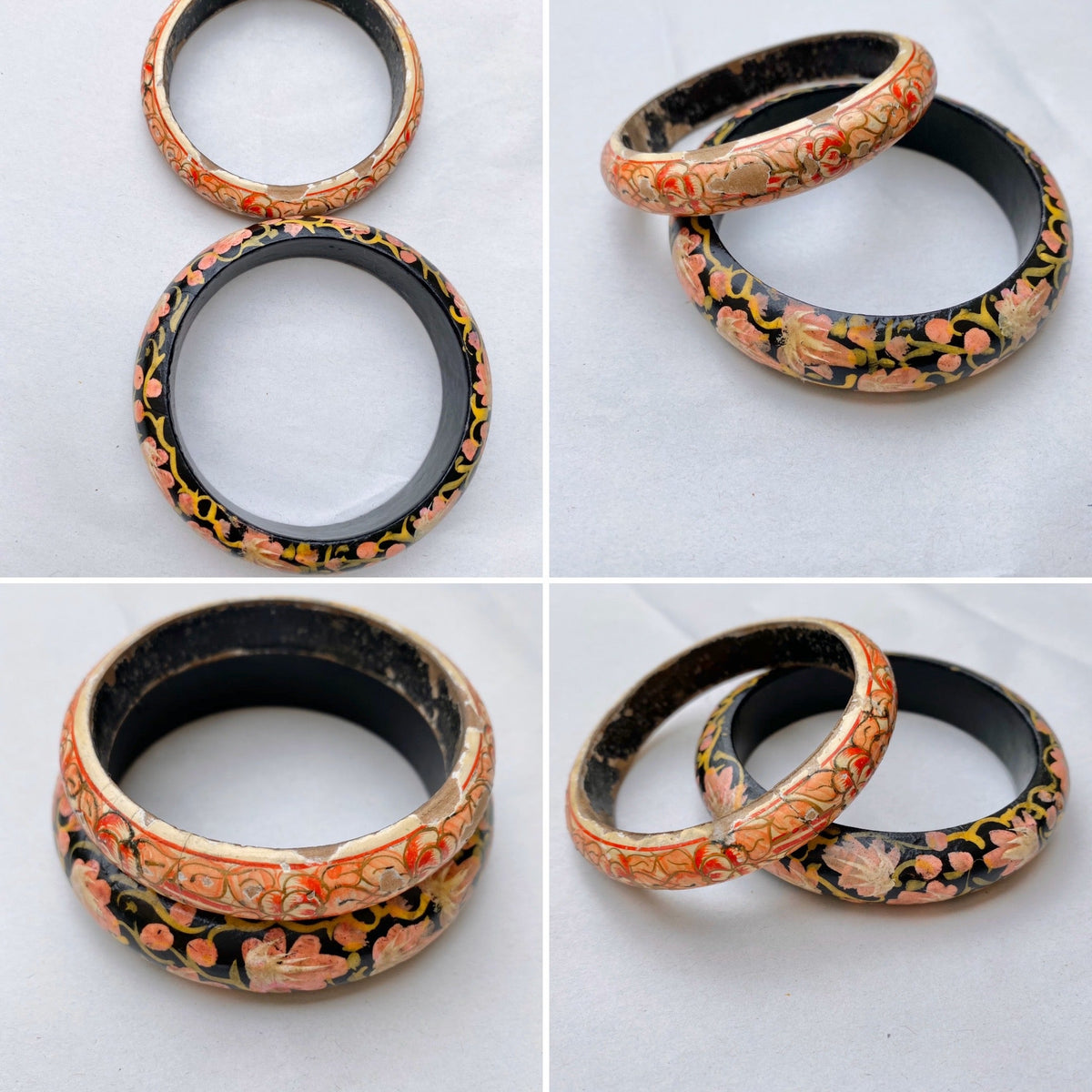 Prix unitaire parDeux joncs en bois fleuri, peints à la main. Fabriqués en Hongrie. Vintage 70's.