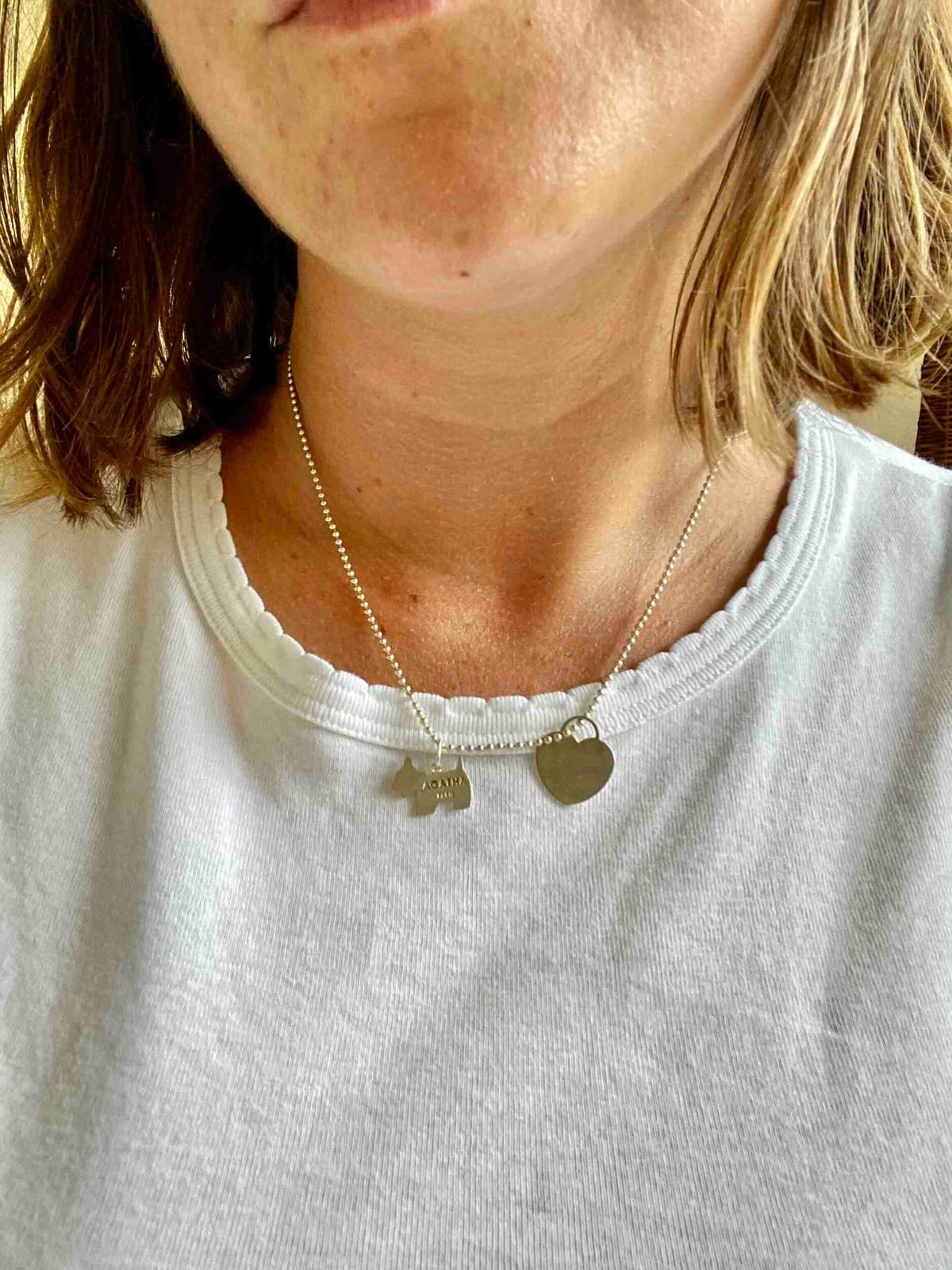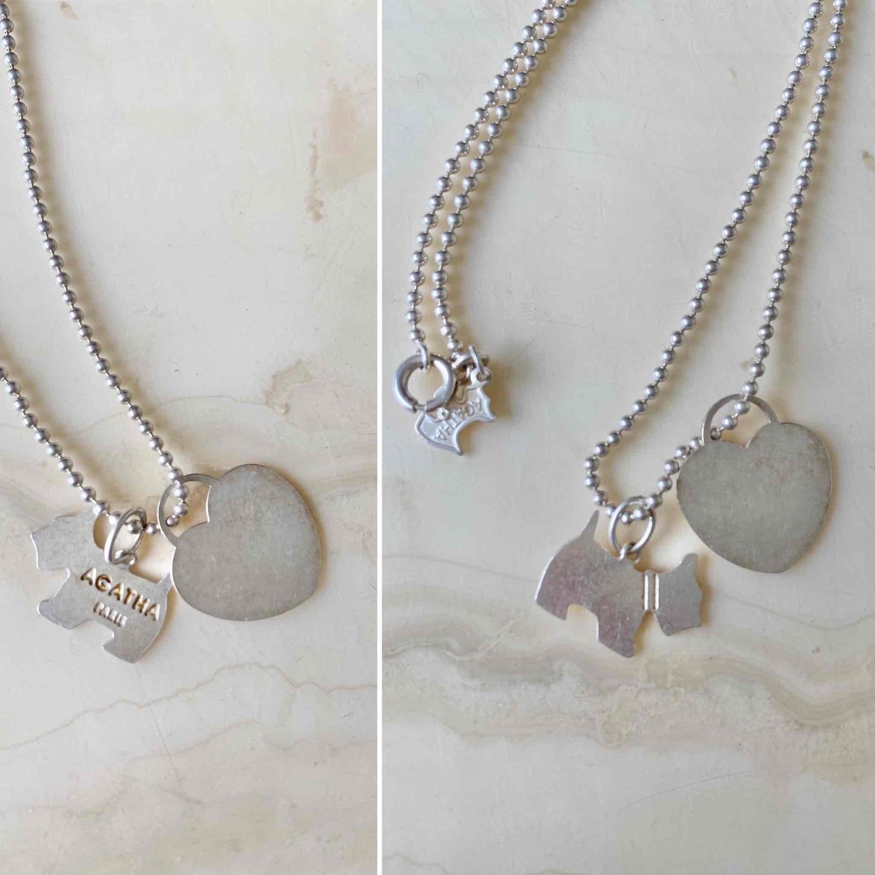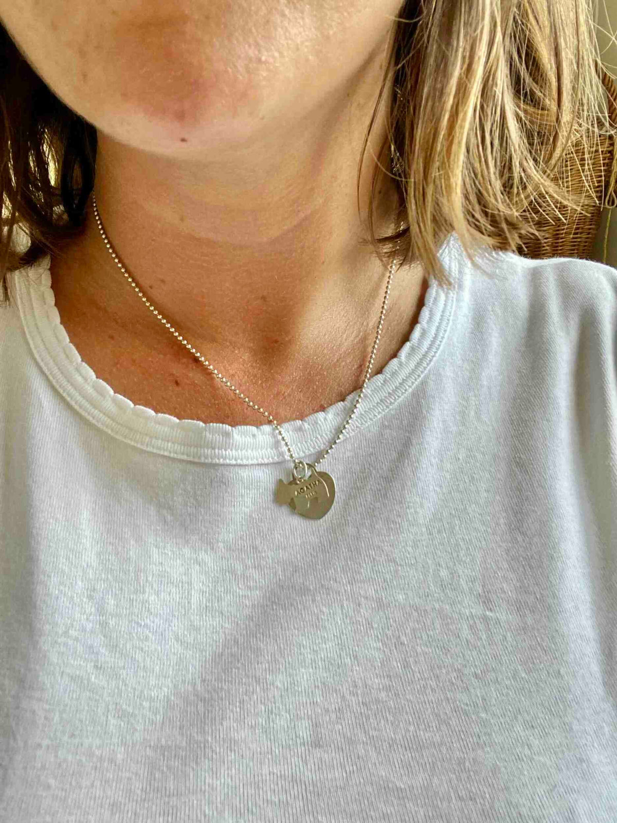 Prix unitaire parCollier Agatha en Argent veritable, chaine boules courte ras de cou, et pendantifs chien et cœur.