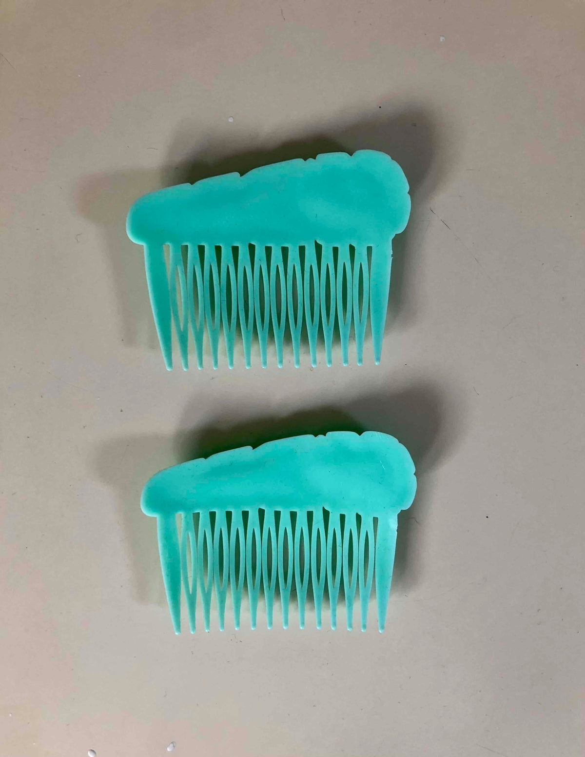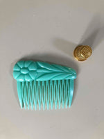 Prix unitaire parBarrettes peignes à fleurs. Couleur turquoise pastel. Deadstock 90’s. Vendu par paire. Modèle disponible en d’autres tonalités pastels.