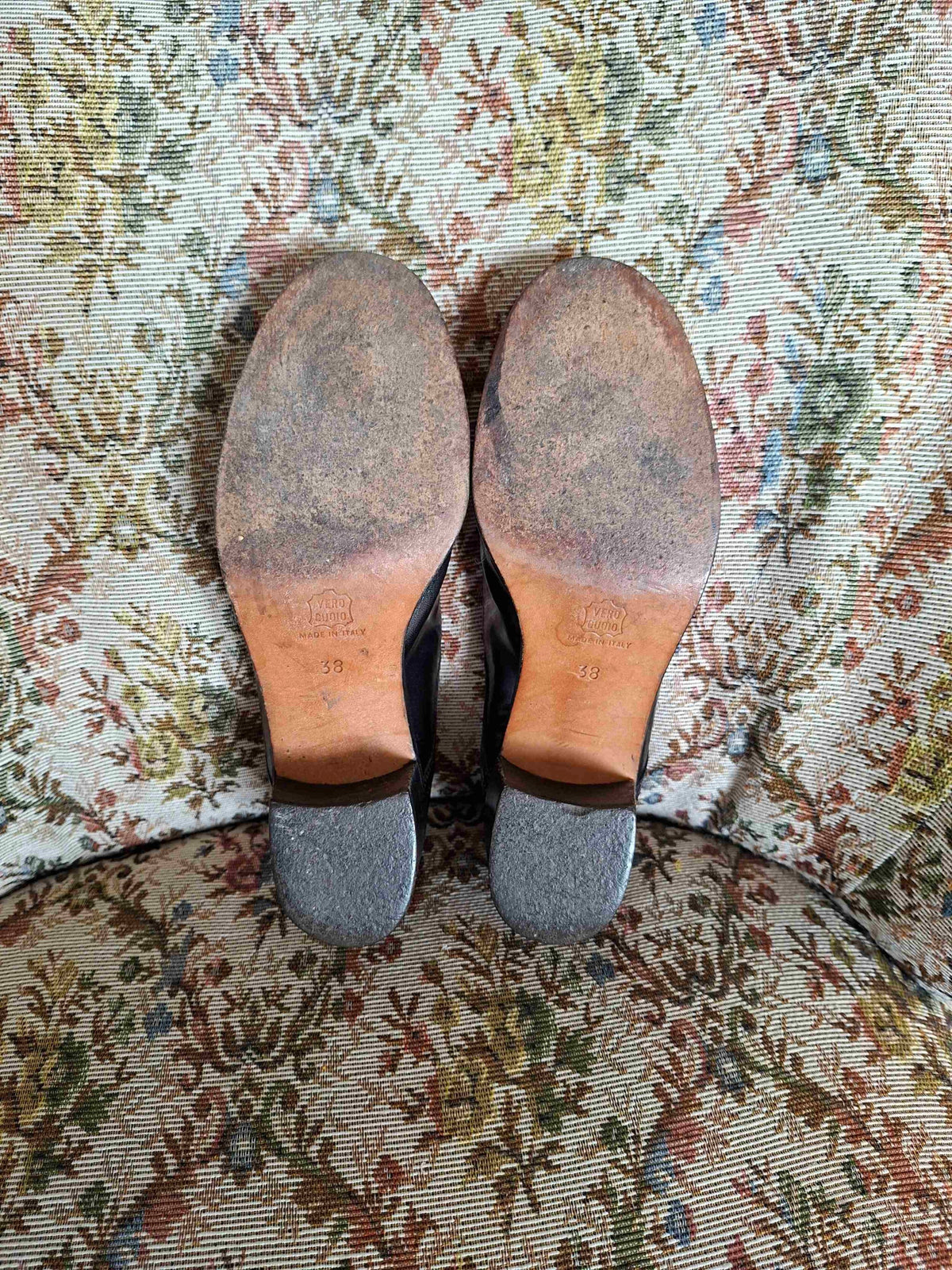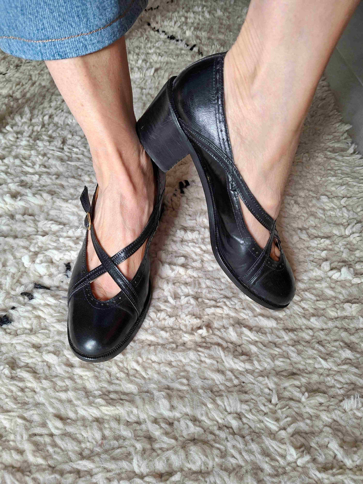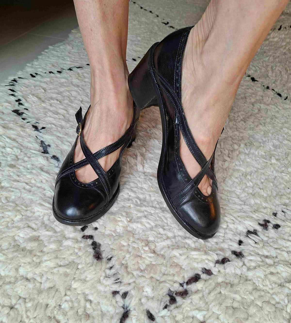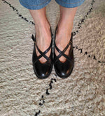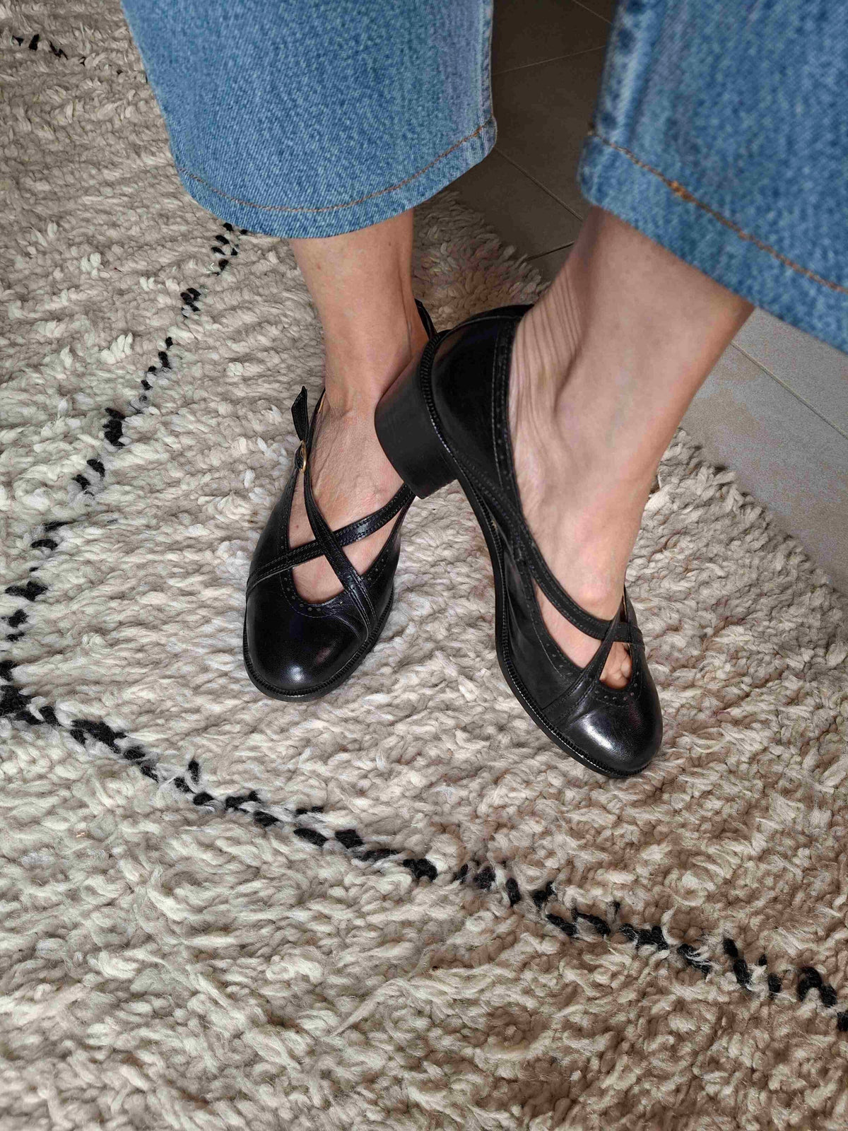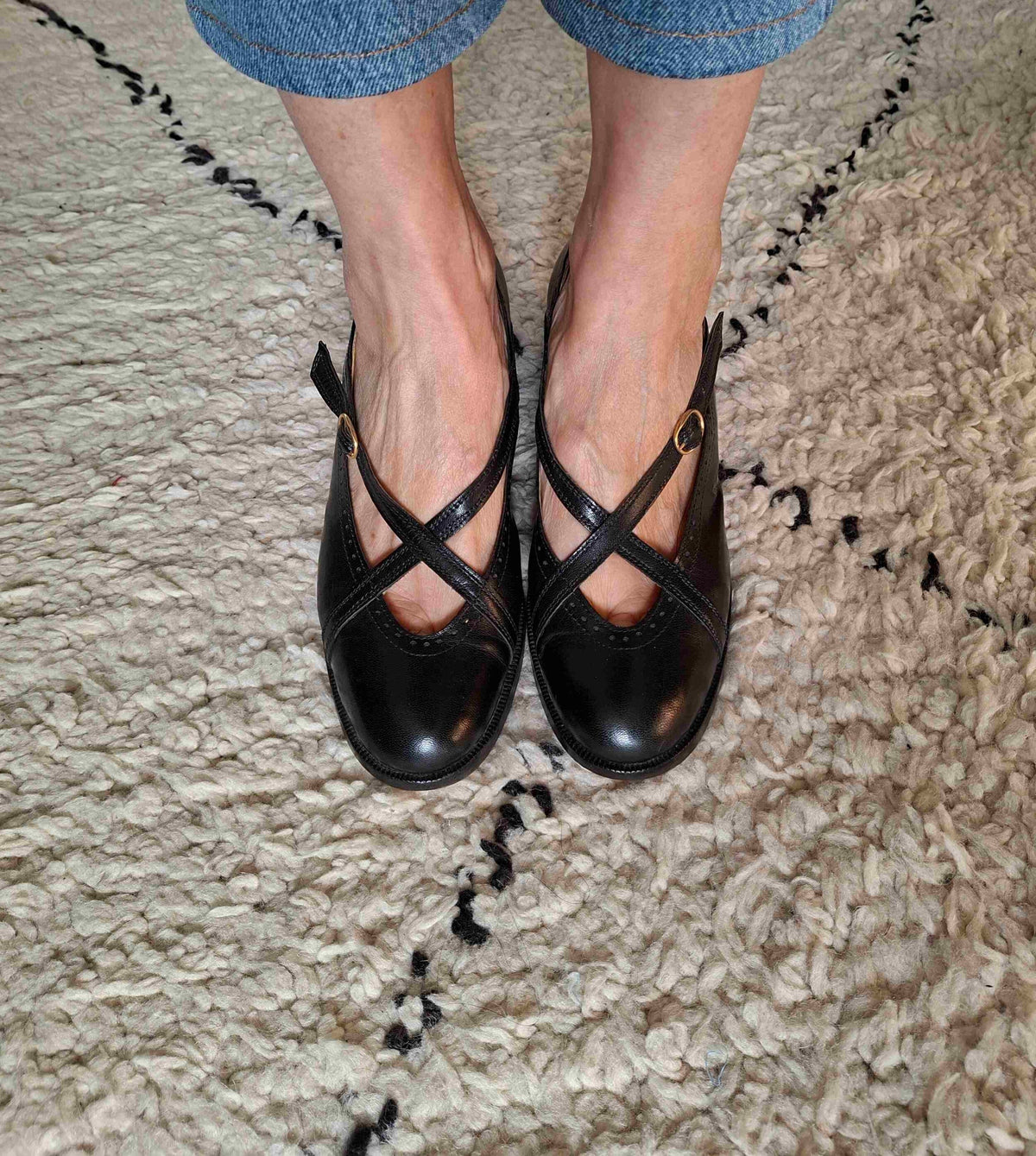 Brides croisées sur le dessus. Doublure intérieure en cuir