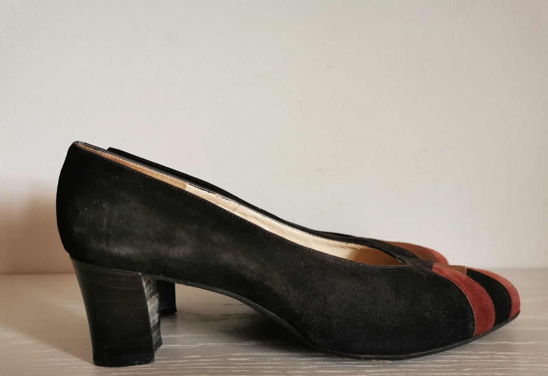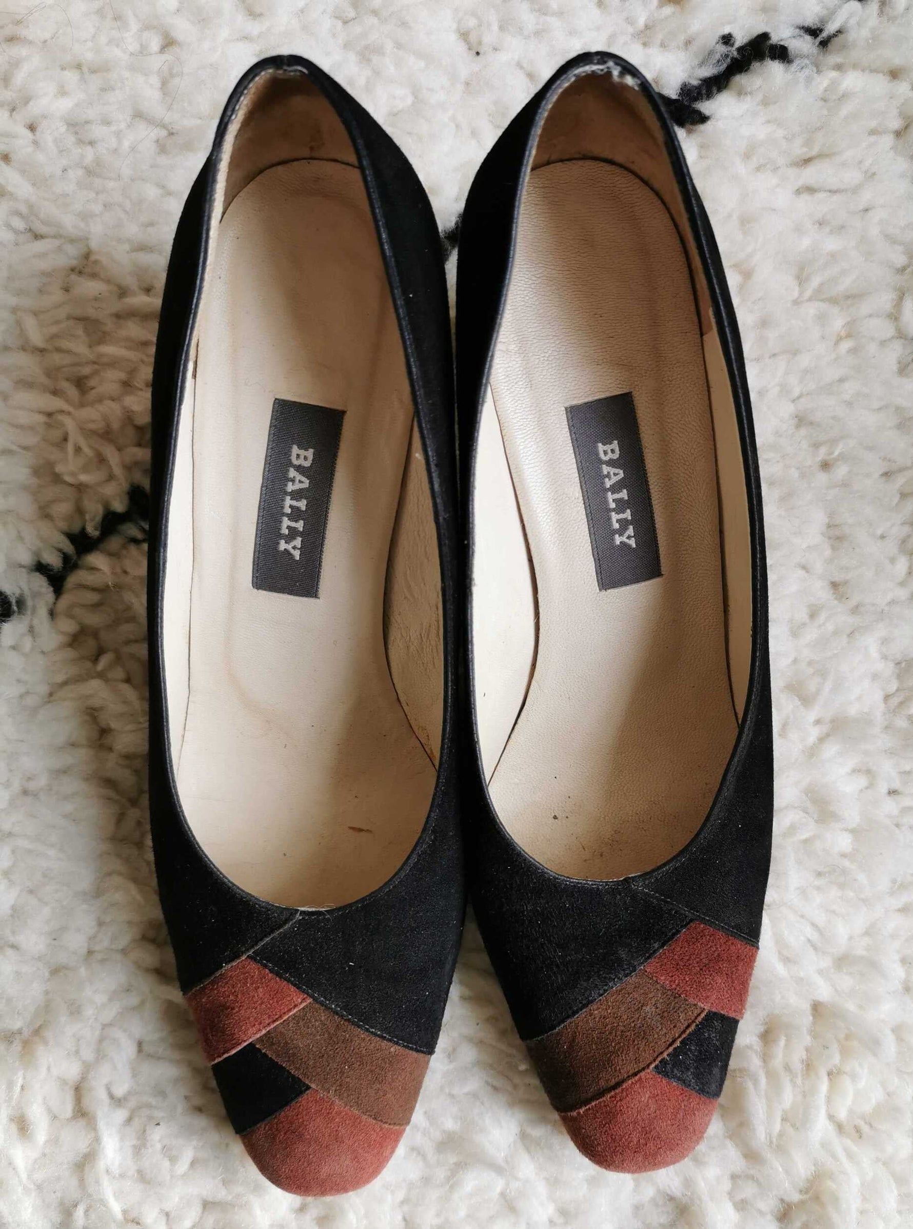 Prix unitaire parEscarpins Bally en daim Made in France, doublure en cuir et petits talons. La pointe des escarpins est bordeaux, chocolat et noir. Pointure 39 mais convient à un 38,38,5.