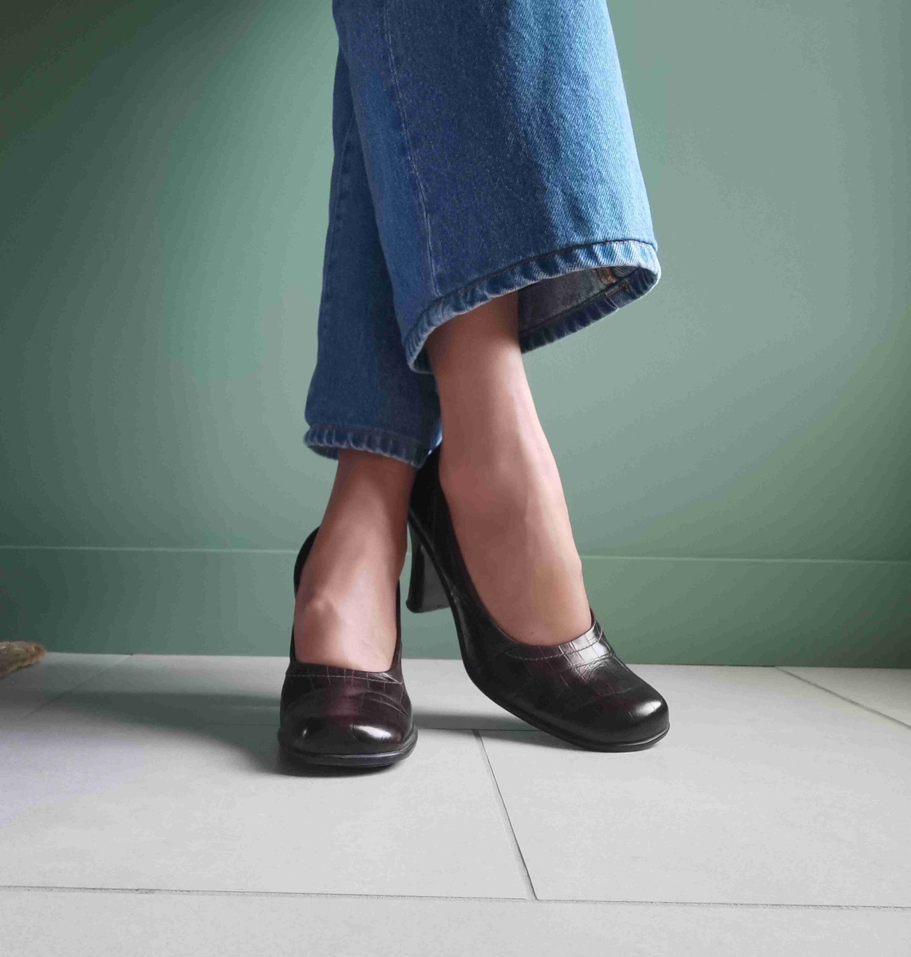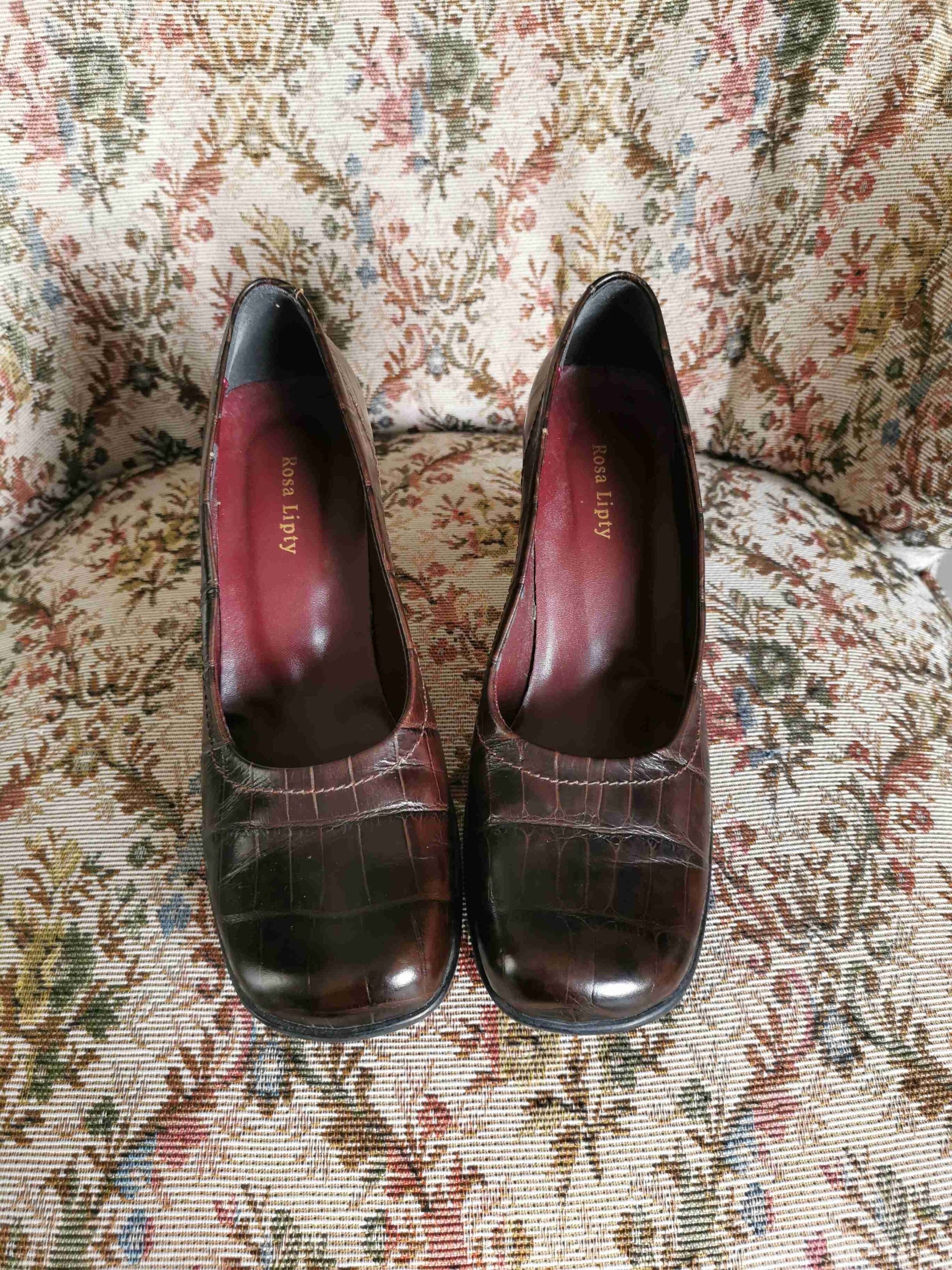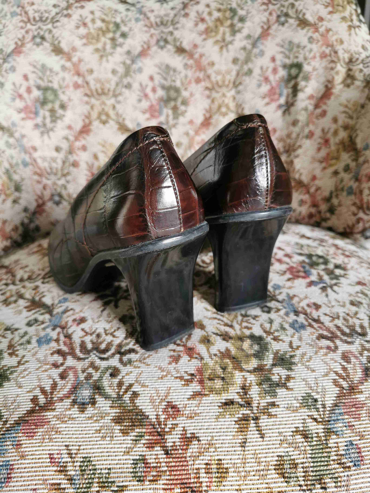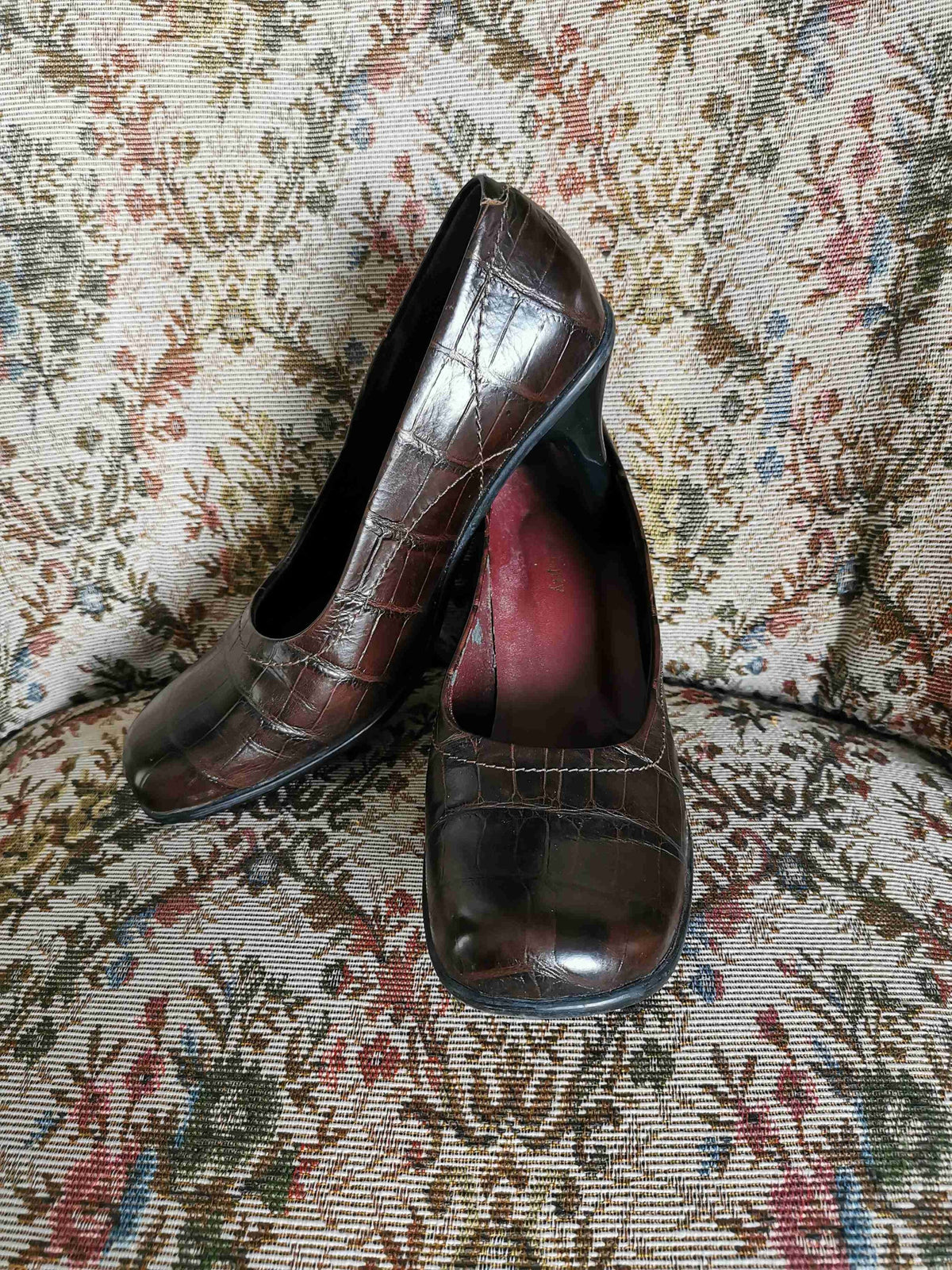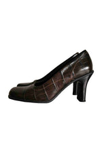 Prix unitaire parEscarpins en cuir imprimé croco marron ébène