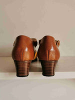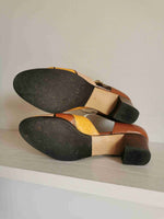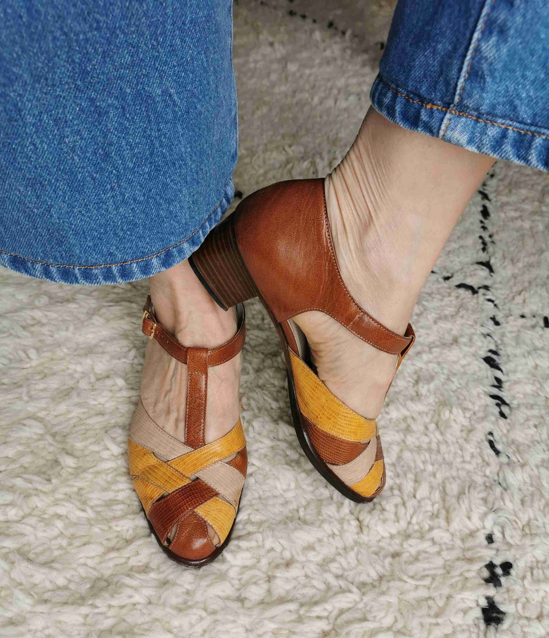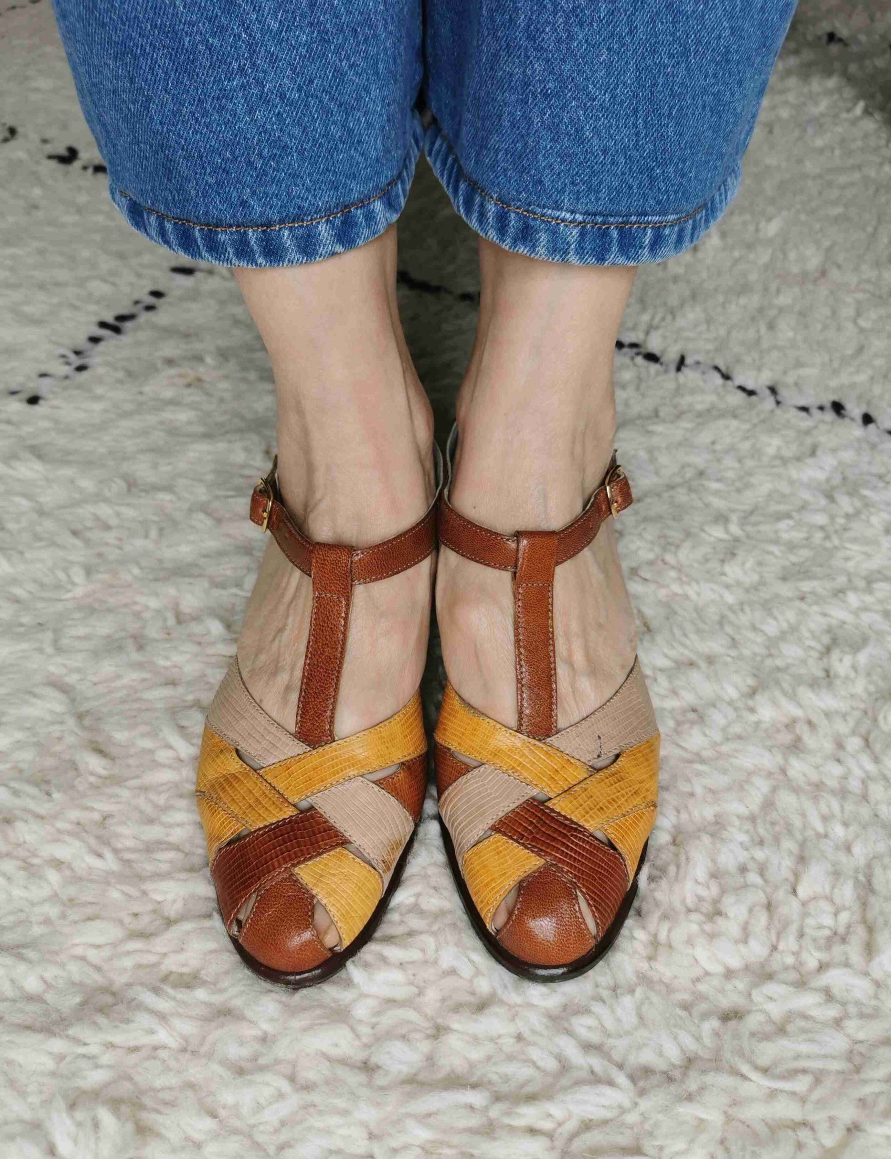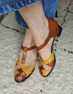 En cuir tricolor : marron, jaune et beige
