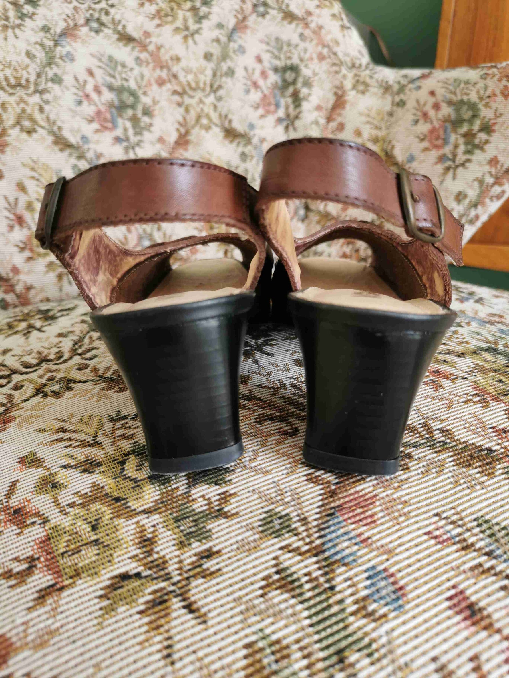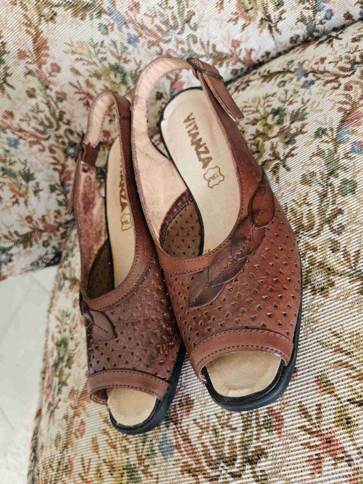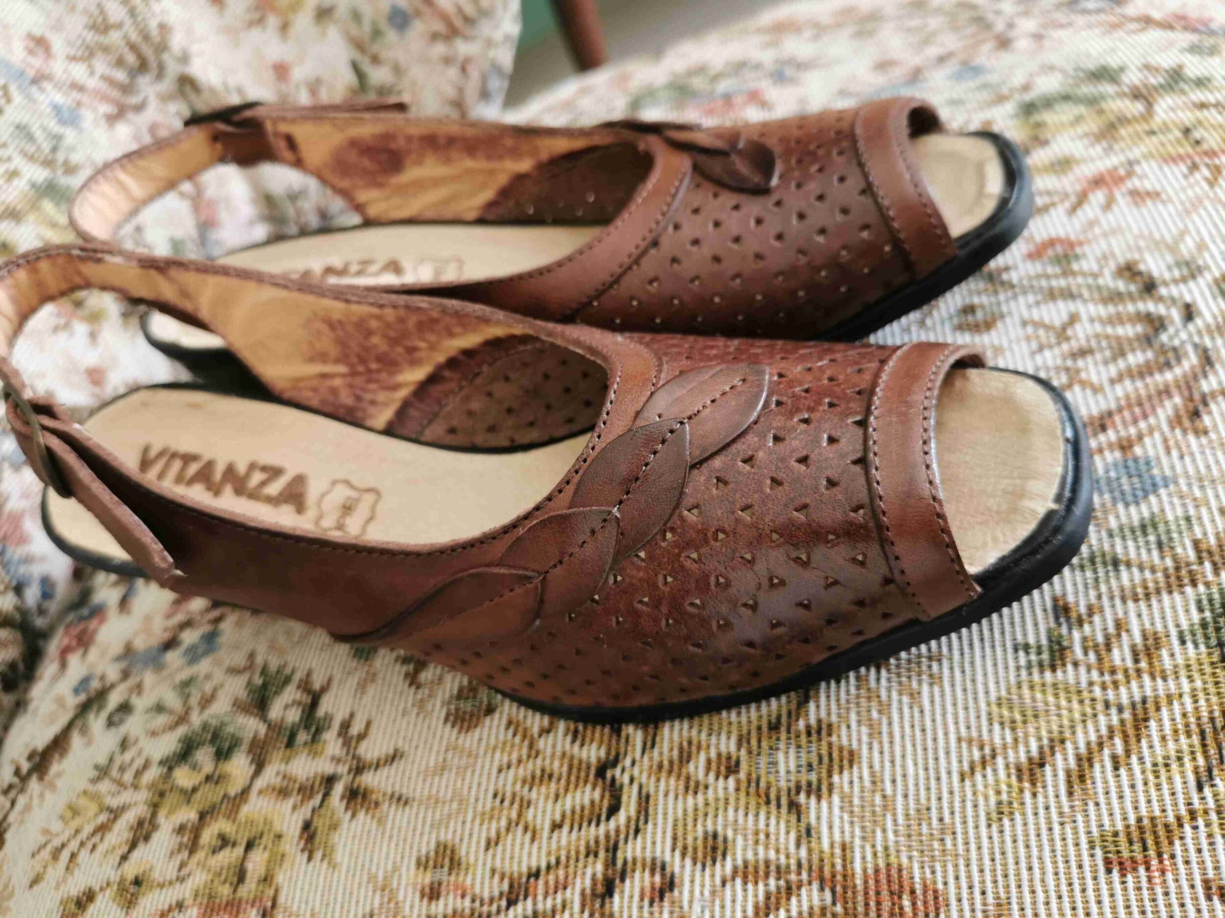 Le devant de la sandale est en cuir ajouré agrémenté d'une feuille très jolie sur le dessus