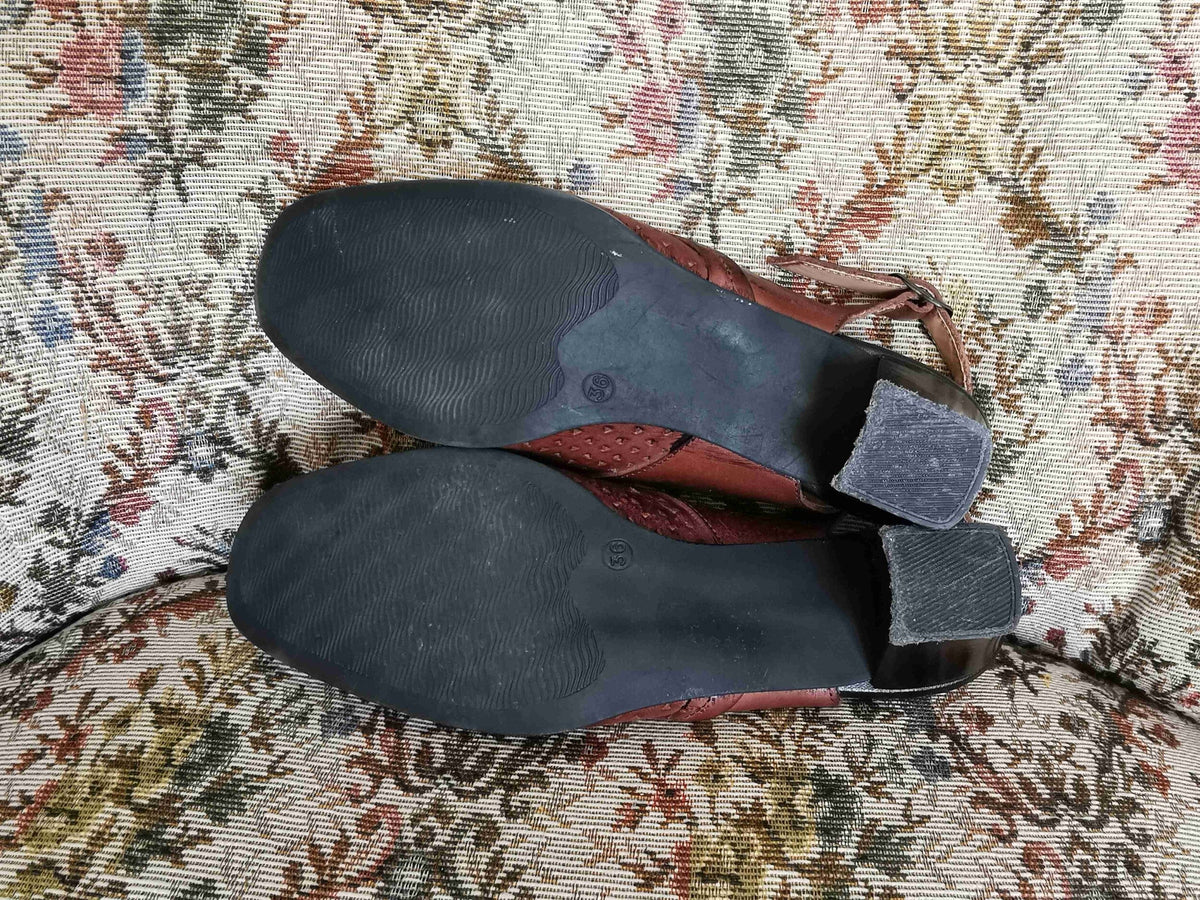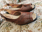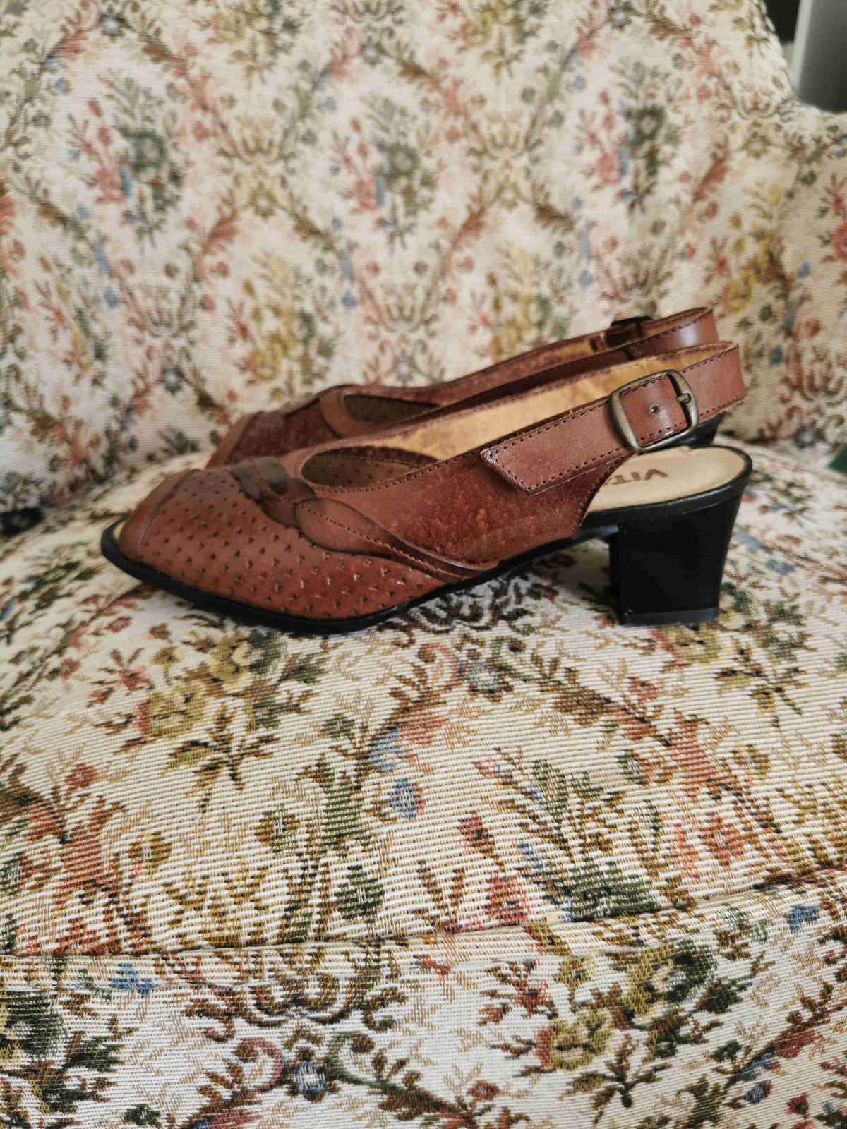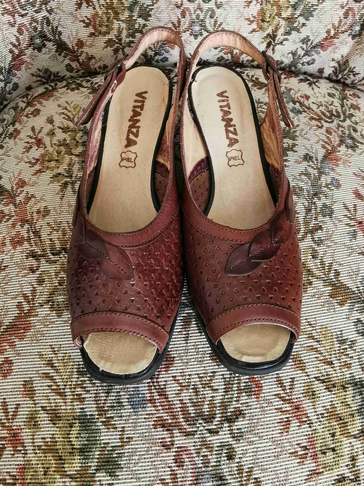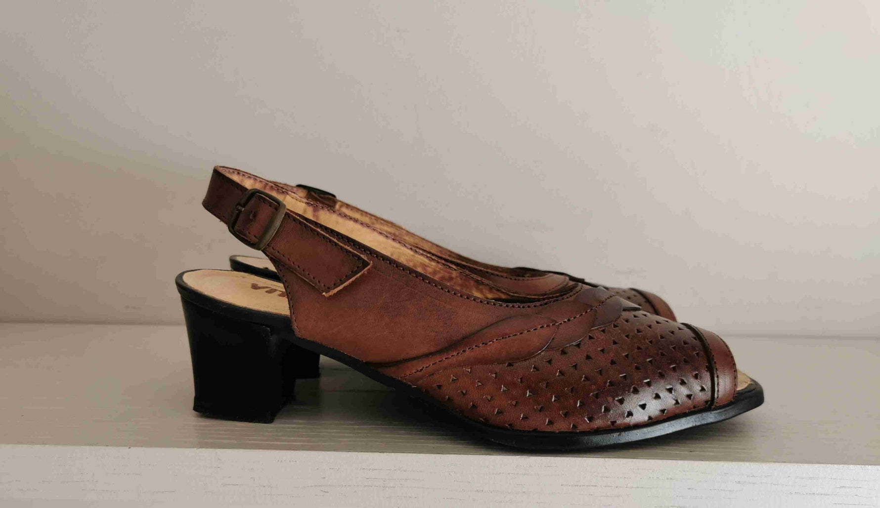 Le devant de la sandale est en cuir ajouré agrémenté d'une feuille très jolie sur le dessus
