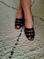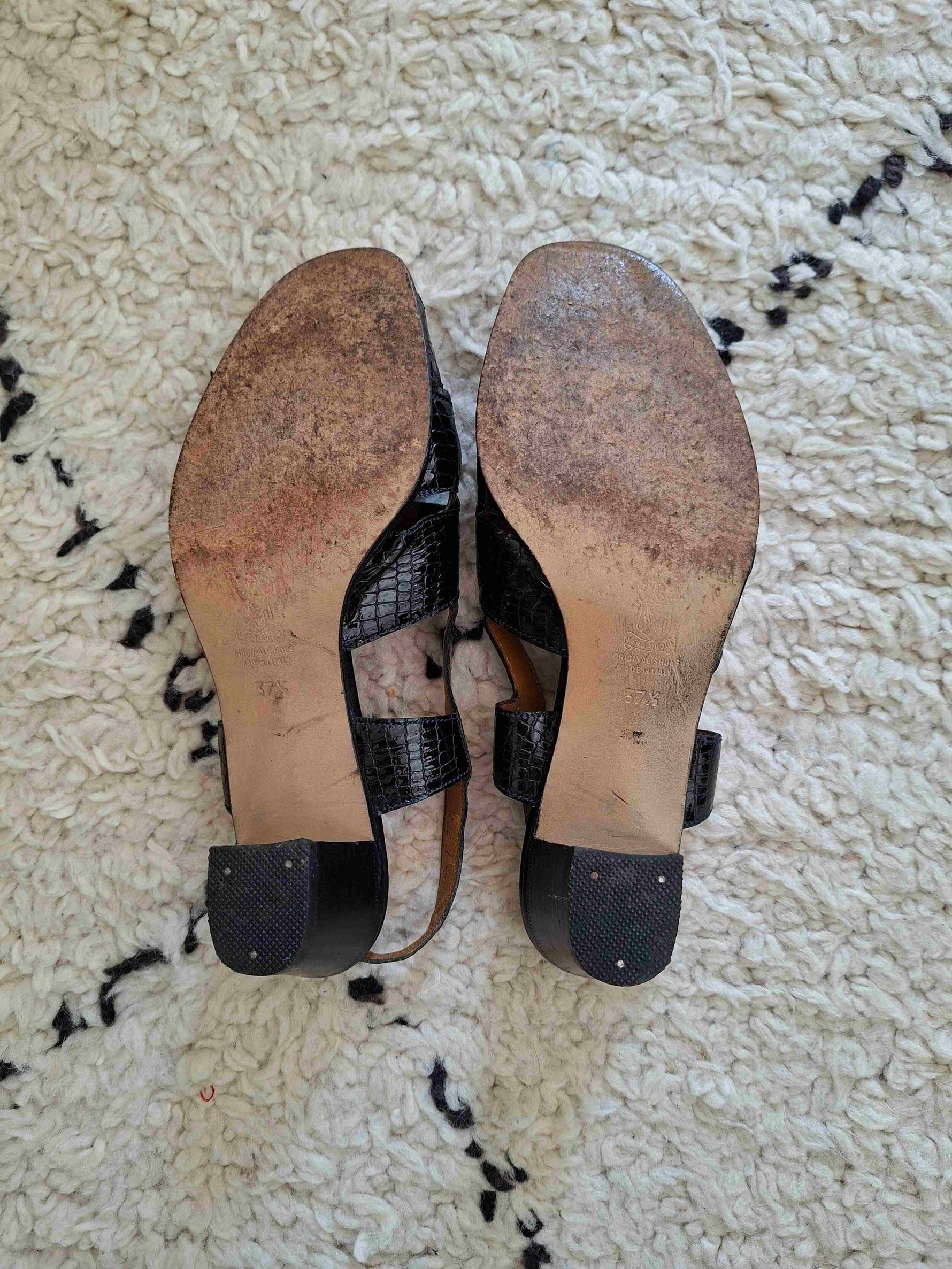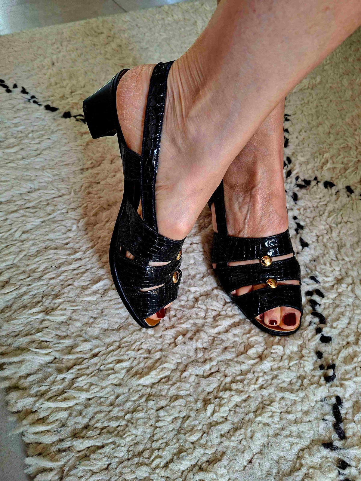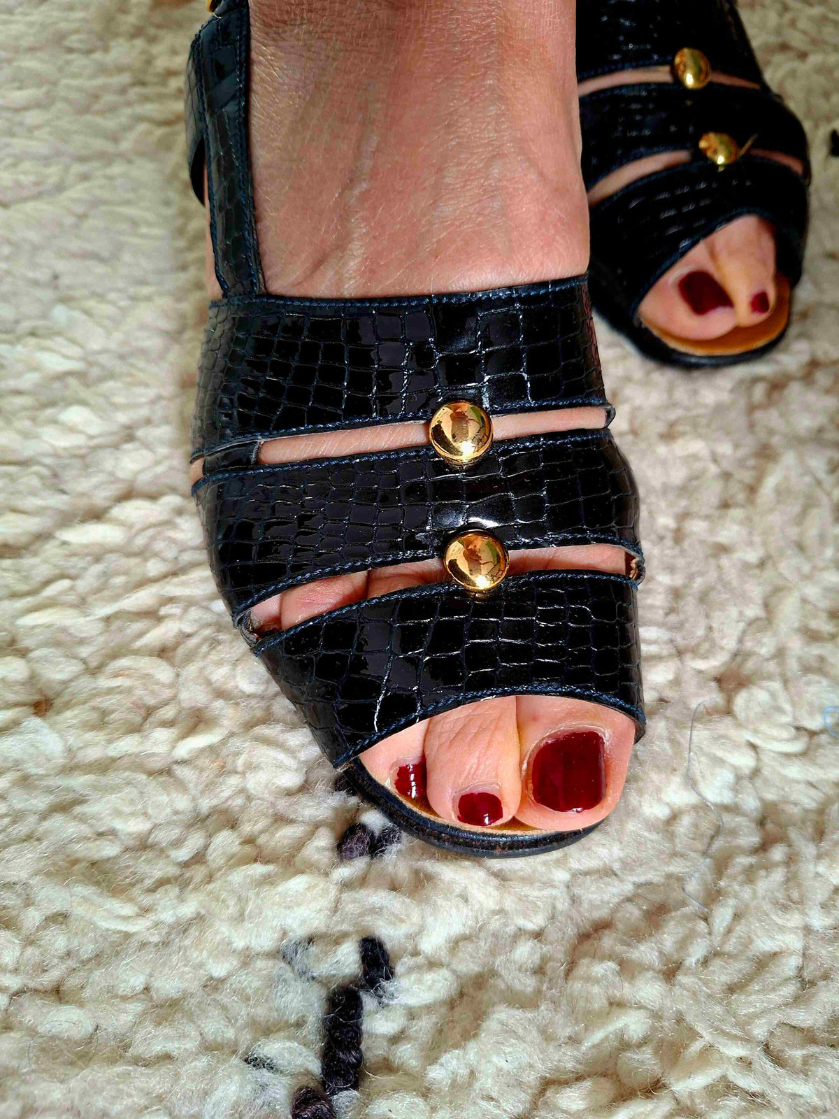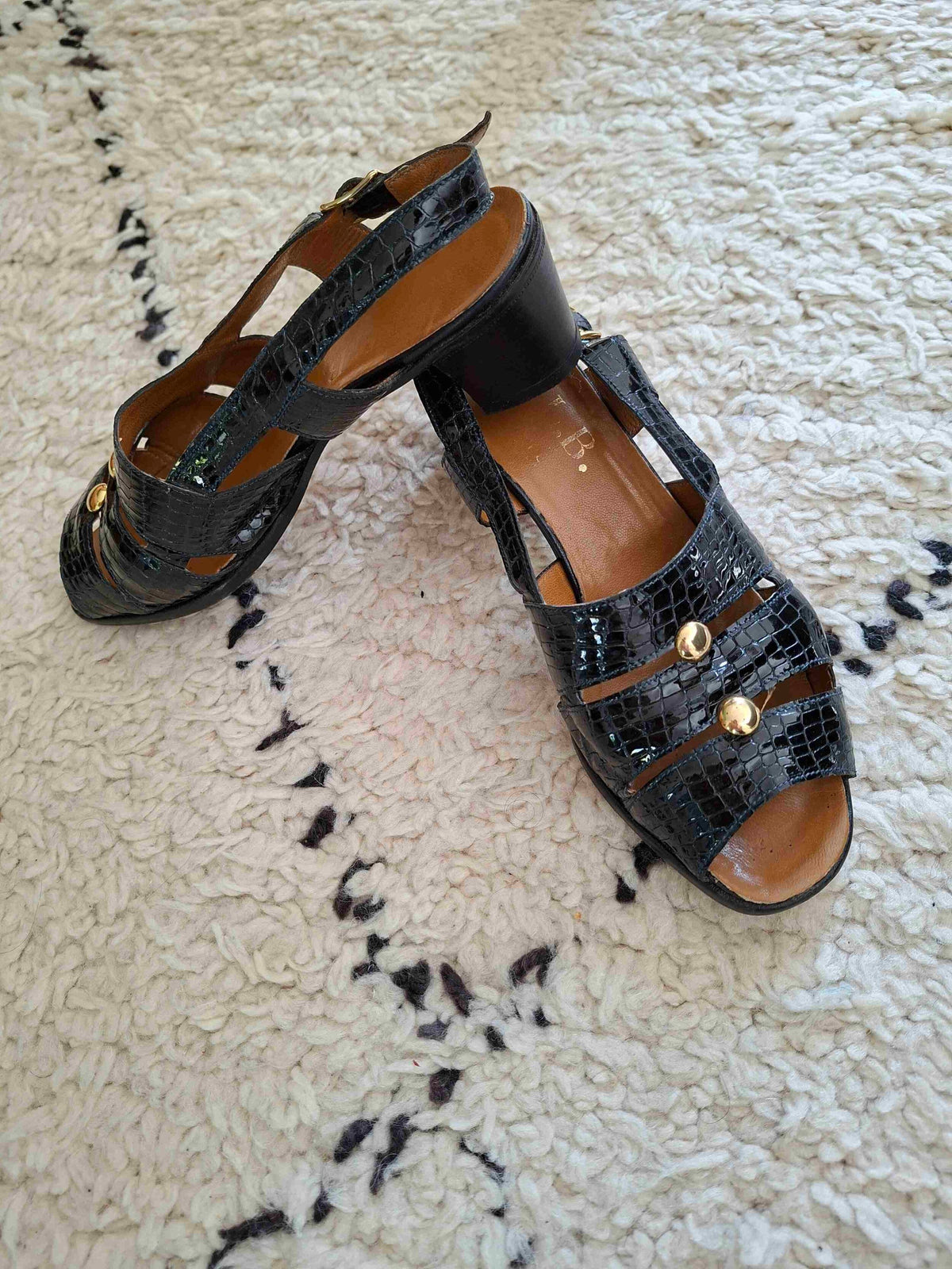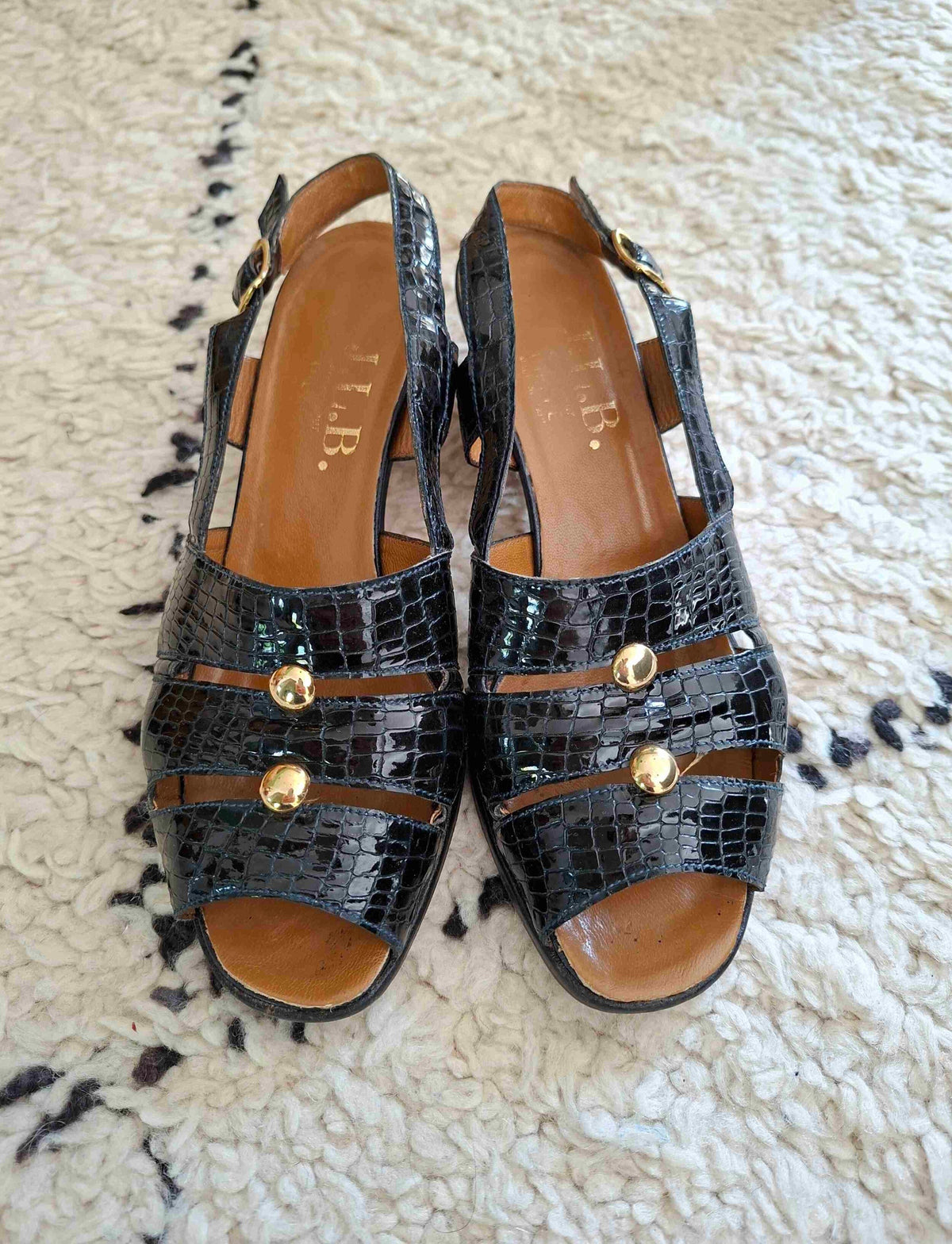 Prix unitaire parSandales en cuir imprimé croco noir vernis