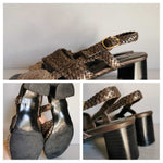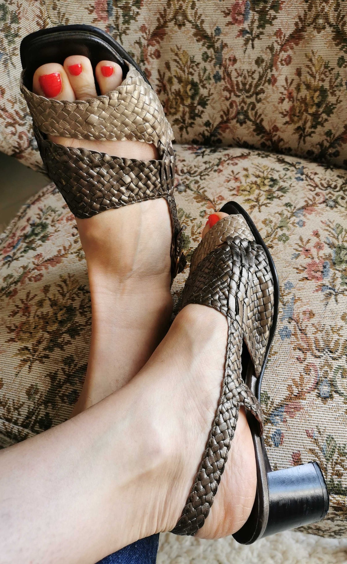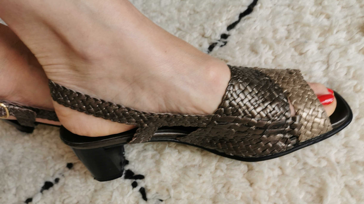 Prix unitaire parRobe midi en coton, mordoré avec deux nuances de couleur. Brides réglables. Talons 6 cm Pointure 39.