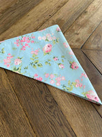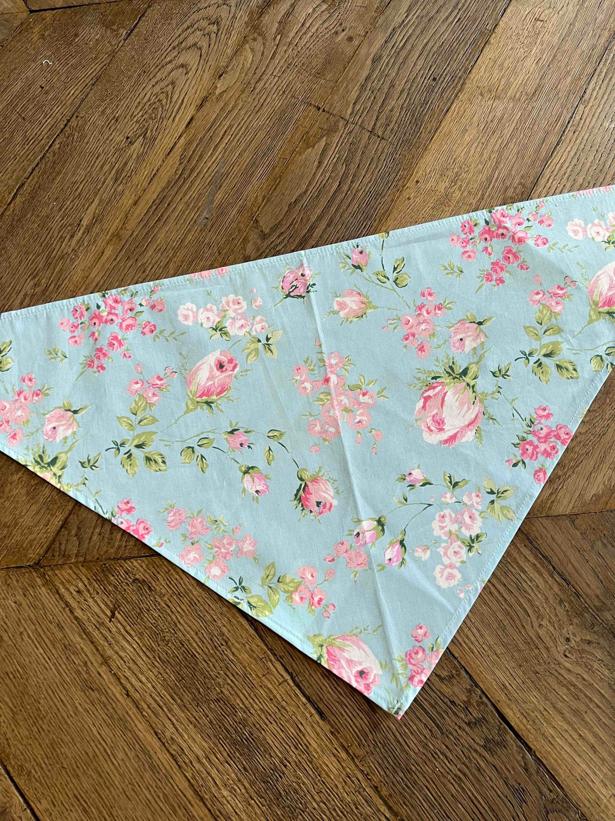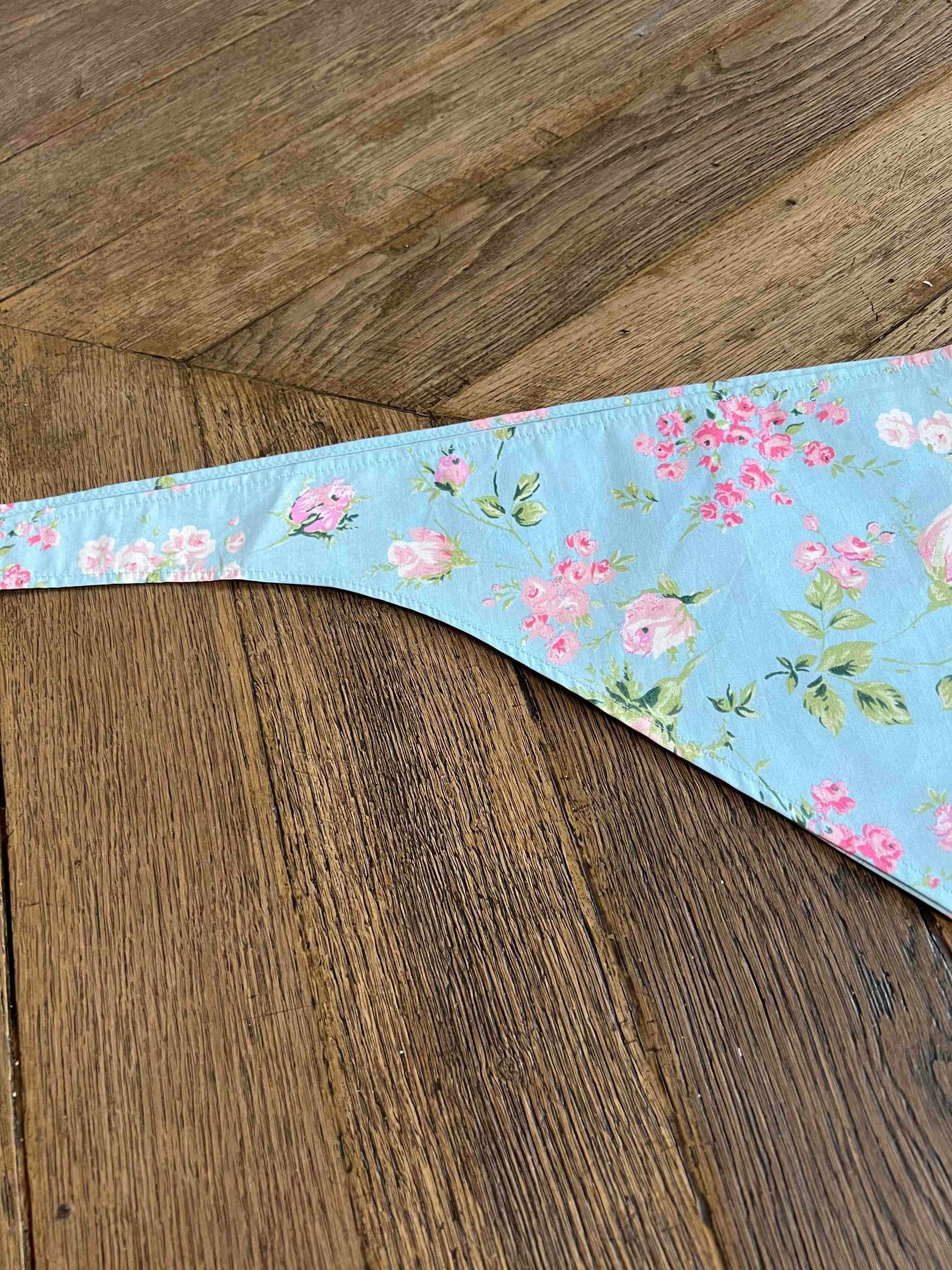 Prix unitaire parBandana en coton bleu pastel avec un motif de fleurs rose pastel. Années 90, aucun défaut excellent état.