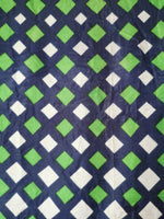Foulard à carreaux, en soie, bords à franges.