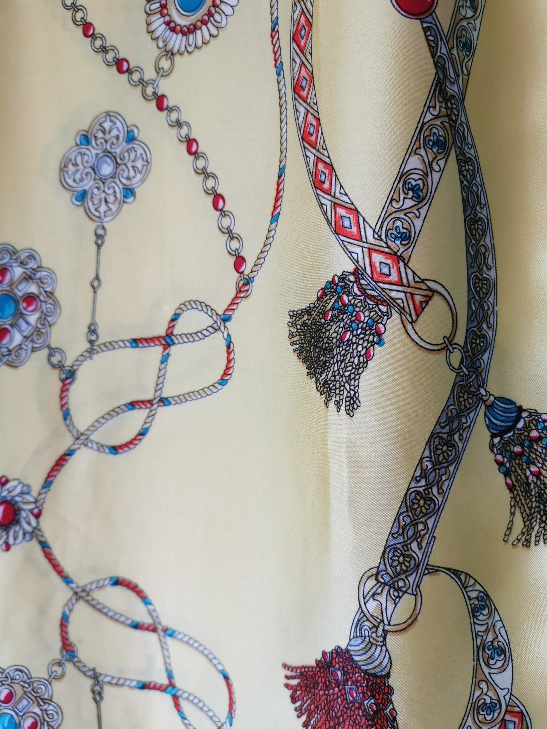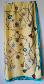 Prix unitaire parGrand foulard en soie et viscose jaune pastel et turquoise à motifs