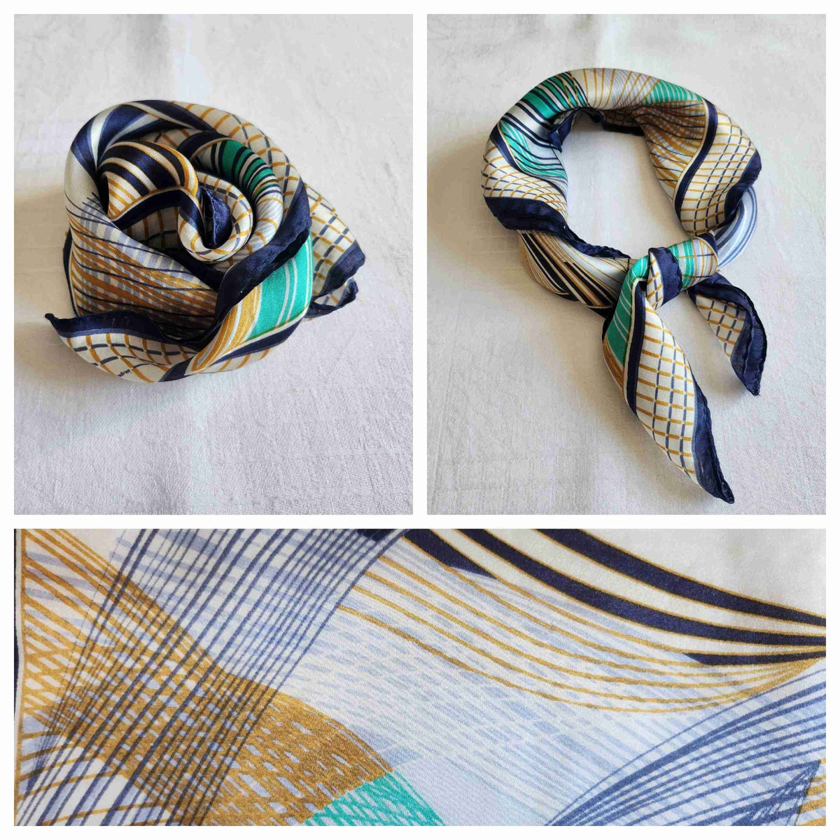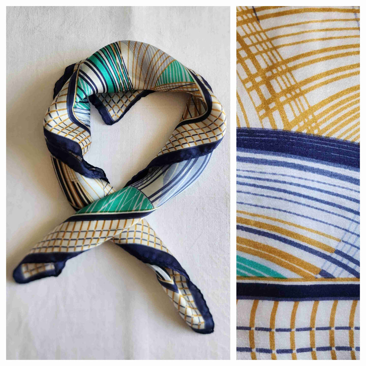 Prix unitaire parMini carré soie à motifs. Bords roulottés main.