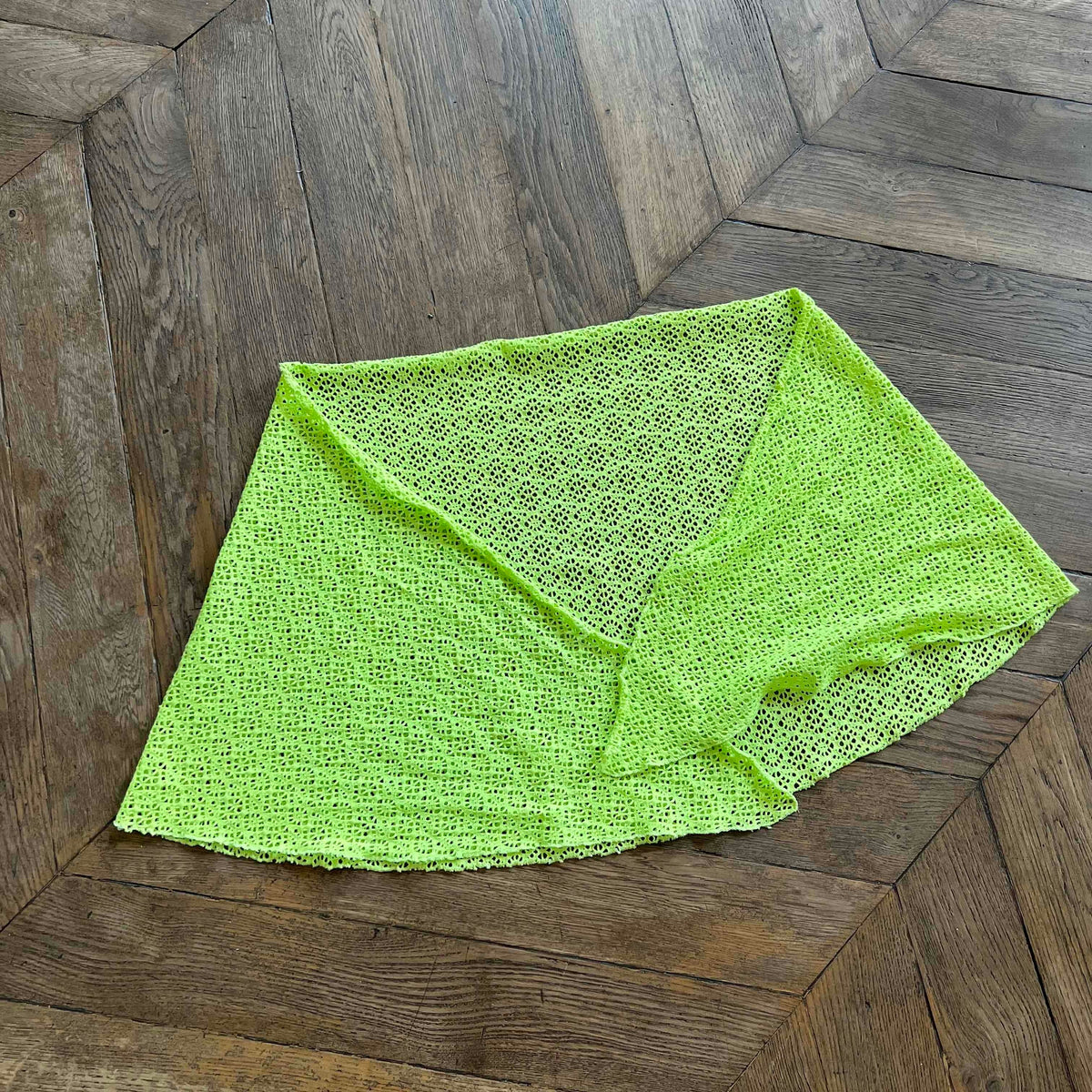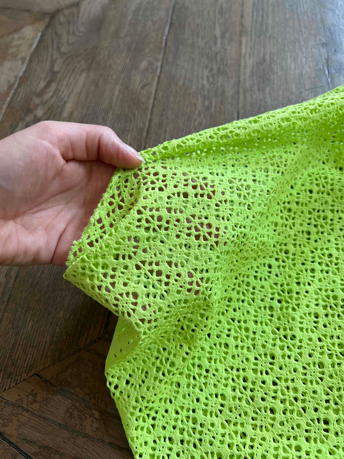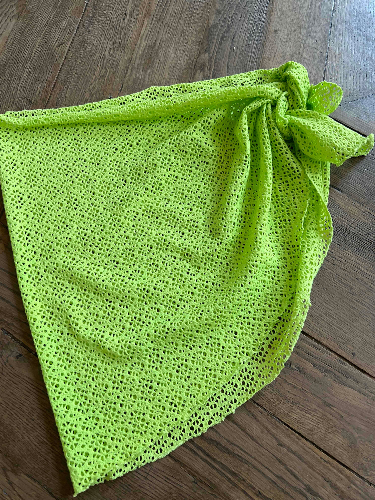 Paréo ajouré de plage vert citron lime, matière synthétique et élastique. Excellent état, années 2000s