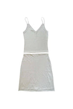 Ensemble à paillettes, jupe taille haute, élastique à la taille, tissu stretch, longueur genoux et son top décolleté en V à bretelles non ajustables.