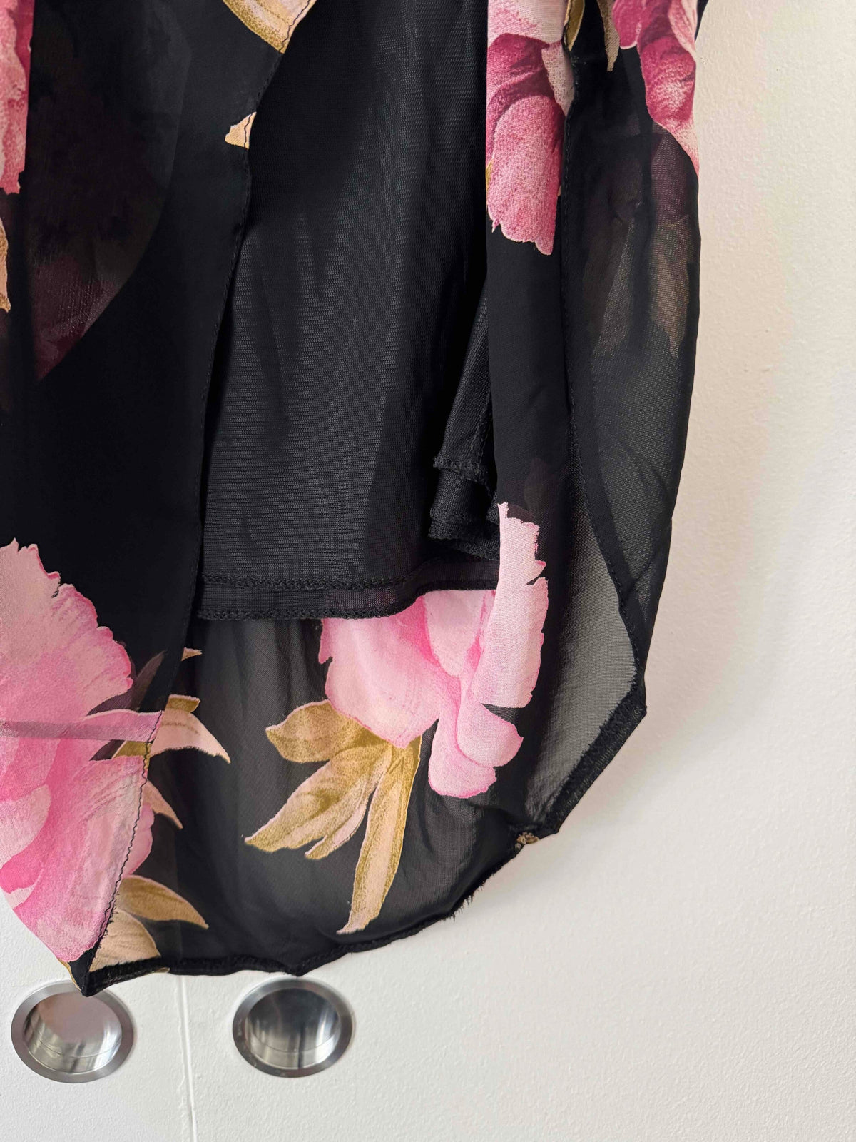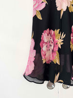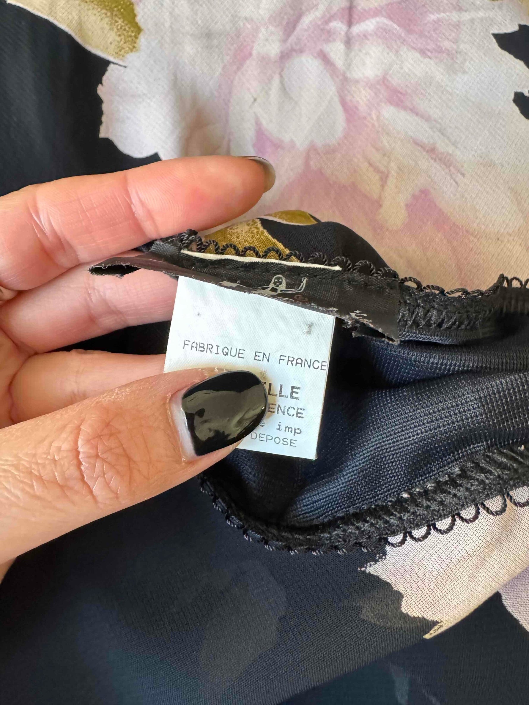 En viscose fluide à imprimé floral sur fond couleur noir.