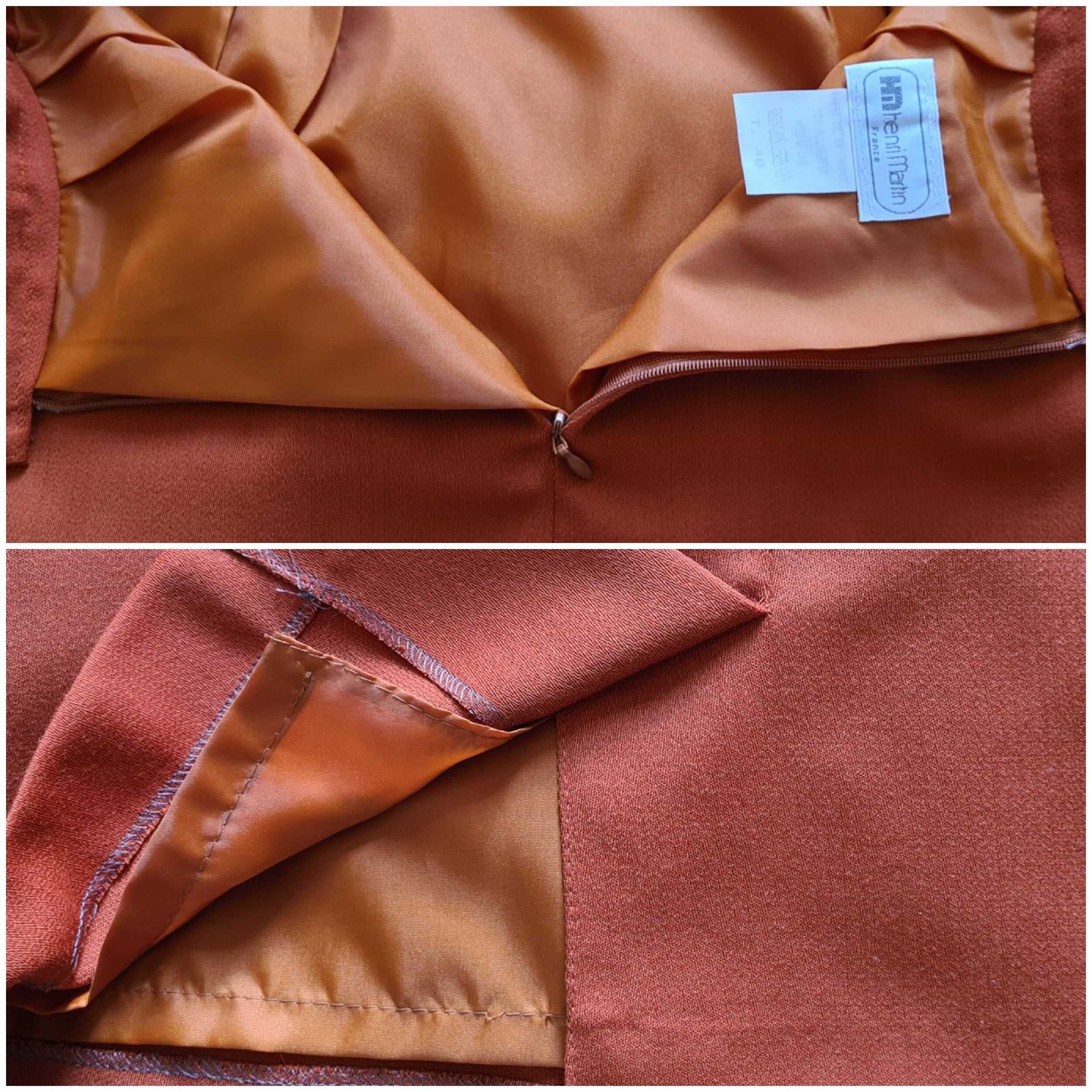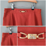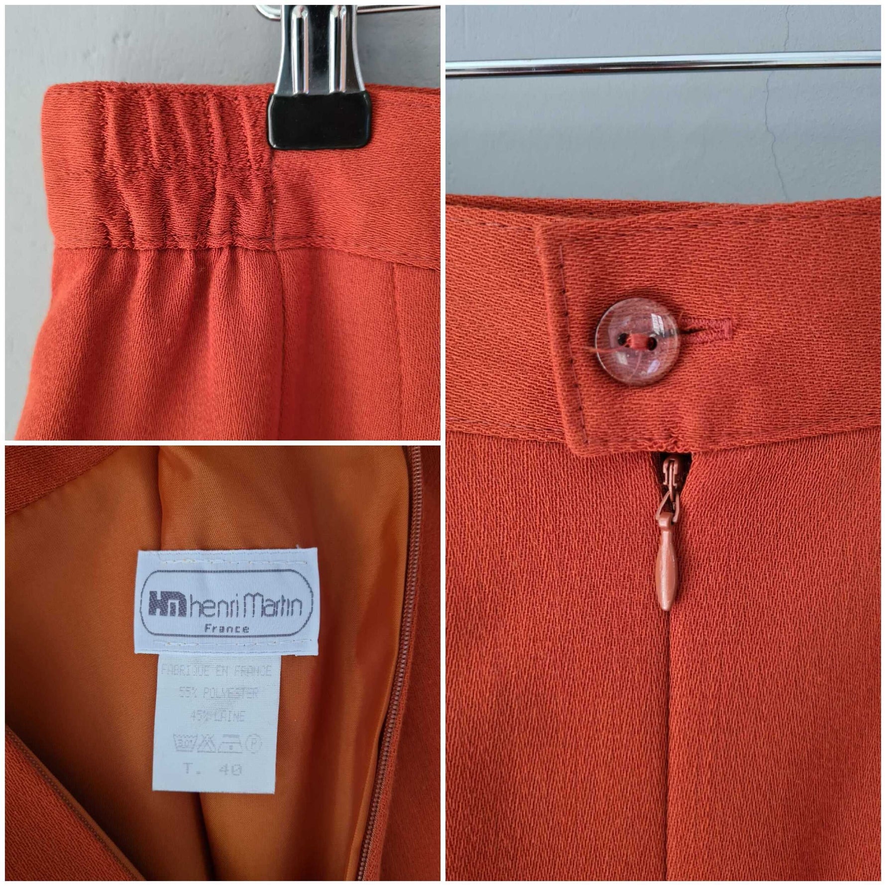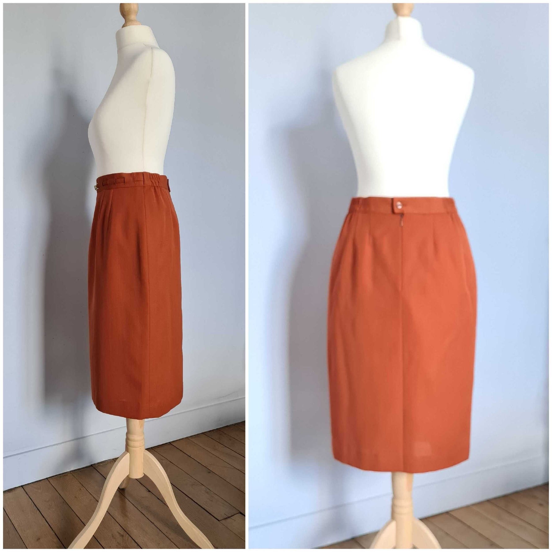 Prix unitaire parJupe crayon classique, taille haute, bel orange corail (voir photo portée de face) doublée. Fermeture éclair/bouton et petite fente à l'arrière. Détail de passant à la ceinture avec décor métal doré. Petites zones élastiques à l'arrière pour plus de confort. Fabriquée en France. Hanches 47 cm