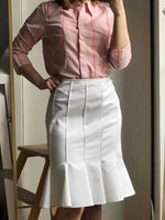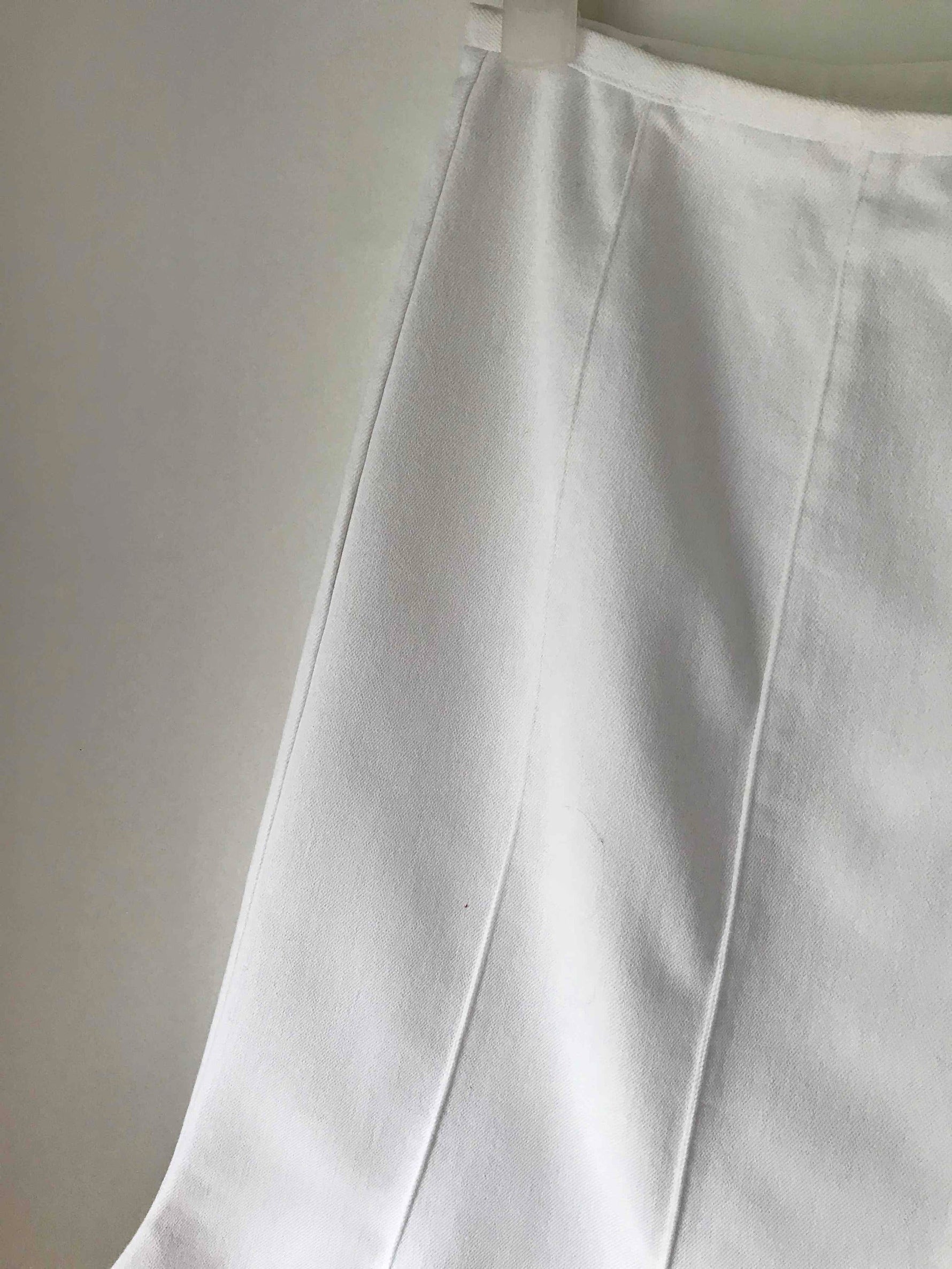 Jupe blanche à volants romantique, coton épais effet de lin blanc écru. Très bon état, taille 40 de la marque « Apart ». Aucun défaut. Pas d’étiquette indiquant le lieu de fabrication