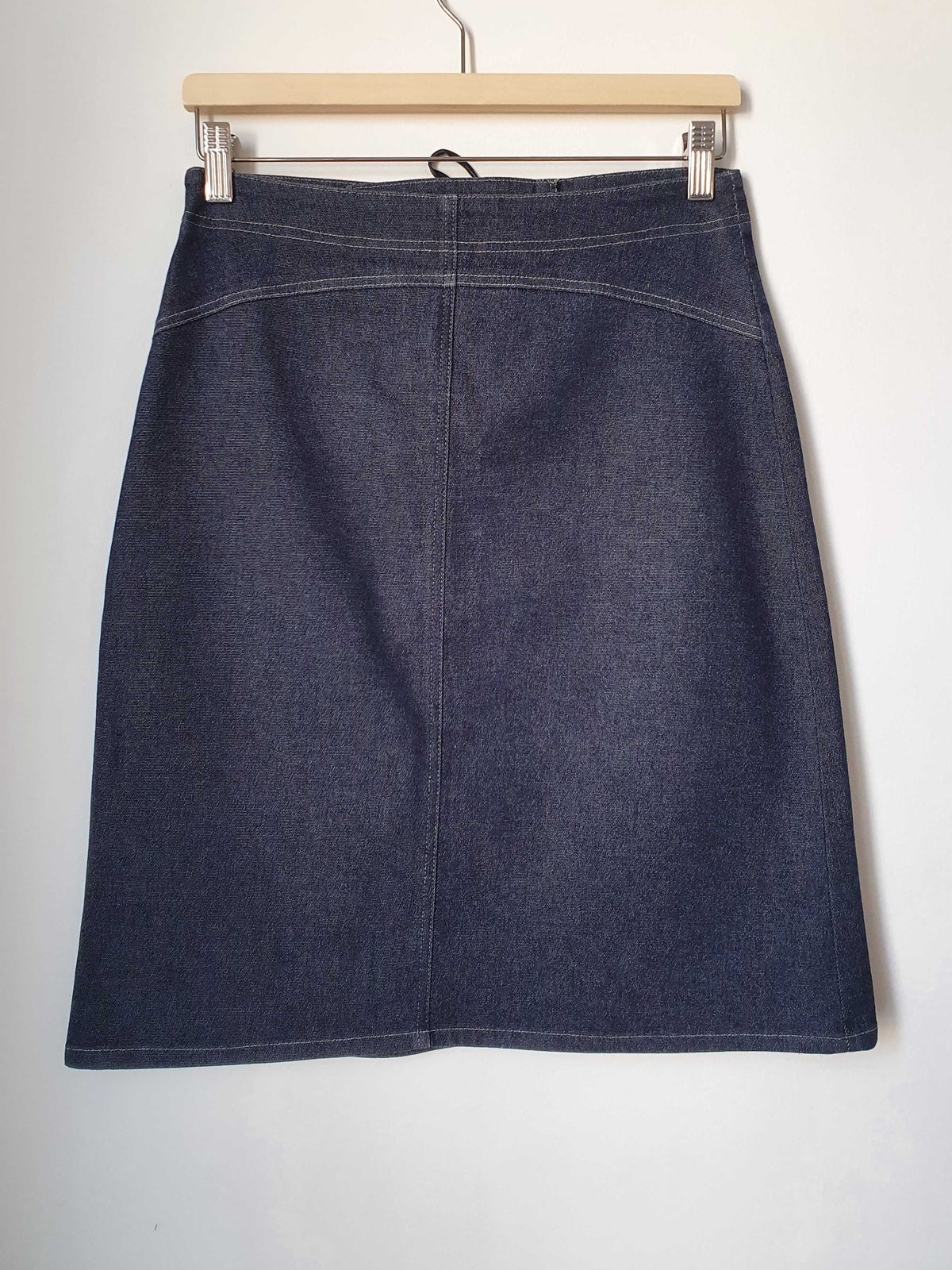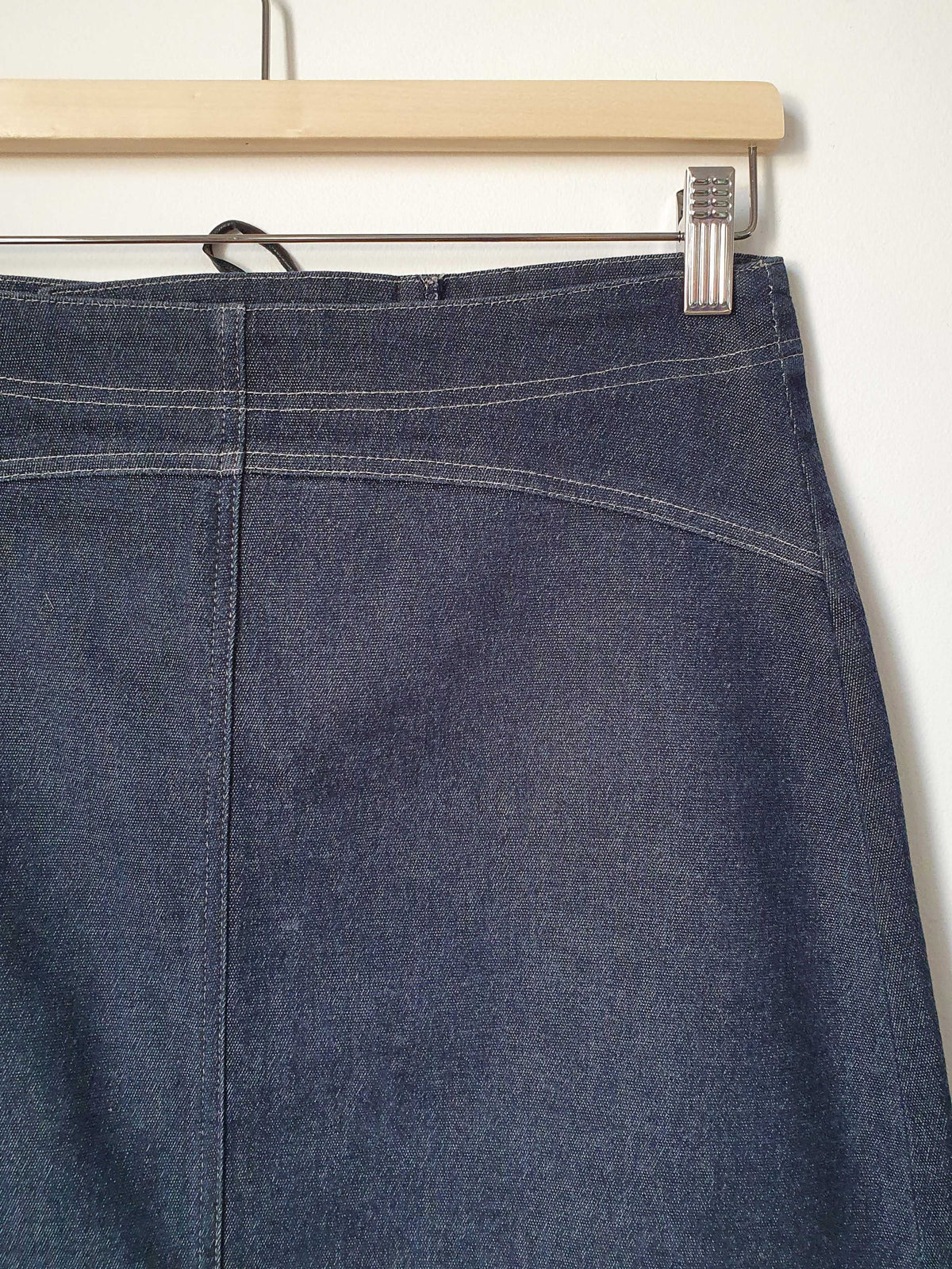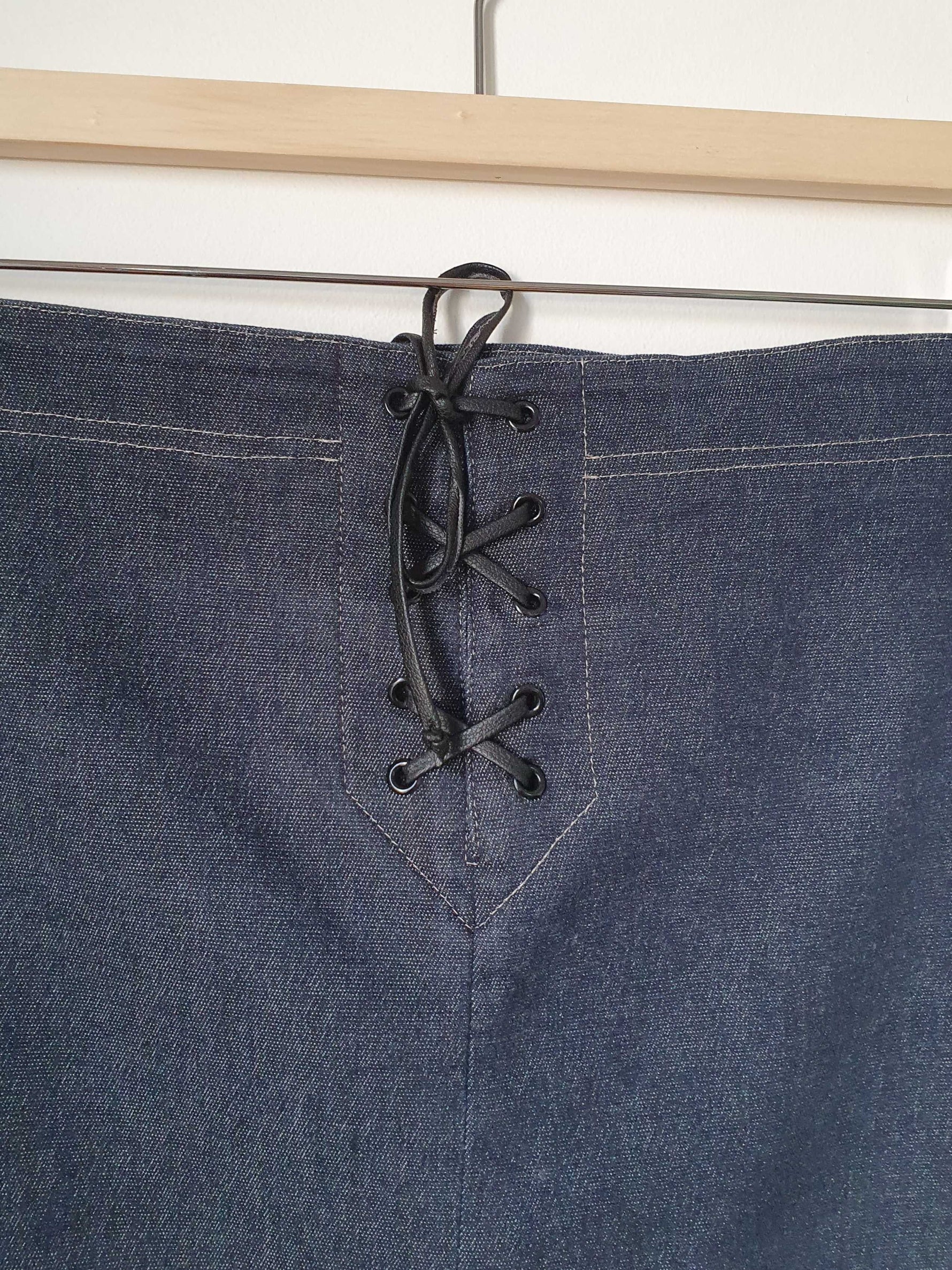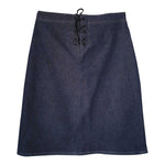 Prix unitaire parJupe en jean bleu foncé. Laçage noir.