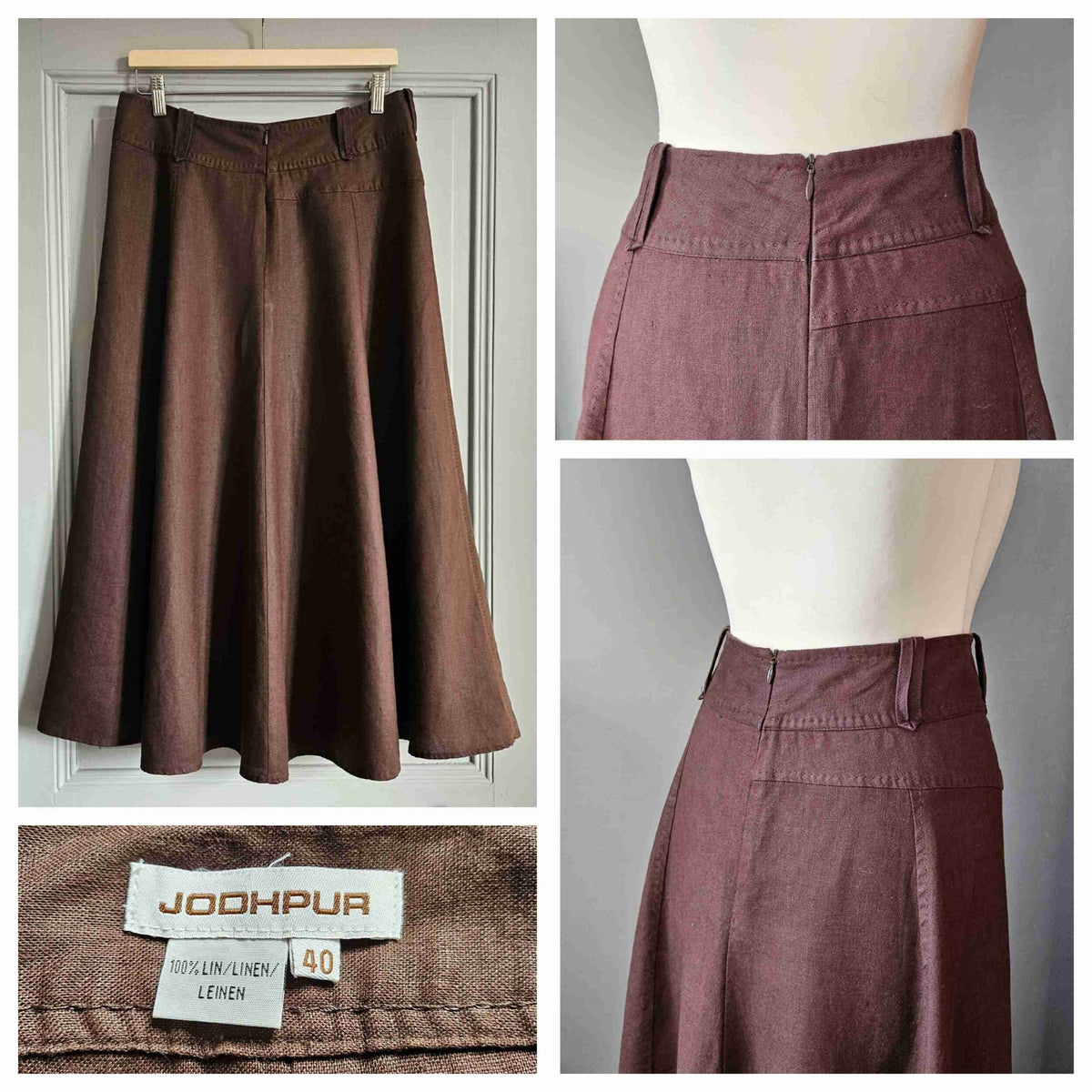Prix unitaire parJupe midi en lin, coloris chocolat, taille haute, passants pour ceinture, forme corolle. Fermeture éclair au dos. Belle ampleur.