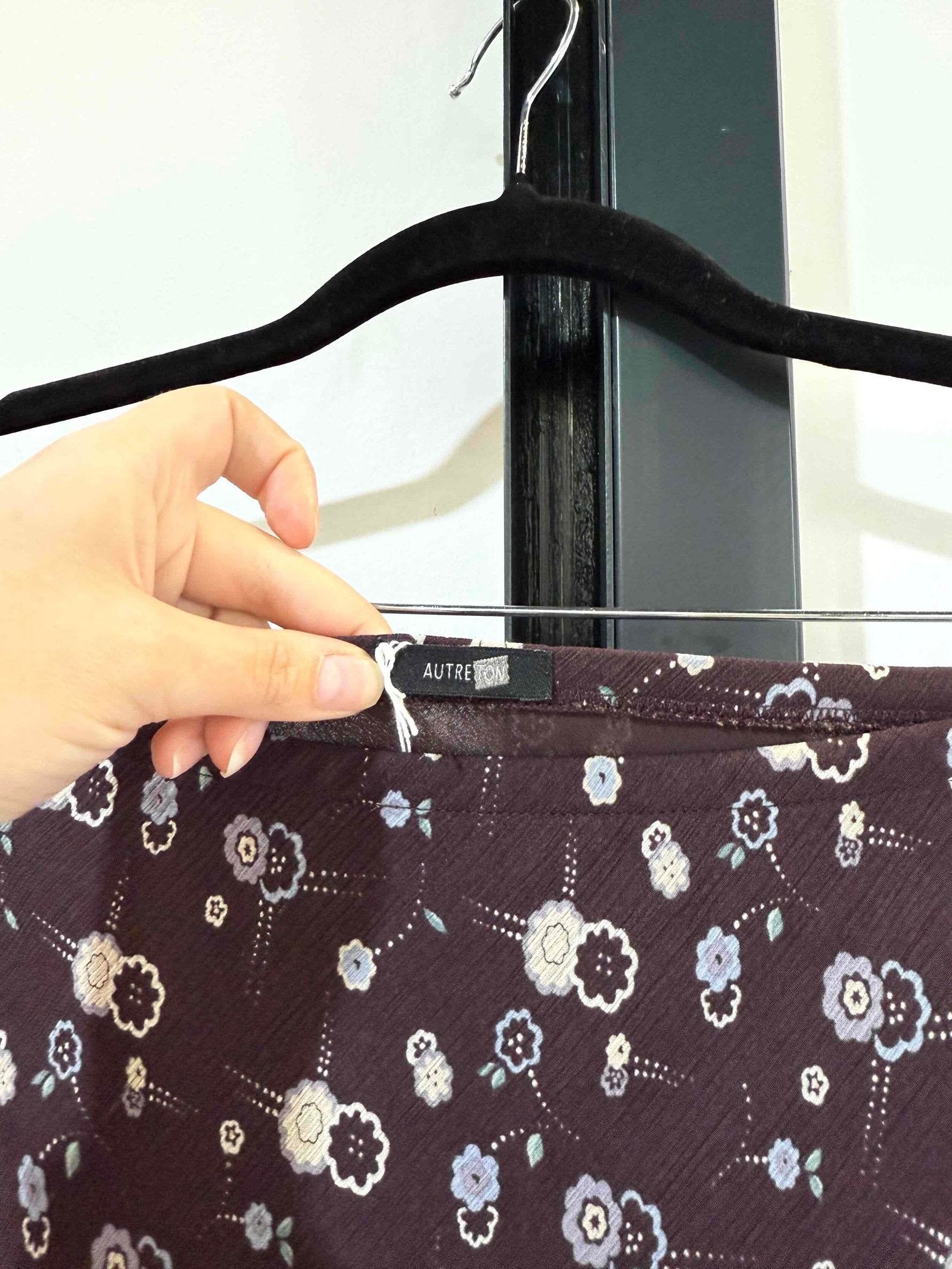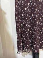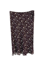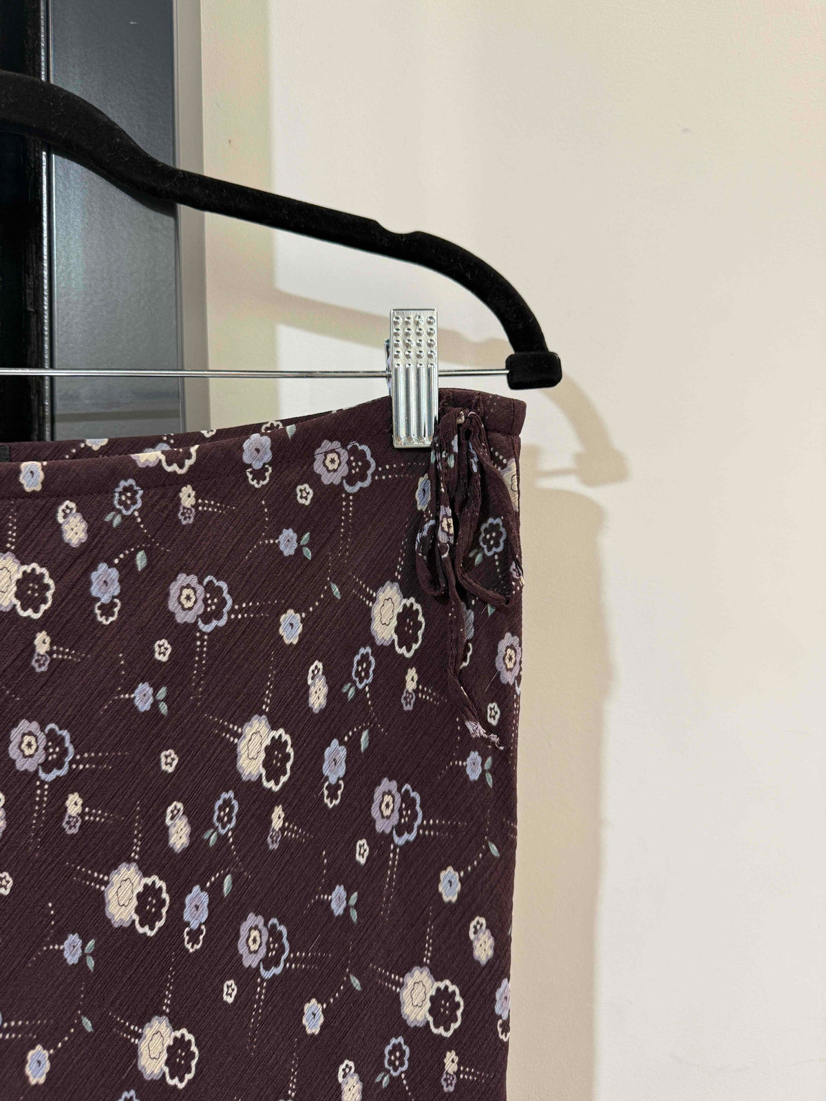 Prix unitaire parJupe midi fluide en soie violet foncé à fleurs violet lilas. Élastique à la taille et lien pour resserrer. Taille 38/40. Années 2000s. Doublée.