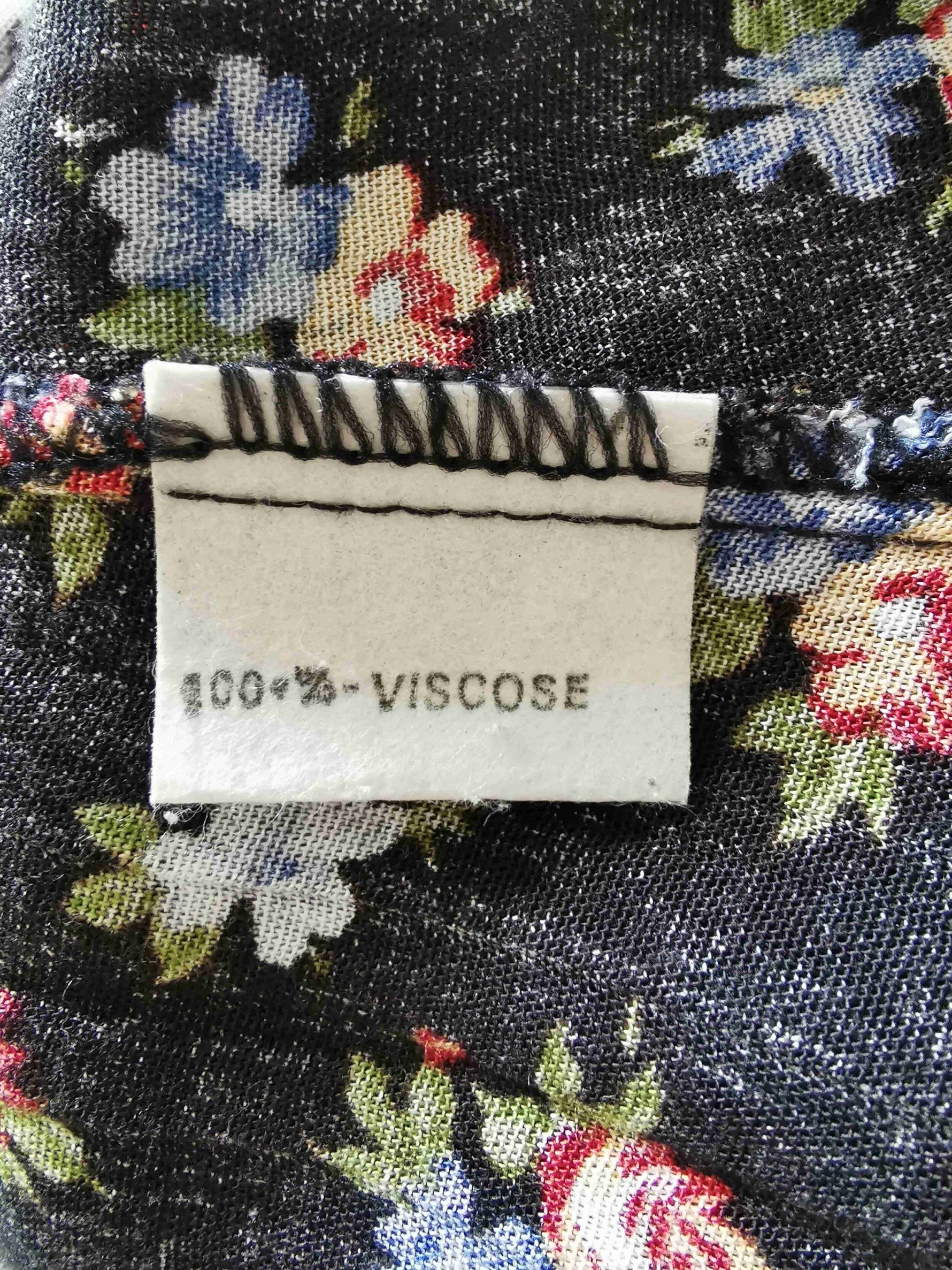 En viscose noir et fleurs multicolores