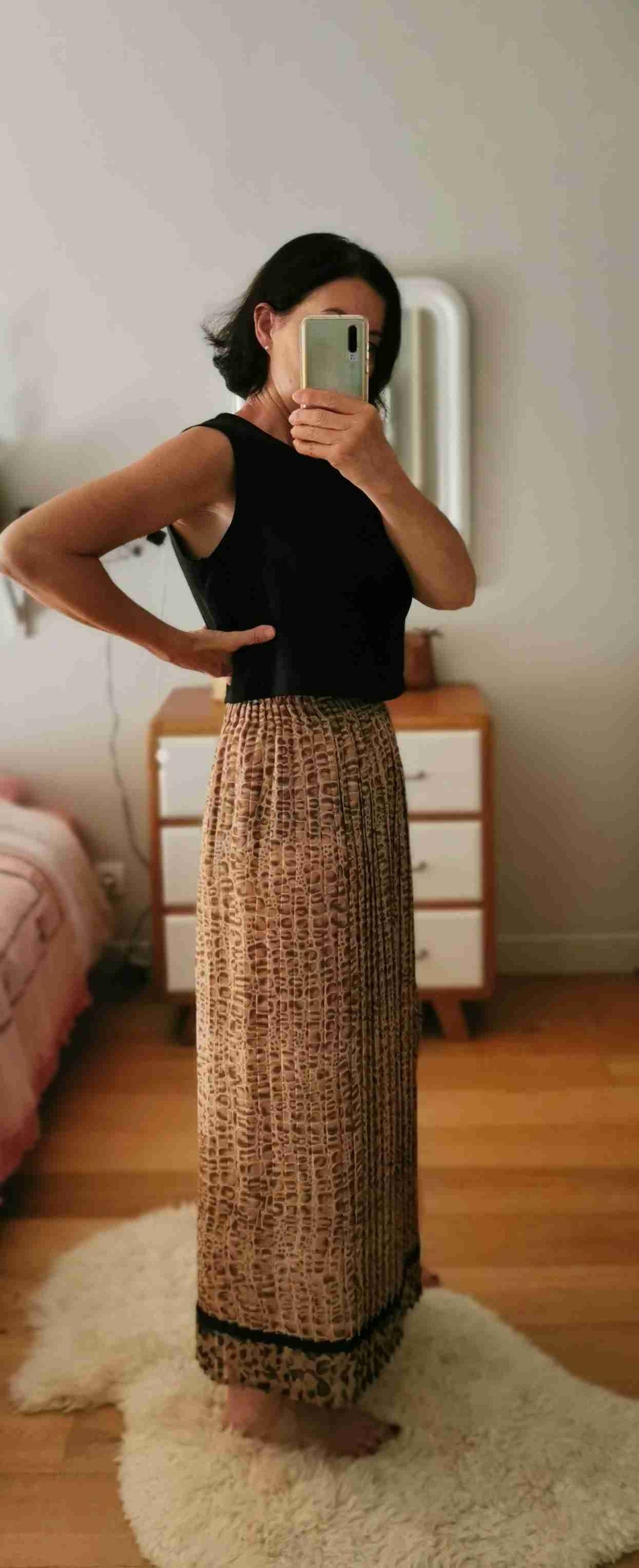 Prix unitaire parJupe longue plissée au motif léopard.