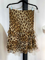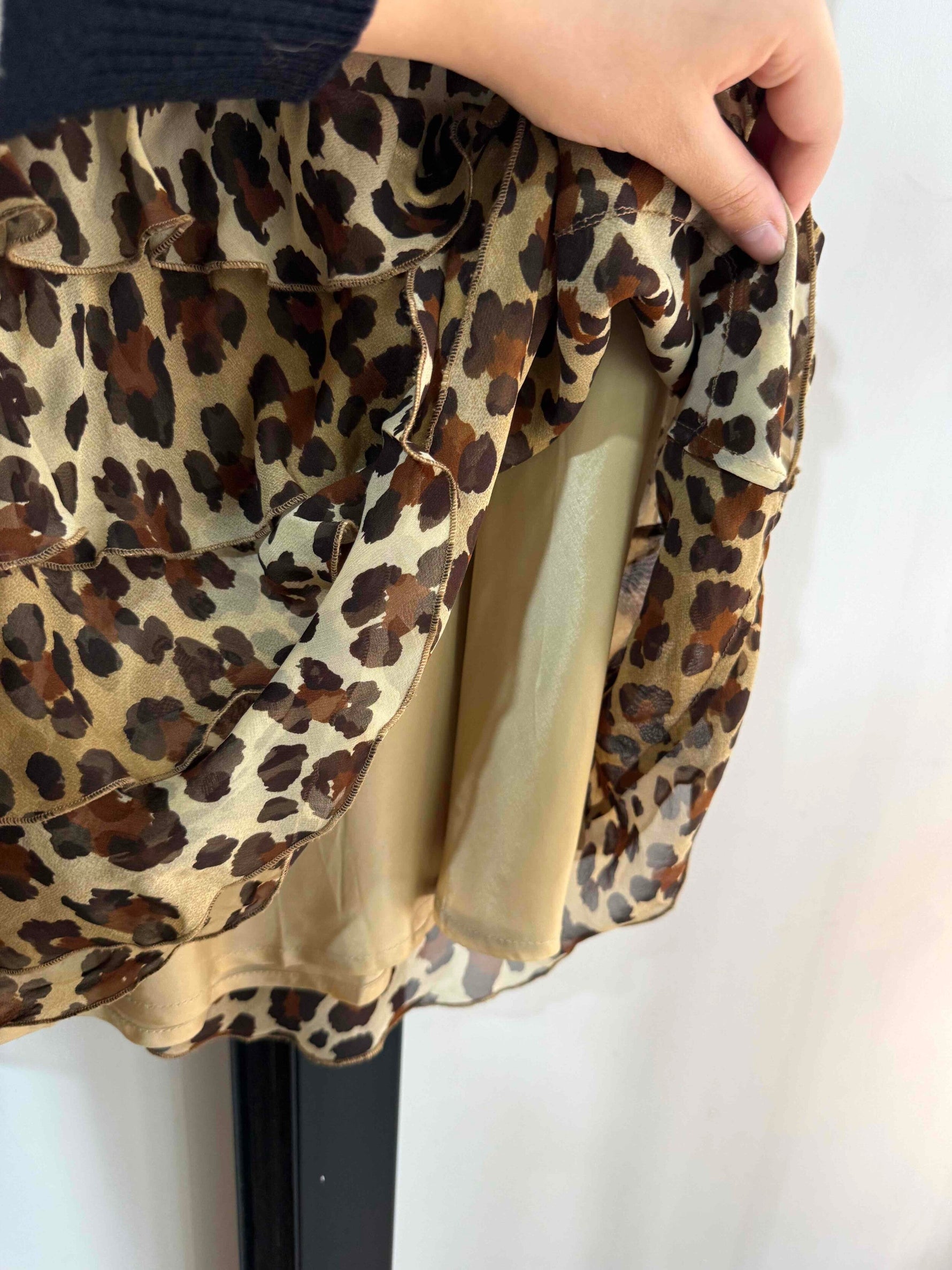 Prix unitaire parJupe midi fluide en soie motif léopard beige de la marque Moschino. Taille 38 FR conviendra également à une taille 36. Excellent état. Doublée et fluide. Années 2000s