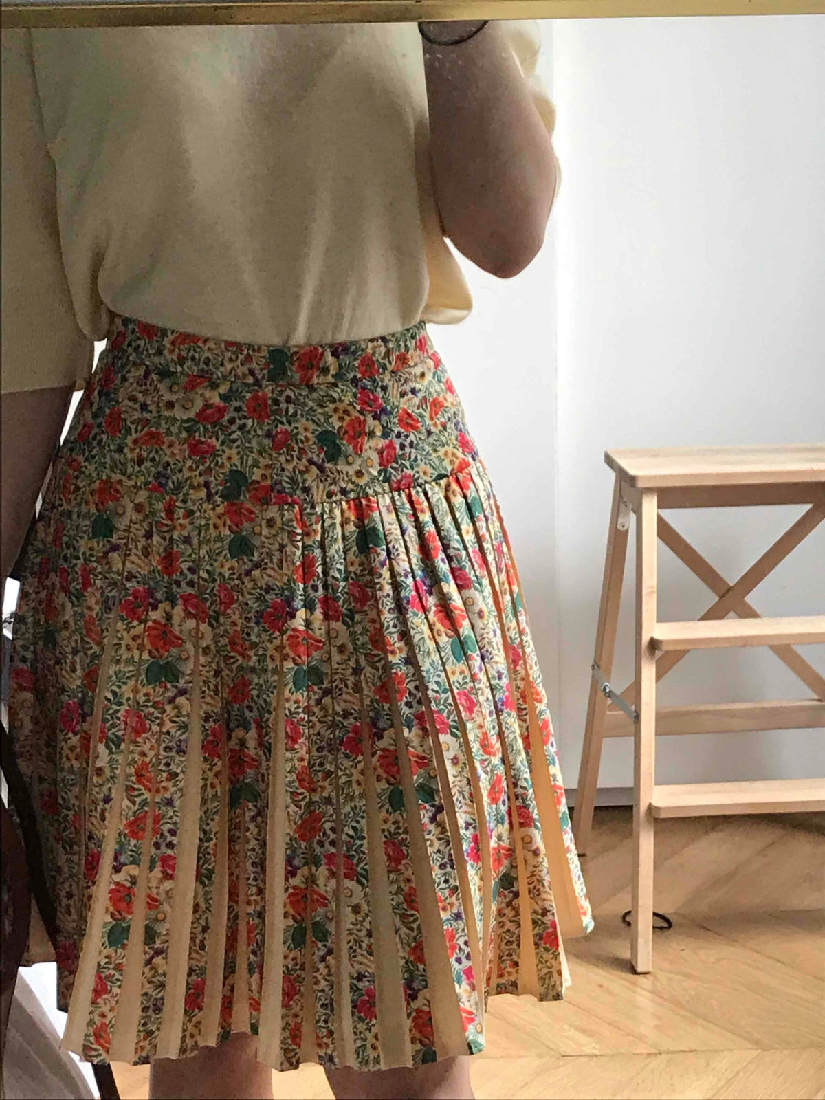 Prix unitaire parJupe plissée jaune à fleurs de très belle qualité, entièrement doublée. Taille 40 (ici porté par une taille 38). Jolies finitions zip à l’arrière. Une pièce années 80s originale qui fait toute une tenue !