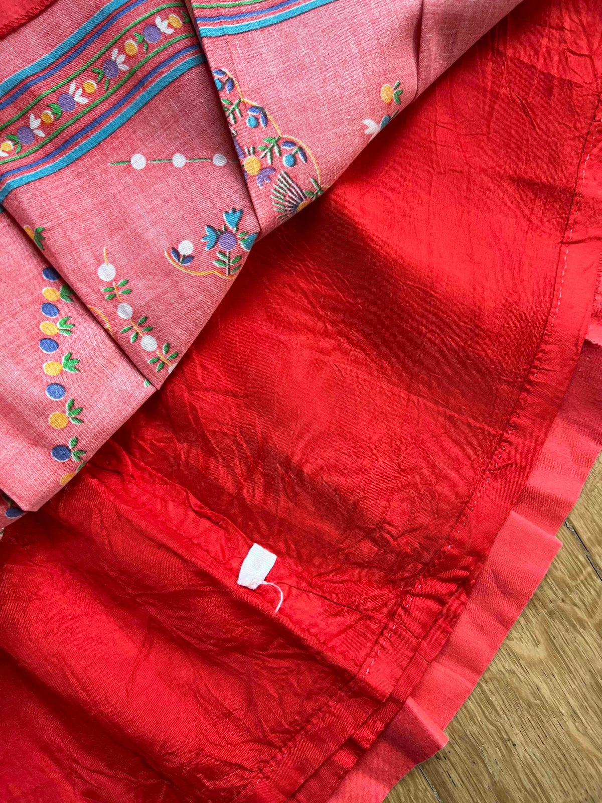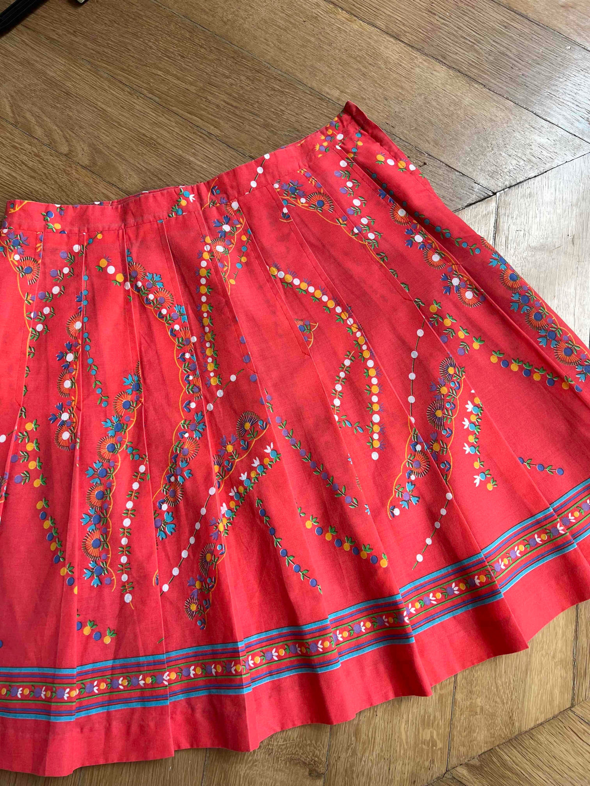 Jupe courte plissée en coton rouge à fleurs. Taille 38/40. Excellent état. Années 70s.
