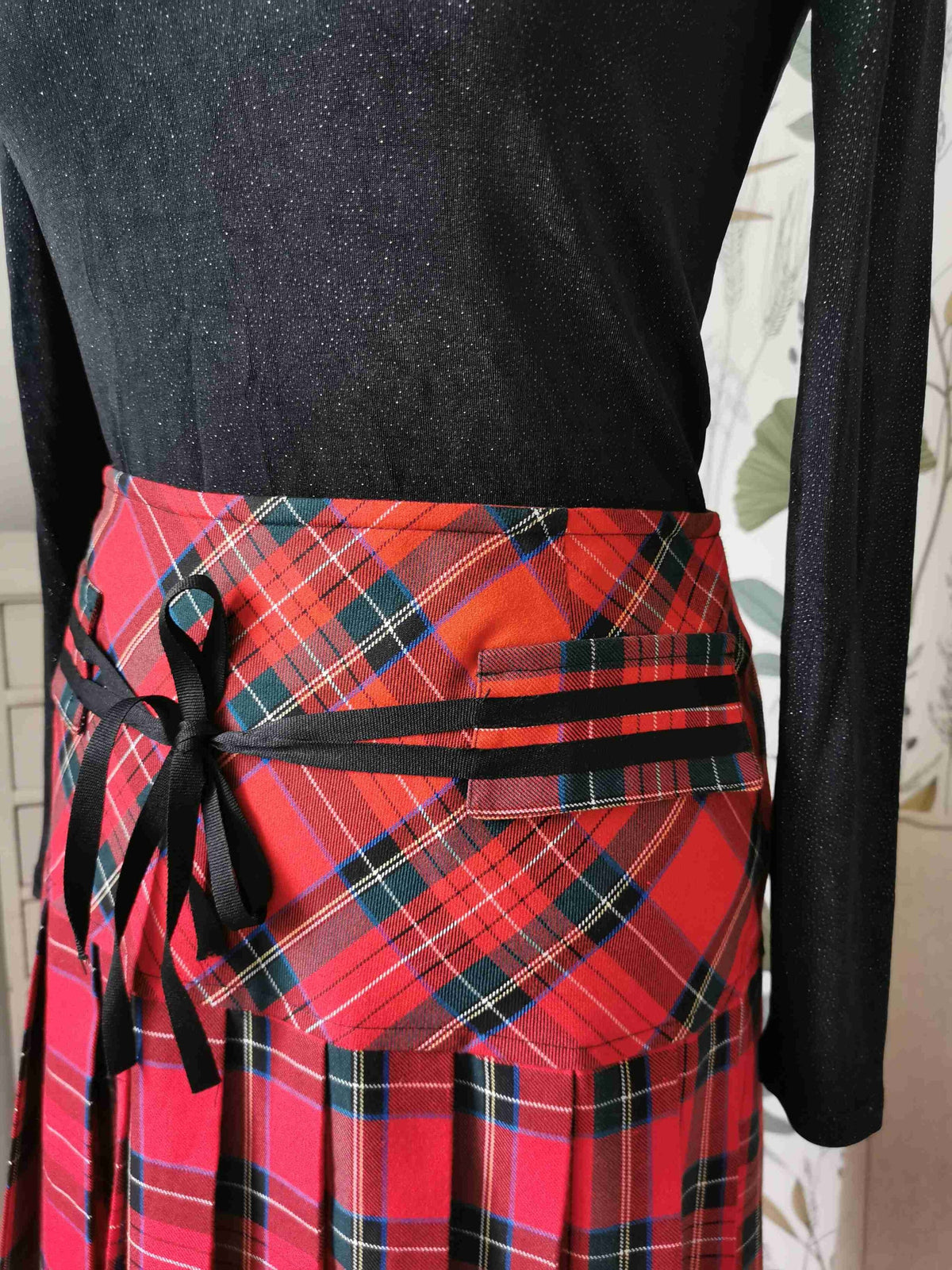 2 fausses poches agrémentées d'un ruban noir à nouer devant