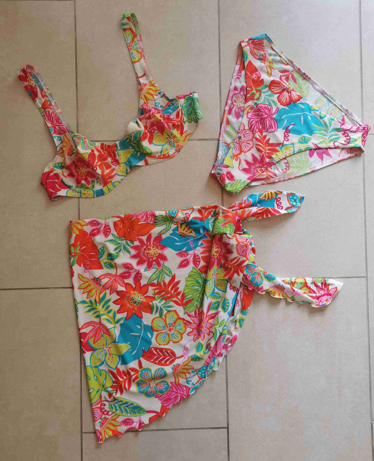 Ensemble maillot de bain 2 pièces et paréo à fleurs 80's /90's