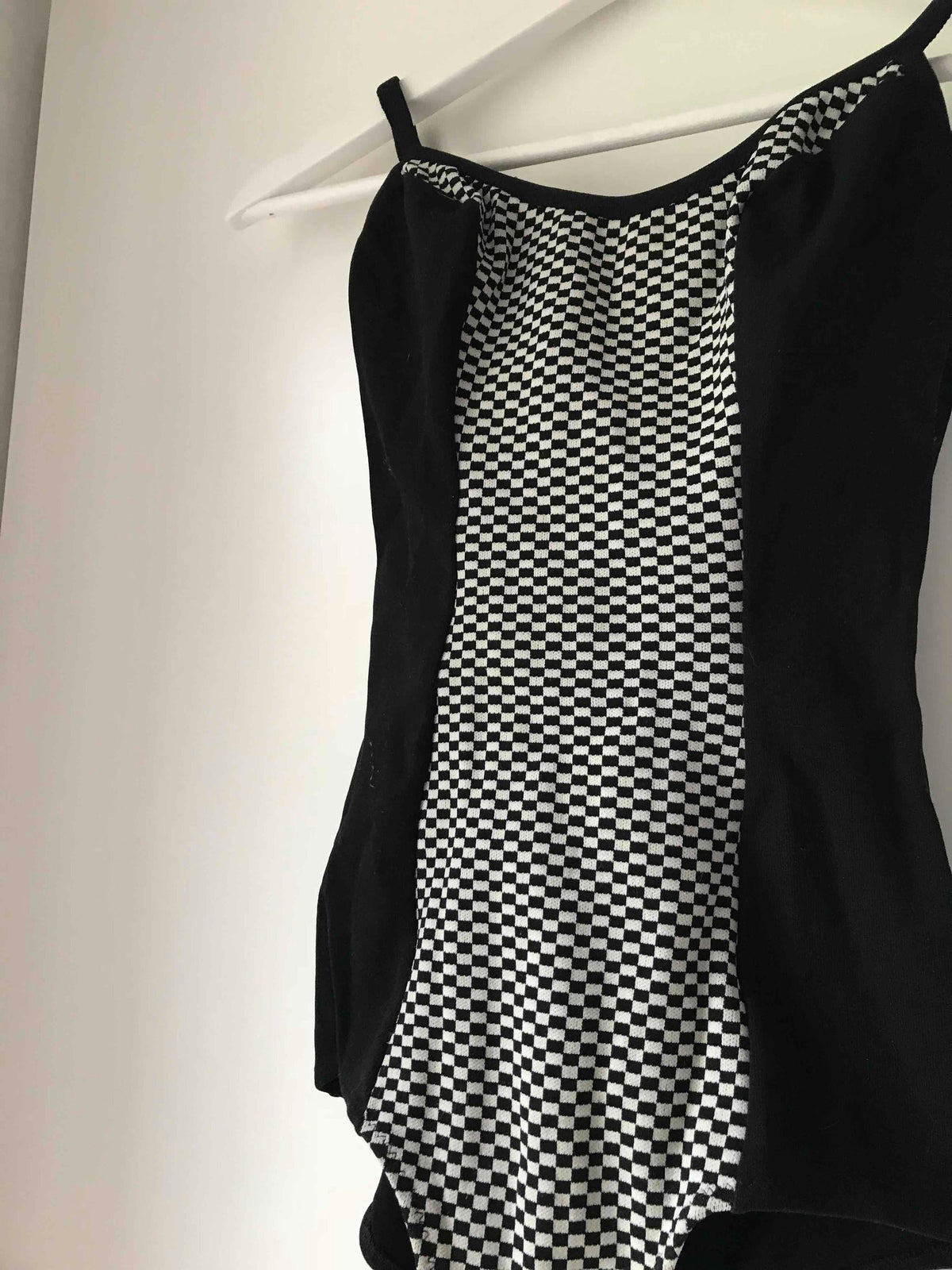 Prix unitaire parMaillot de bain ou body noir avec un motif damier central, taille 40 mais correspond plus à un 36. Assez épais et de bonne facture.