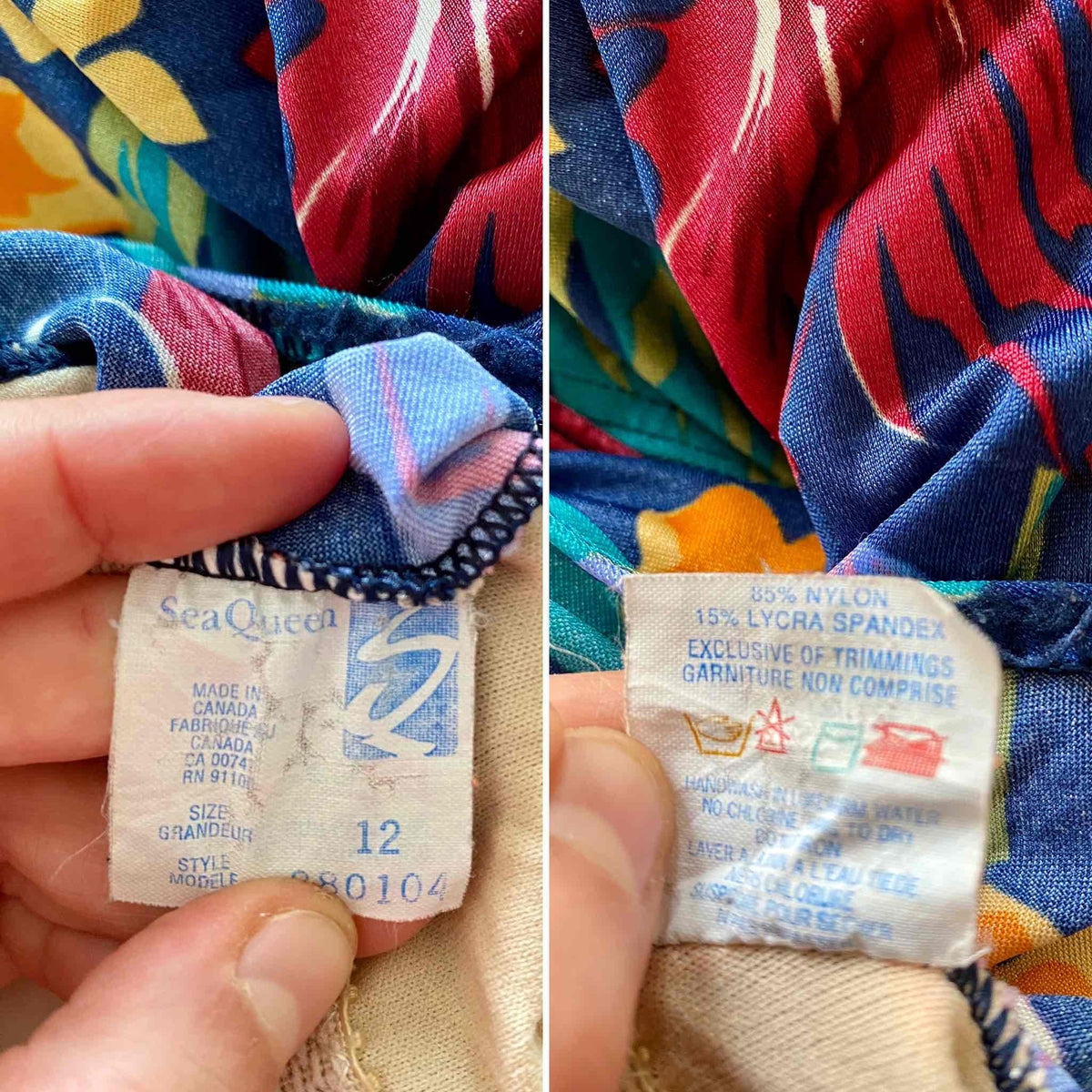 Prix unitaire parMaillot de bain une pièce en lycra motifs fleurs tropicales, taille plissée pagne, dos plongeant, brassière intérieure intégrée, fabriqué au Canada