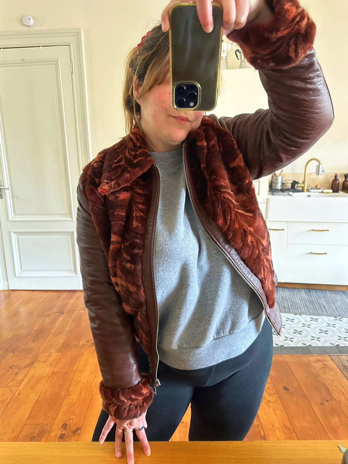 Blouson en cuir et fourrure