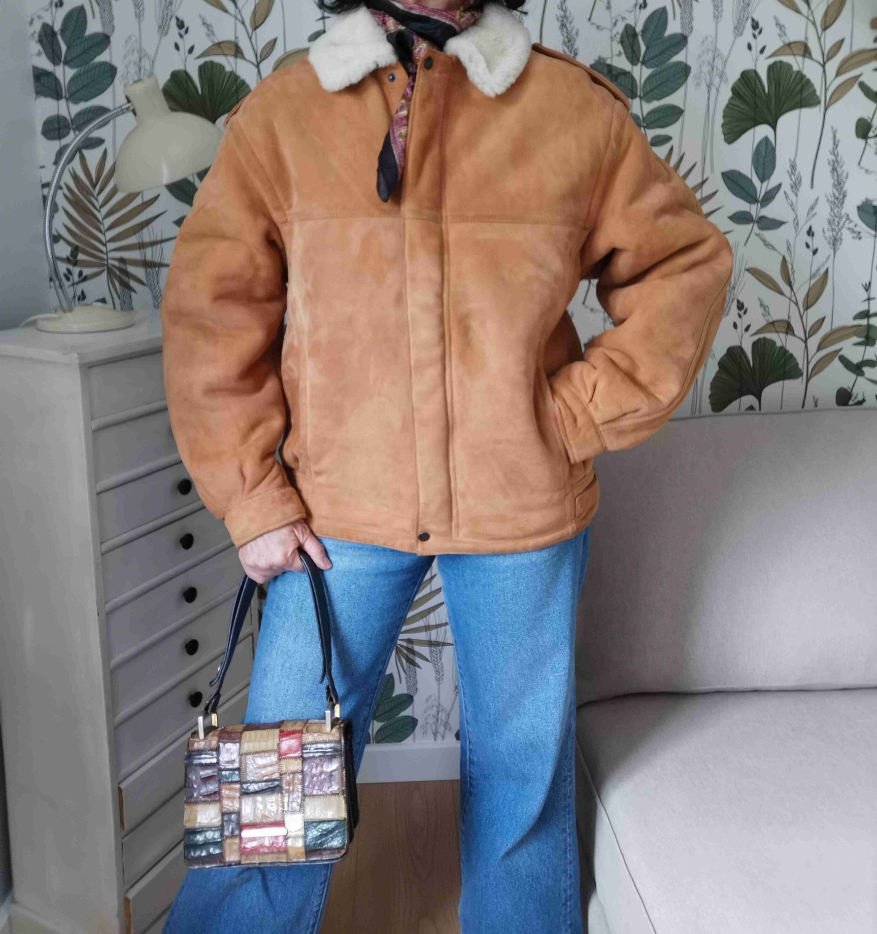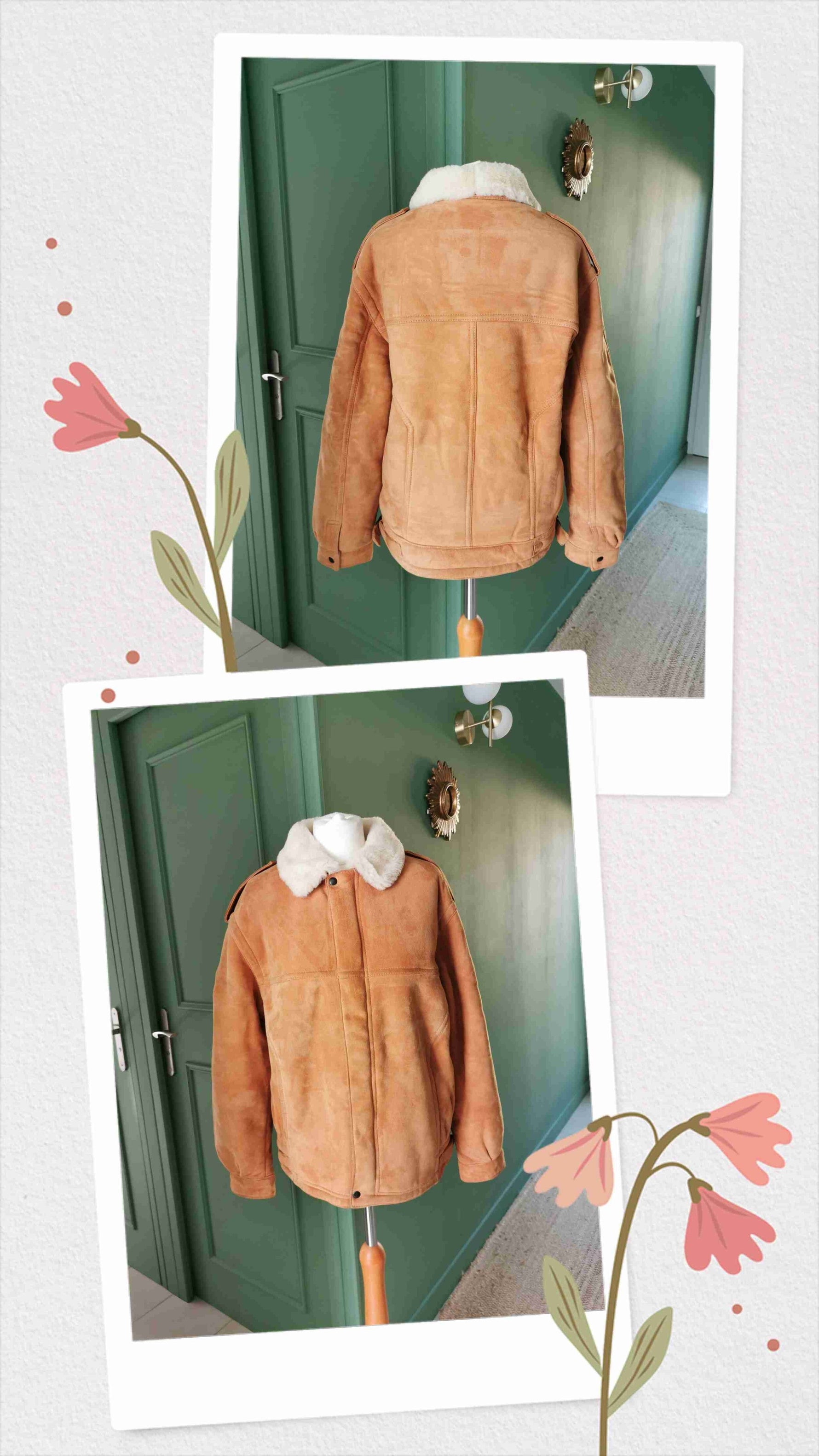 Shearling porté par Patricia et le mannequin qui font une taille 40