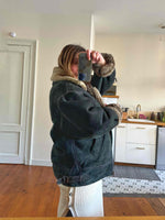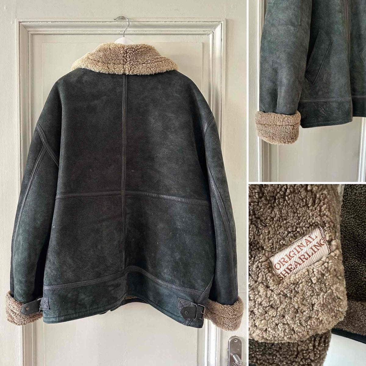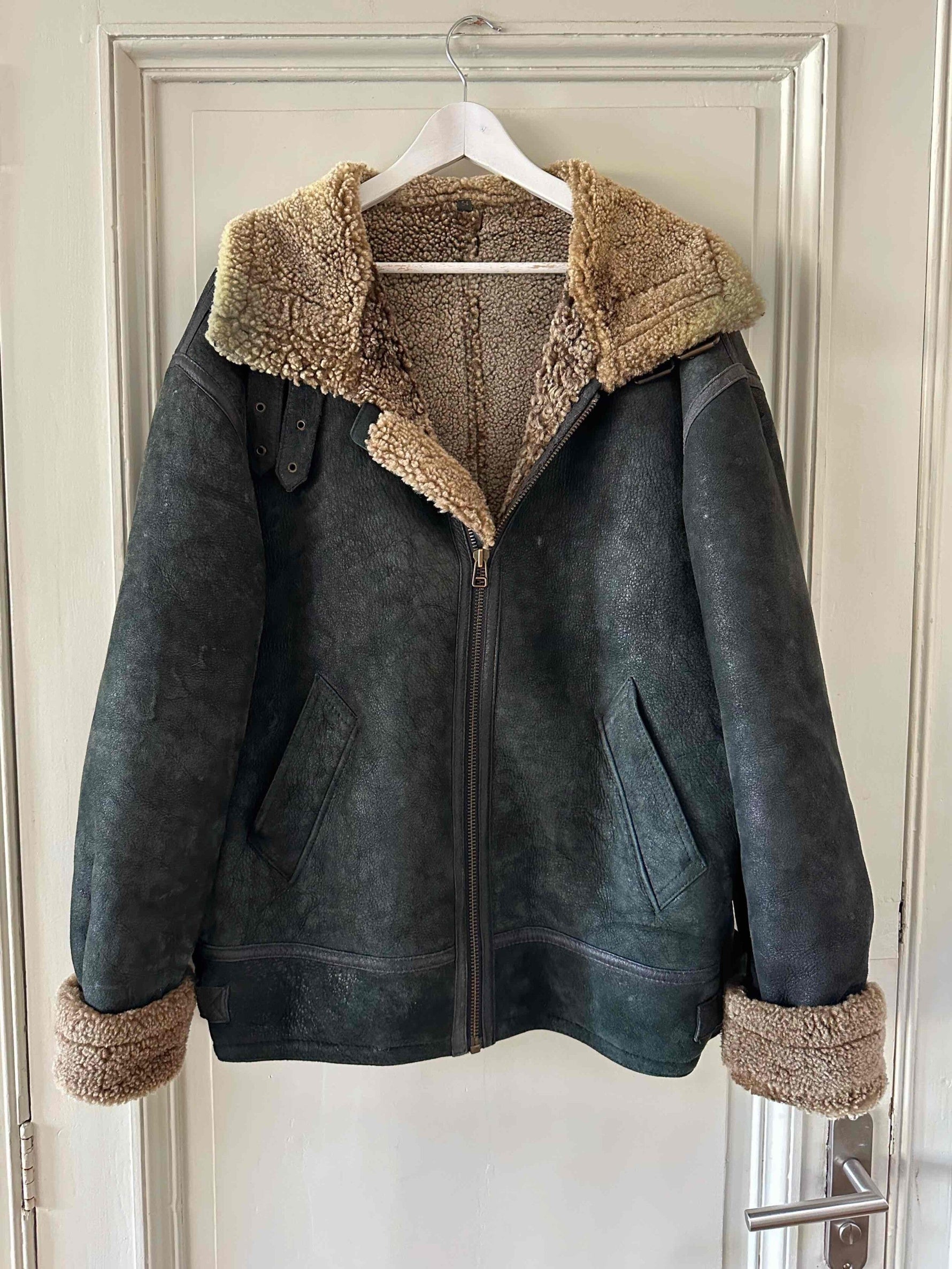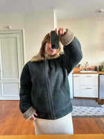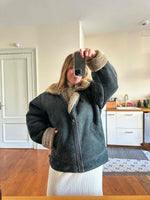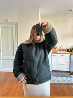 Prix unitaire parBombardier peau lainee en mouton retourné exterieur cuir nubuck vert bouteille foncé, interieur mouton beige, type B3, fabriqué en Italie, convient aux tailles 40 et 42 porté ici sur une personne T40.