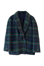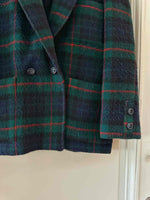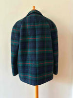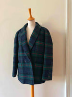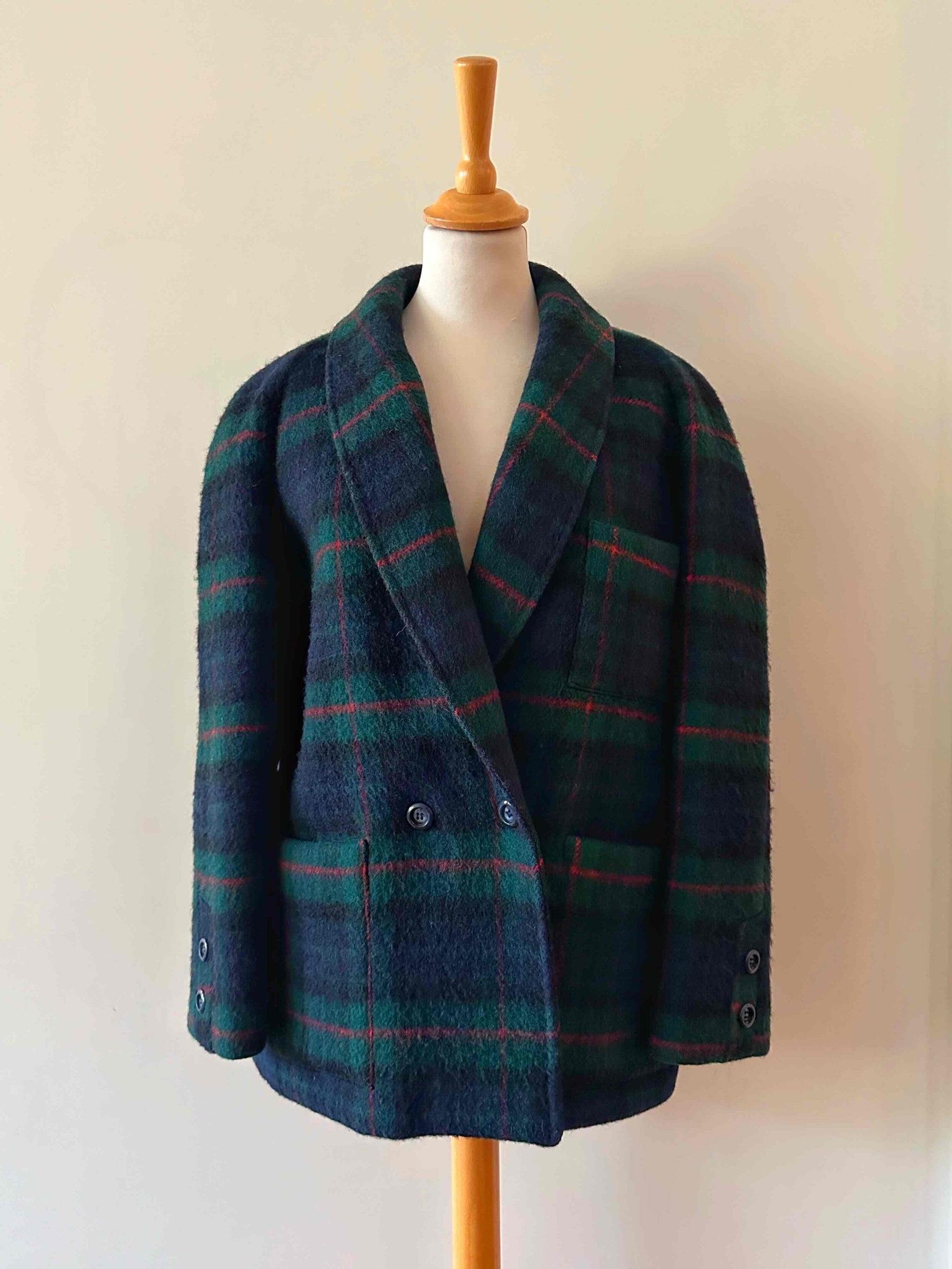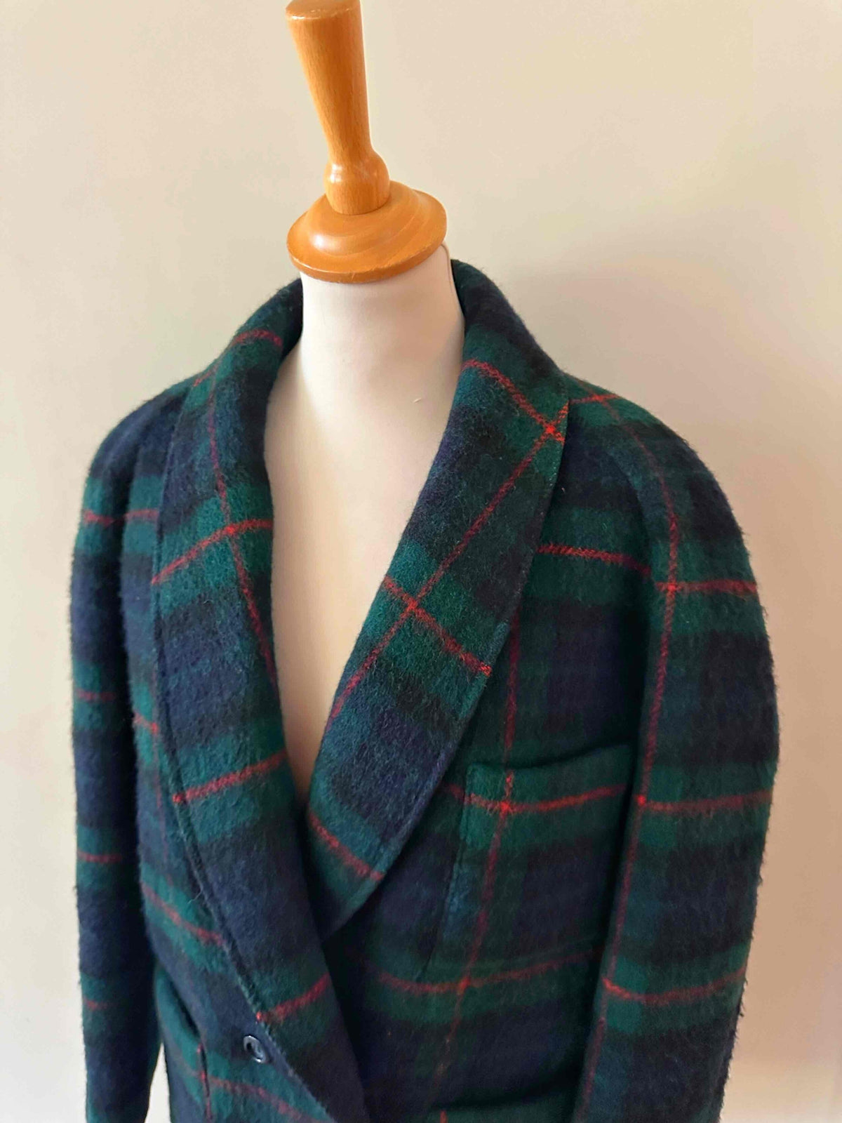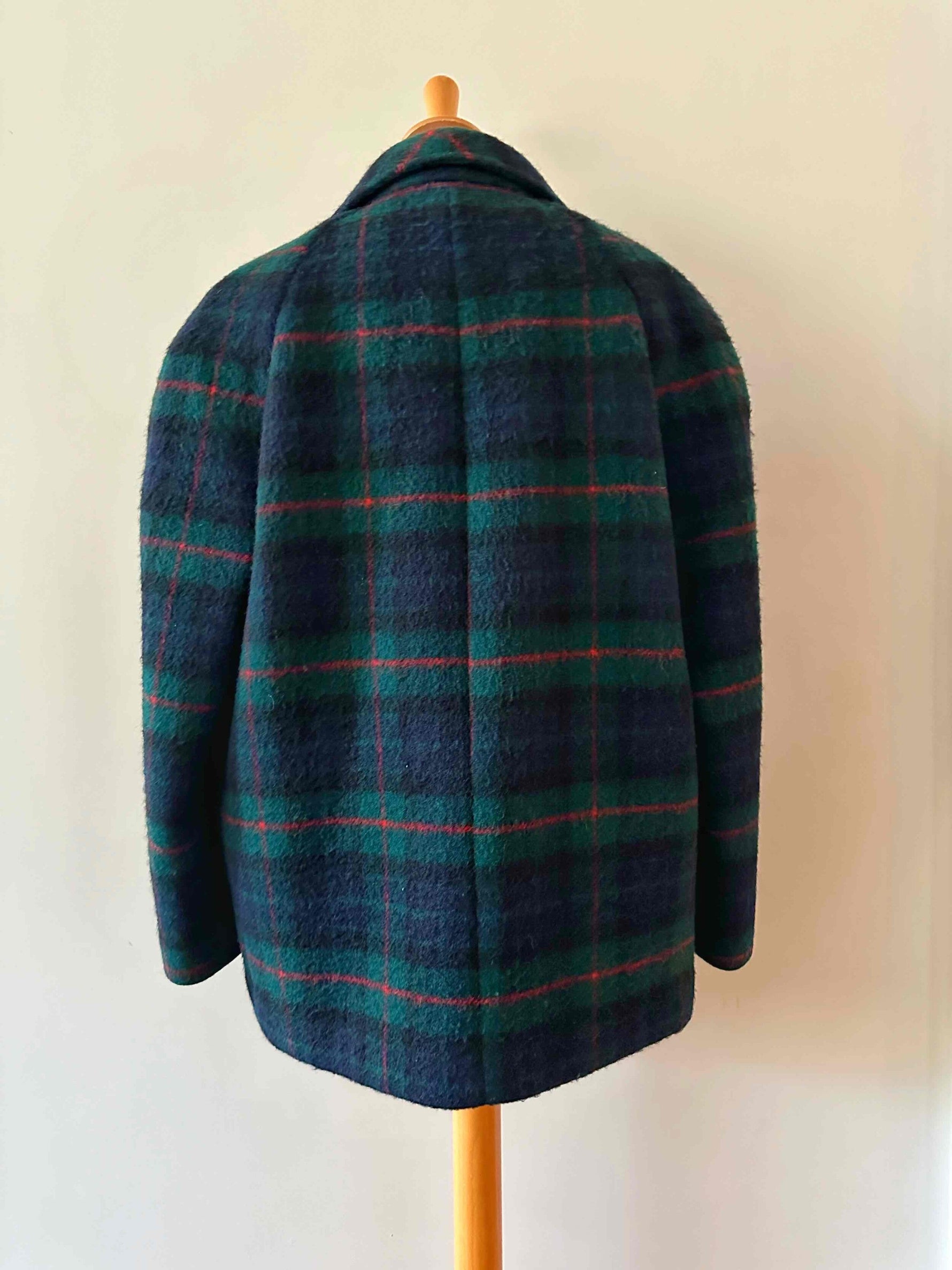 Prix unitaire parCaban écossais en laine bouclée, epaules raglans arrondies, boutonnage croisé, fabriqué en France, taille 36 porté ici sur un mannequin T36.
